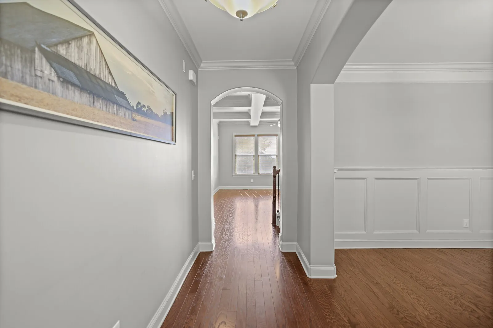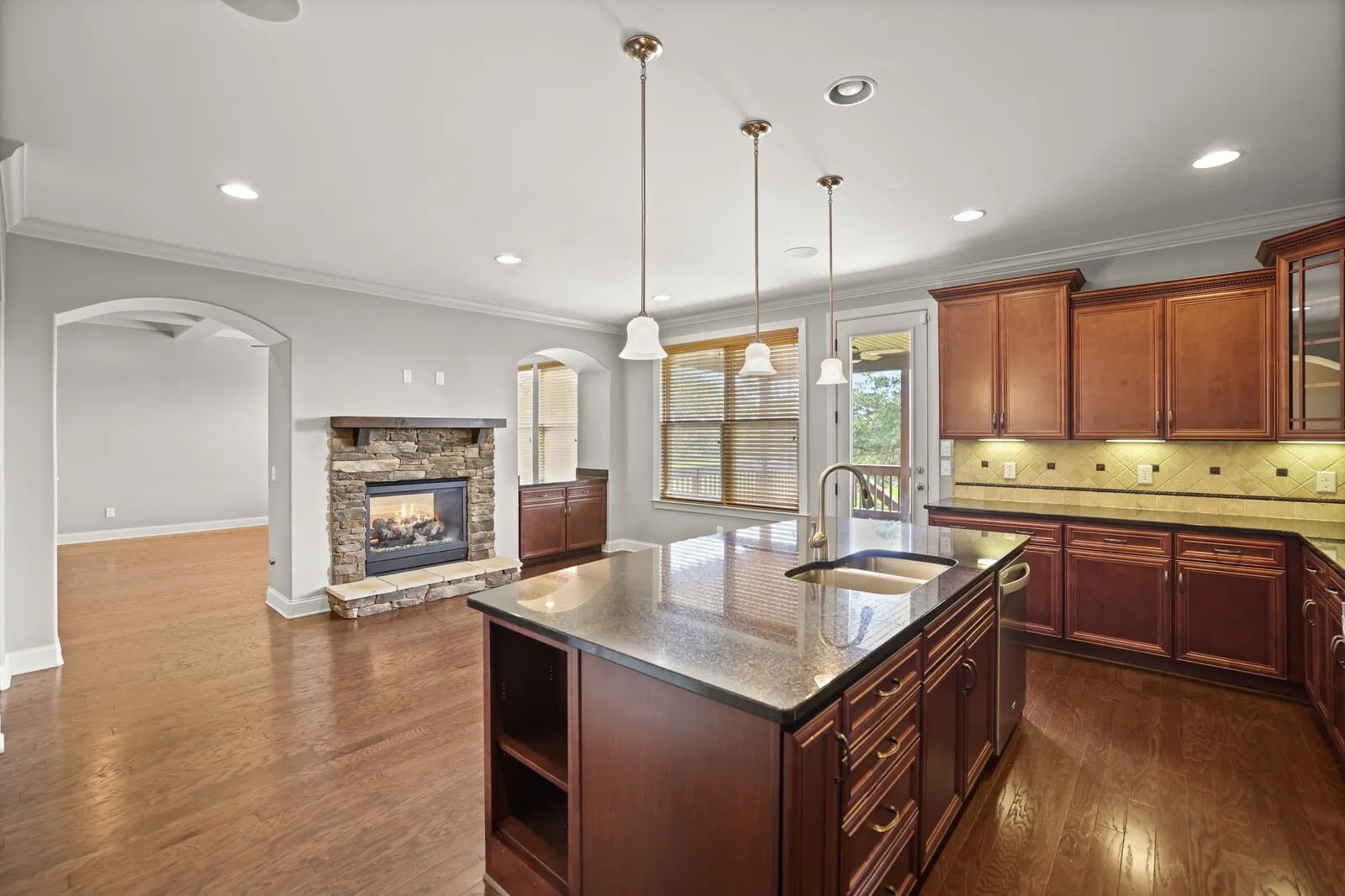 This beautiful, all-brick 4-bedroom home is situated on a quiet cul-de-sac in a charming neighborhood. Backing up to Ravenwood Park, you’ll enjoy direct access to over 400 acres of open green space with stunning nature views. Upon entering, you’re greeted by a formal dining room & hardwood floors throughout. The living space features coffered ceilings and a two-way fireplace that seamlessly connects the living room and kitchen, perfect for cozy evenings or entertaining. The kitchen offers ample room for an eat-in dining area, a large island, and plenty of wood cabinets for storage. The primary bedroom boasts trey ceilings and an elegant en-suite bathroom with a dual vanity, beautiful tilework, and a walk-in closet. In addition to the spacious guest bedrooms, an upstairs flex space provides the perfect office or additional living area. Outside, a covered deck overlooks the serene backyard with unobstructed views of the park. The home also includes an attached 2-car garage. Welcome home.