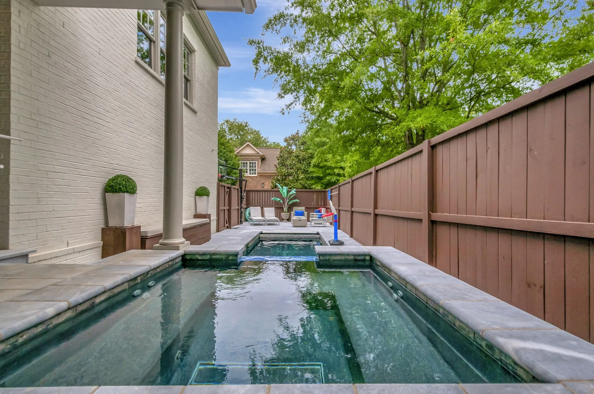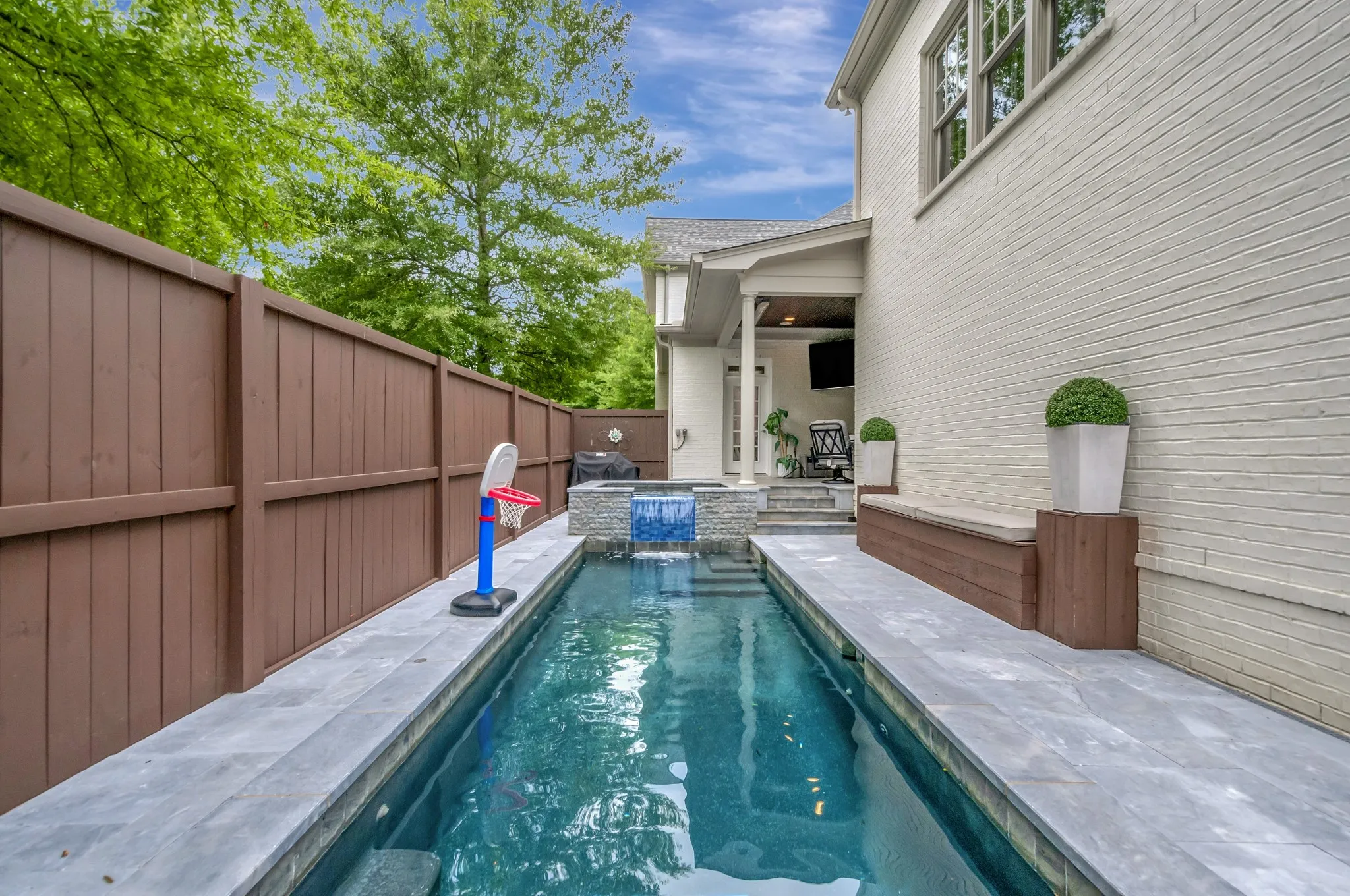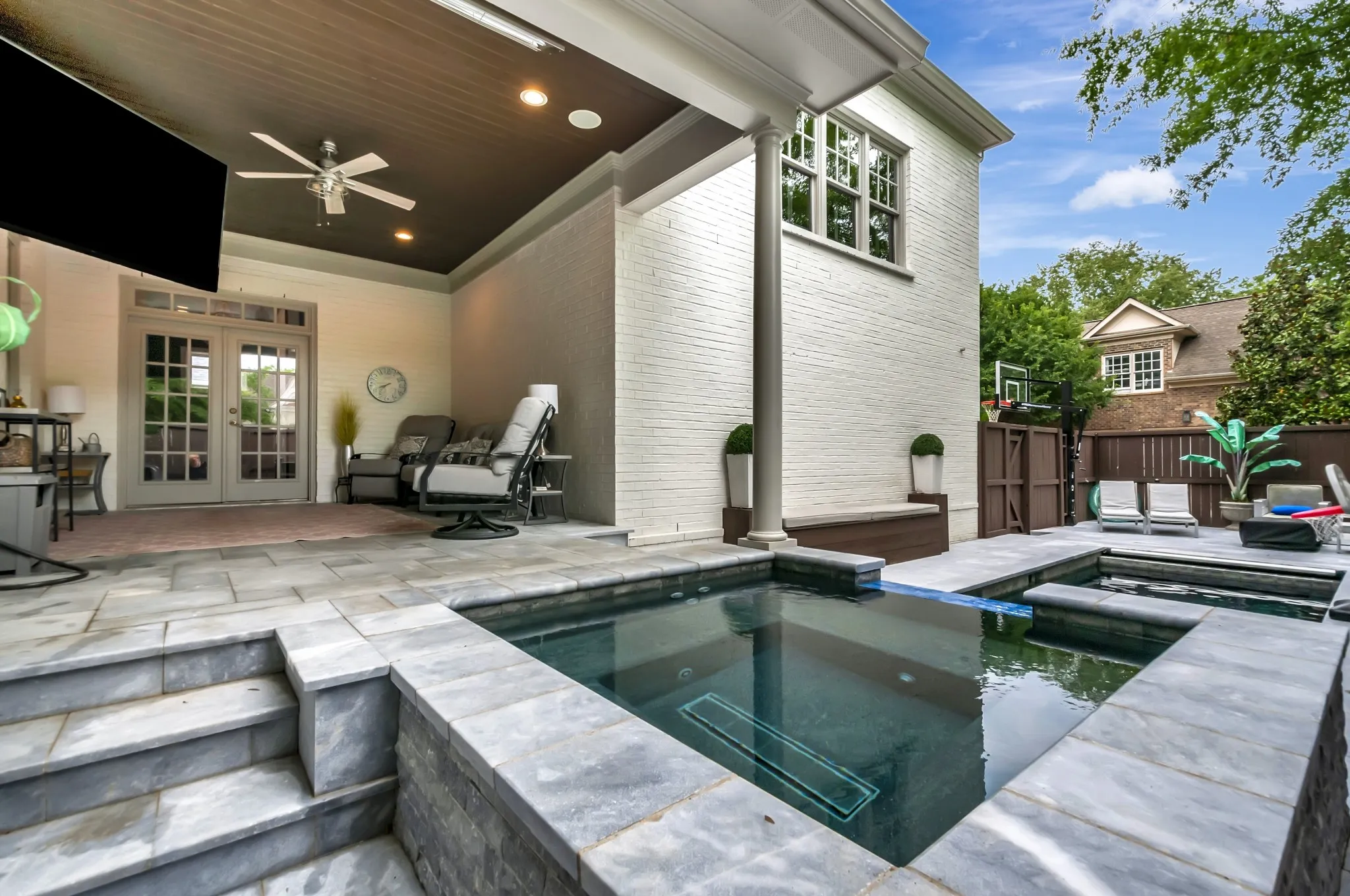 +"PublicRemarks": "Totally renovated! This beautiful pool home boasts a wrap-around front porch. The freshly painted interior/exterior feature plantation shutters, enhancing its charm. The large formal dining room impresses with extensive floor/ceiling molding. The newly remodeled kitchen, new counters, extensive bar, all-new appliances, 6 burner gas range, stainless steel hood, refrigerator. Barn door leads to an extraordinary entertainment area, custom built ins, half bathroom, and separate bourbon/wine cellar. The main level has 2 bedrooms, ideal for a mother-in-law suite. brand new bathrooms, tiled surround, marble flooring. Spacious living room features a freshly painted brick fireplace. Luxurious primary suite upstairs, brand new bathroom, custom closet. New carpet/hardwood flooring throughout. Effortlessly entertain whether watching your team, swimming in the fabulous new salt water gunite pool/automatic cover, spill over spa, travertine tile surround, recently fenced. Oversized 2 car garage."