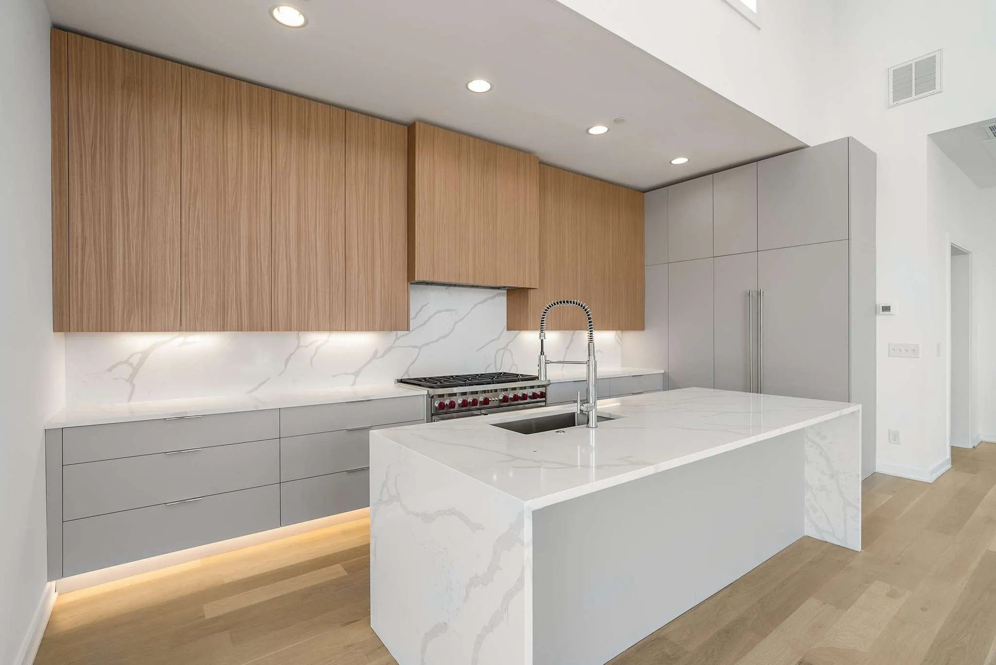 One of a kind two-unit High Rise Living (THINK LUXURY CONDO LIFESTYLE) in Nashville overlooking Downtown and Midtown just a couple blocks from The Gulch – the ultimate lock and leave opportunity. Unique, four-story, private luxury residences with incredible 270 degree views of midtown and downtown Nashville. There is nothing like it, KEEP THE GULCH LOCATION but ADD a private THREE CAR GARAGE and all the space you are missing! Unit A is 4440 SF and features a Full-Floor 1215 SF Primary Suite + Office – an ENTIRE FLOOR for the Primary Suite. 4th Floor Living-Kitchen-Dining with sweeping downtown and midtown views and soaring 14′ ceilings. Wolf and Sub Zero cabinet paneled appliances. Commercial Style Elevator with motorized doors to All Four Floors. Floating Monotube Stairs and LED lighting in the Entry, Elevated Decks on Every Level, & 3 Car Garage with storage room. Additional 2nd office or 5th bedroom on the entry level. High-rise condo location with elevated living but includes the space you need for guests and work-at-home with zero maintenance and private parking. This is the one you’ve been waiting for. Additional Bonus, Unit C available: 535 SF Studio can be purchased with either A or B Unit. Unit C features a Private, Single Car Garage, Incredible Guest Suite, In-Law, Nanny or Rental Unit – Nicely Appointed, Full Kitchen, Full Bath, Laundry. NOTE* The garage level is shown in the square footage as the basement level. The main floor (2nd floor) features the 3 aux bedrooms and 2 full bathrooms. Above, the primary suite is located on the third floor. The living-kitchen-dining is located on the 4th floor. Please use TAR forms. The C unit can also be purchased with either the A unit or the B unit and could make a fantastic additional flex option for a separate in-law suite, nanny, au pair and more. Wolf 48″ Gas Range with Double Oven. Sub Zero 48″ Cabinet Panel Refrigerator. Cabinets from Nashville Modern Cabinetry. See photo descriptions for more information!