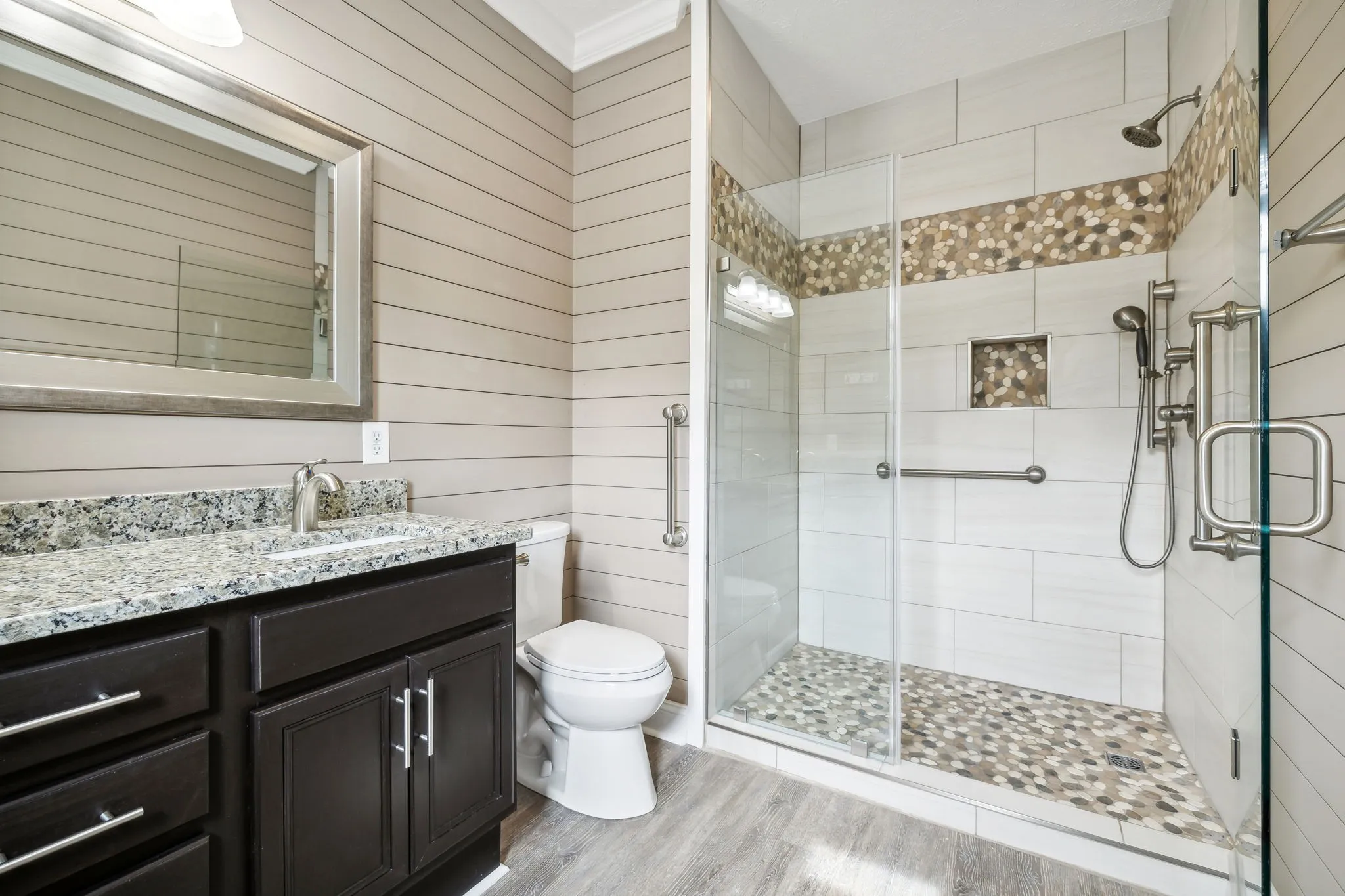 Immaculately-kept single level home with accessibility upgrades. This home is better than new and features accessible walk-in tub in the hall bath, tiled primary shower with grab bars, fenced-in backyard, energy efficient windows, vinyl plank flooring, and more! Appliances were upgraded and are in like-new condition. Large garage with ample storage. Extra flooring has been added to attic, which could be converted to second story if desired. Convenient access to Station Camp schools, greenway (park), neighborhood pool, and quick access to HWY 386 and Hendersonville shopping. This home is located in a community zoned for top-rated schools.