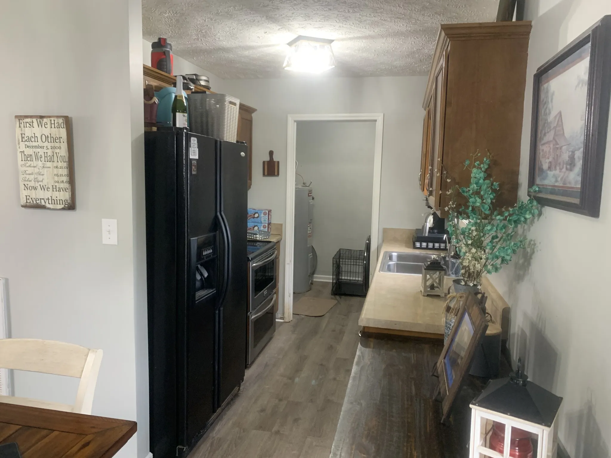 Home sweet home! Relax on the front porch of this delightful 3-bedroom, 2-bath residence. With a new HVAC system installed in summer 2023, along with updated vinyl flooring, lighting, baseboards, and fresh paint, this home is a delight. The spacious covered deck in the fully fenced backyard is ideal for unwinding after a long day. Conveniently located near Fort Campbell, state line, and shopping! Don’t miss your chance to own this fantastic home in a great location at an unbeatable price!