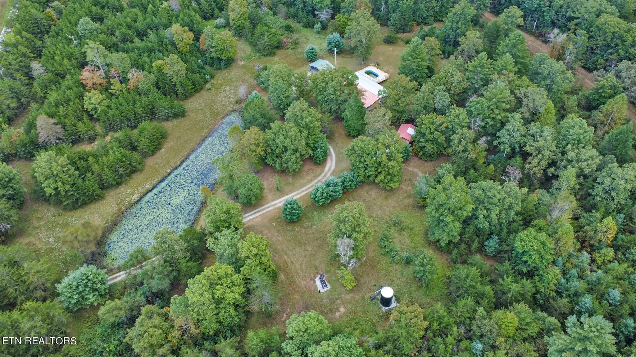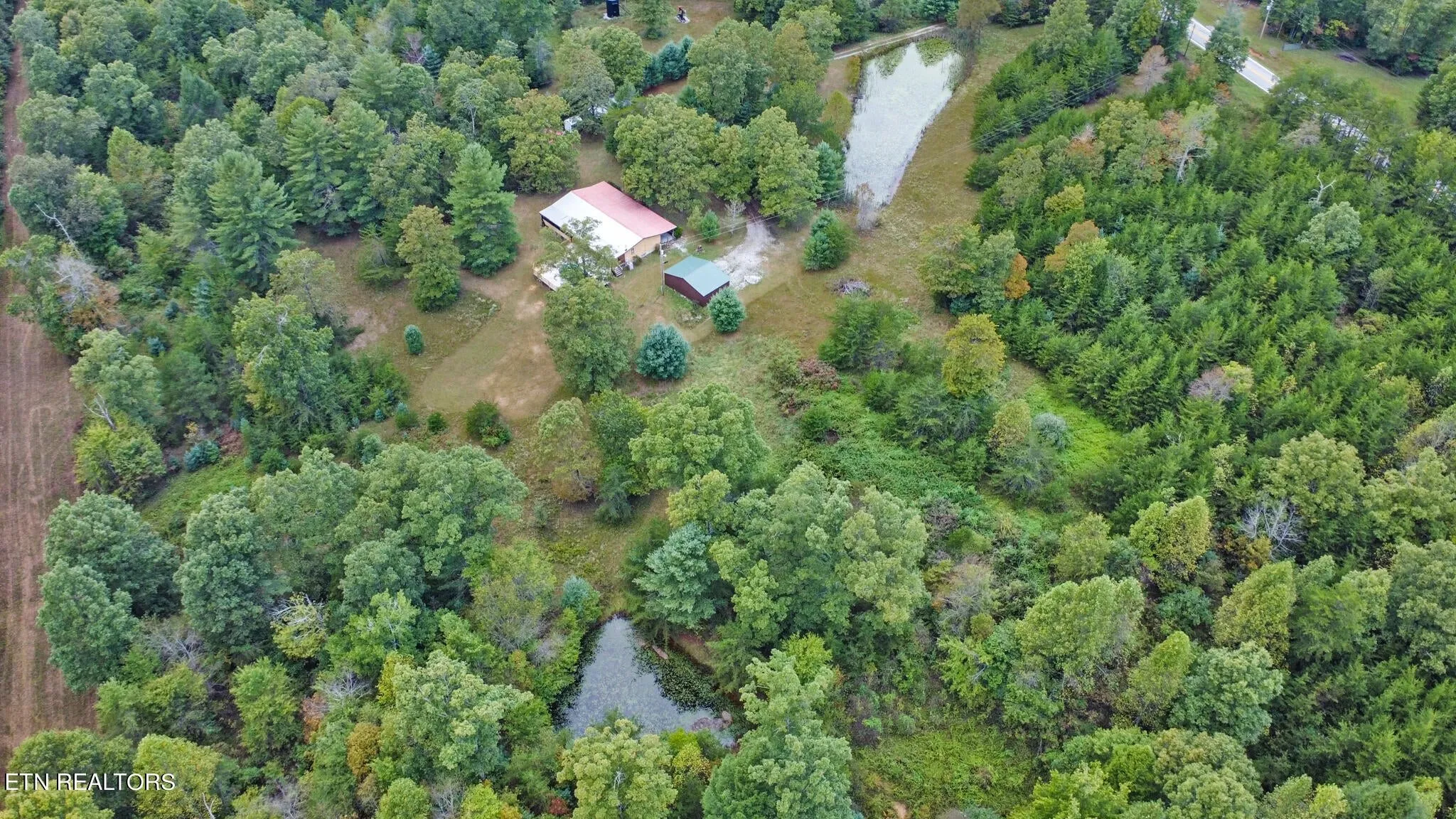Beautiful Setting! This 3 Bedroom, 2 bath, Country Style home has the feel of a rustic cabin. This home features split bedrooms, a natural Gas Fireplace, a kitchen with lovely wood cabinets, and an office room. This home has a large, covered porch across the front to enjoy the private country setting and looks over the pond. The home has a nice back deck with a screened-in porch and hot tub. The 16 X 20 metal open garage shed would be great for your cars. The 2 acres also includes a 12X16 barn and 24X16 wired workshop. Come down the long driveway for a piece of natural country setting. Mineral rights included and No restrictions. Call today.