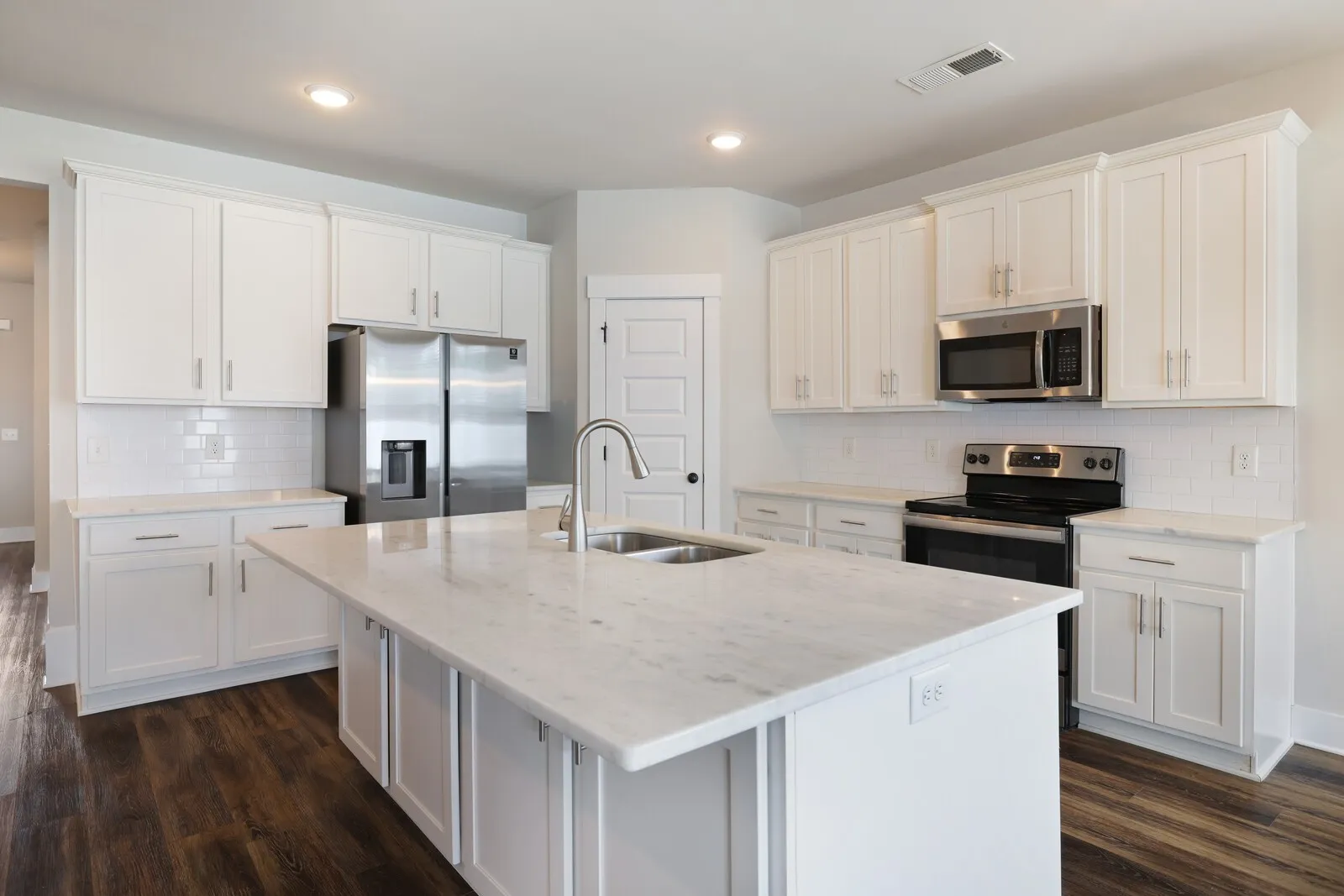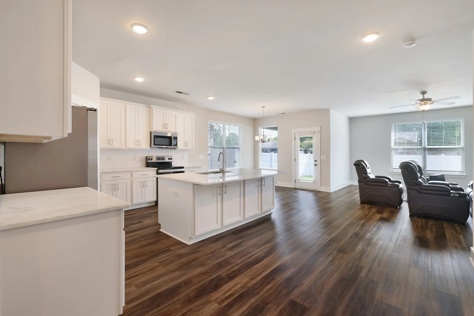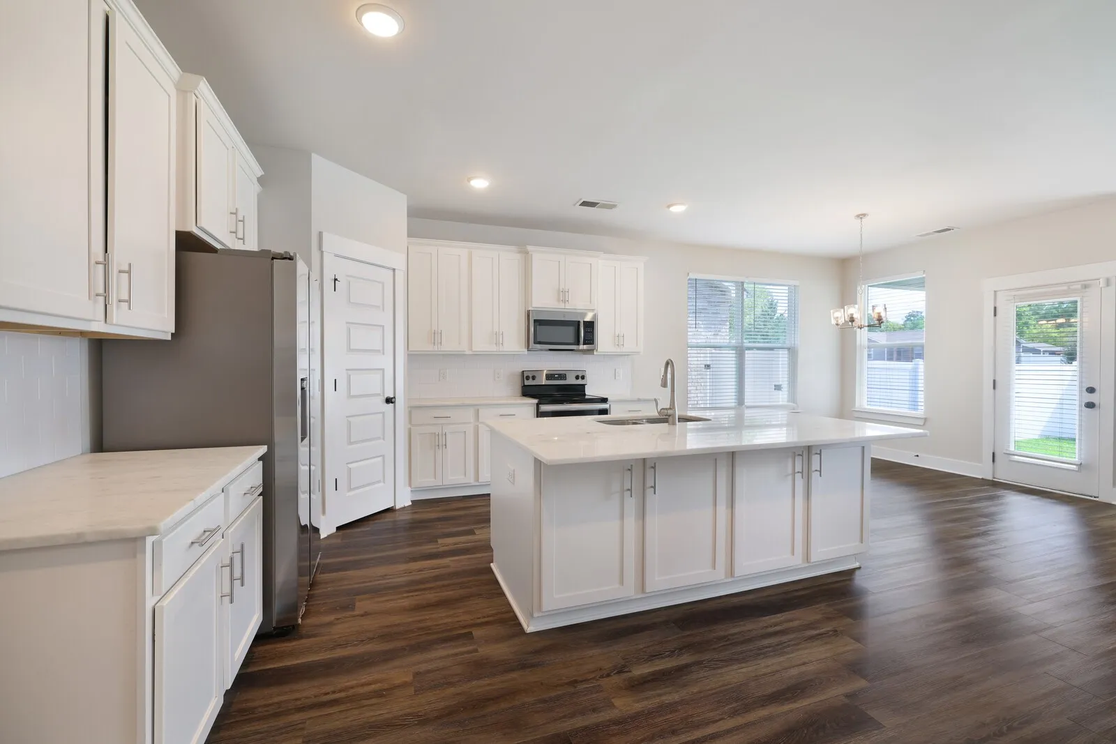 Open house Sunday 2-4pm. This beautiful 4-bedroom, 3-bath home, built in 2020, still feels brand new with a fresh coat of paint throughout! Located in a newer neighborhood, this move-in-ready home features modern touches like LVP flooring and an open-concept kitchen with sleek white cabinets, quartz countertops, a subway tile backsplash, and stainless steel appliances. The main level includes a primary suite with an en-suite bathroom, a spacious walk-in closet, and convenient access to the laundry room. A first-floor bedroom is situated right off the entryway, perfect for guests or a home office. Upstairs, you’ll find two additional bedrooms with walk-in closets, a shared hallway bathroom, and a versatile bonus room for extra living space. Enjoy outdoor living with a covered patio and a fenced-in backyard. The home also comes with a 2-car garage for added convenience. Don’t miss out on this gorgeous home, which is ready for you to move in and make your own!