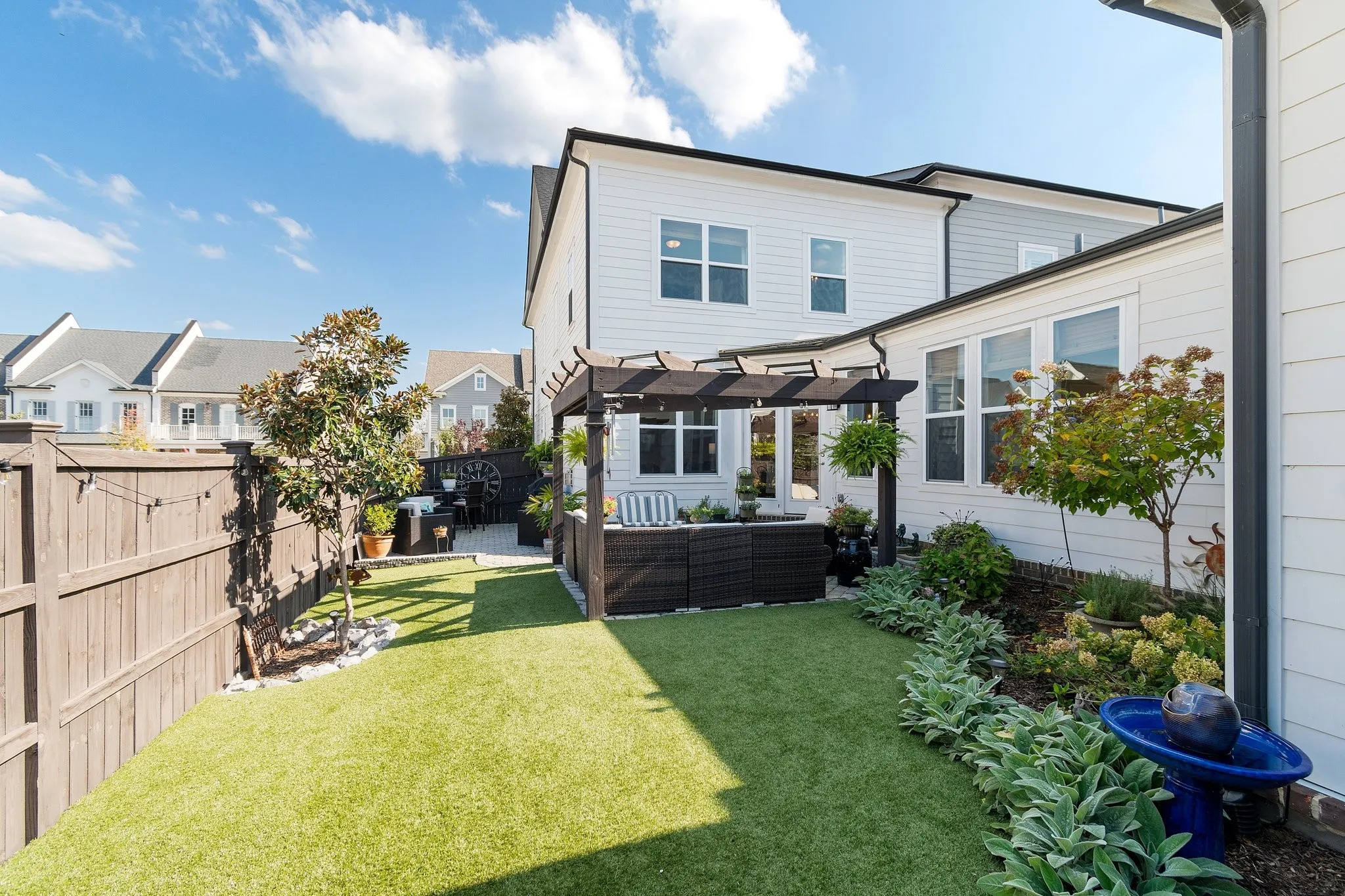 Lovely END UNIT “Lily” townhome tucked away on a quiet, picturesque street in Westhaven! This bright and airy floor plan offers main level, open concept living with a spacious primary bedroom, en-suite bath and generous walk-in closet on the first floor. Chef’s kitchen with quartz counter tops, gas cooktop, under cabinet lighting and a huge pantry. The cozy fireplace in the family room is flanked by custom book shelves on each side. Upstairs you will find a spacious bonus area, two generous bedrooms and two full baths. The true star of the show is the stunning backyard paradise. One of the largest townhome yards in the neighborhood, this space is fully turfed with extensive hardscape and landscaping. One step, direct access going from the garage inside the home, rocking chair front porch, ample attic storage and so much more! Don’t miss out on this stylish, low-maintenance townhome in the vibrant Westhaven community!