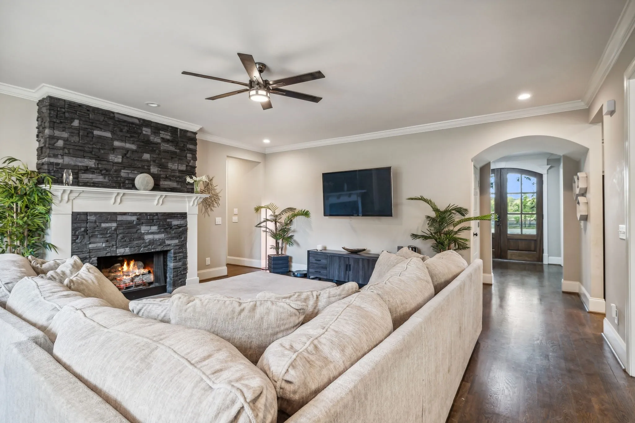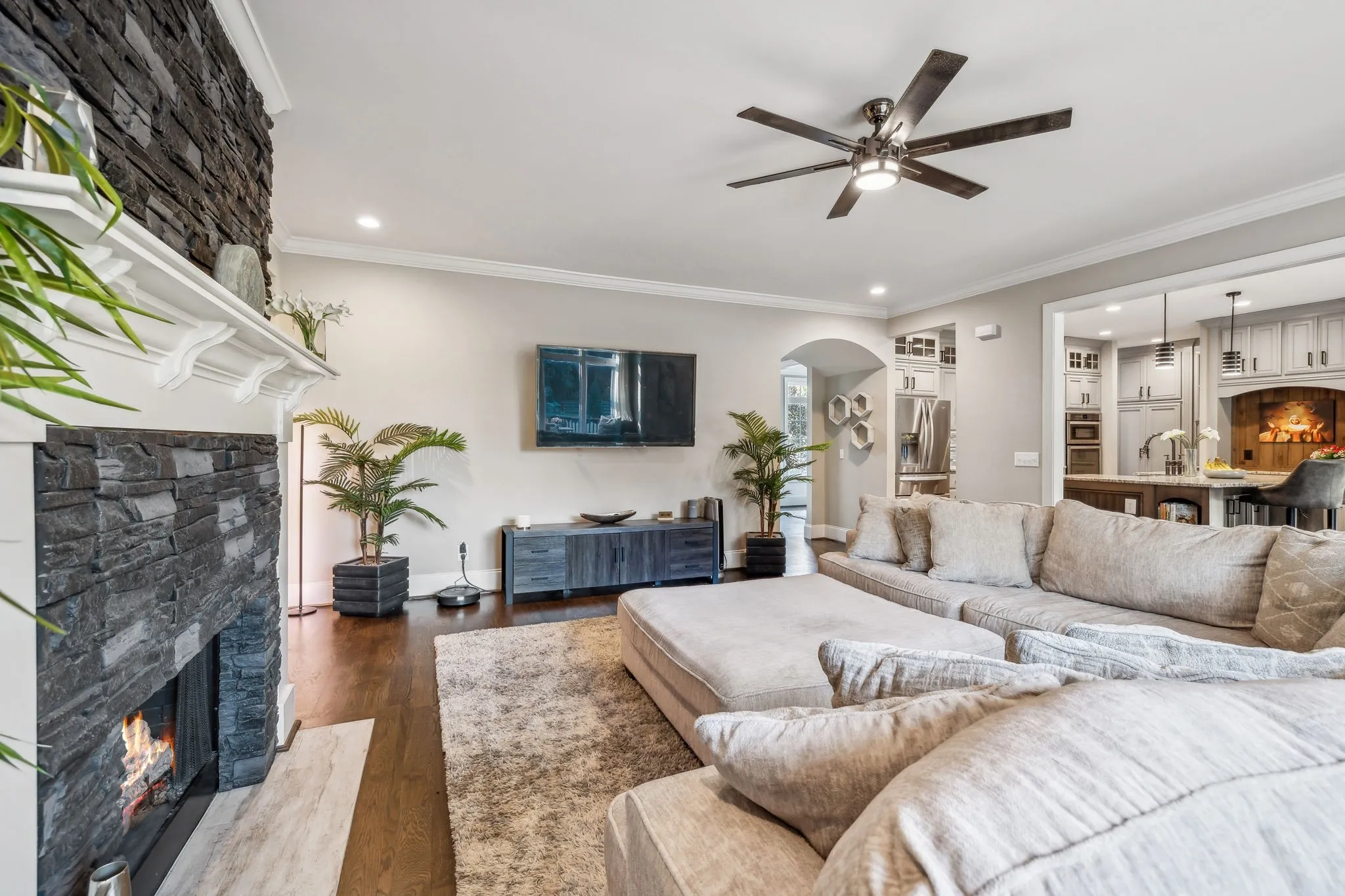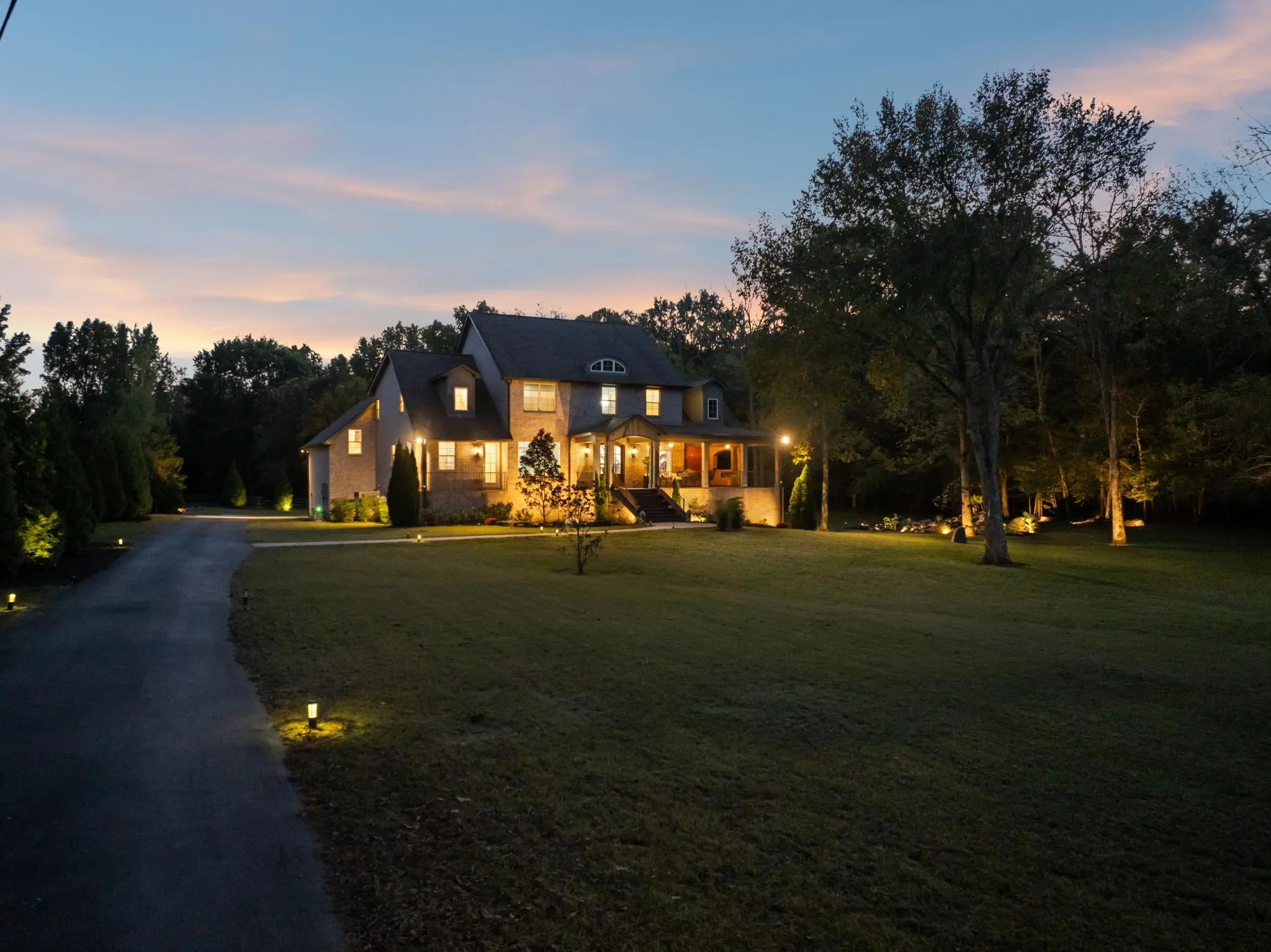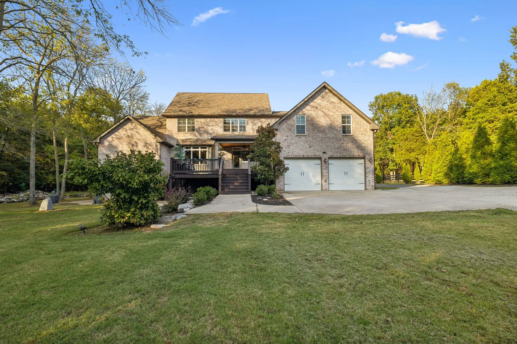 Experience luxury living in this beautiful custom home, set on 3.2 tranquil wooded acres, just -minutes from Providence. The impressive kitchen features premium cabinetry, stunning granite countertops & a spacious island with serving bar, along with a large walk-in pantry & an adjacent butler’s pantry with an extra refrigerator. The open floor plan connects to the Great room, formal dining area, and a sophisticated study. Main level primary bedroom offers a view of a picturesque waterfall and wooded backyard, with a generous walk-in closet & a spa-like bathroom featuring a lavish shower. Upstairs, discover two bedrooms each with private baths, an office, a spacious den with a wet bar, and a bonus rec room over the garage. Additional highlights include composite decking, a back-up generator, tankless water heater, water softener, outdoor lighting, gated driveway, invisible dog fence, and a security system. Convenient to Nashville and airport.