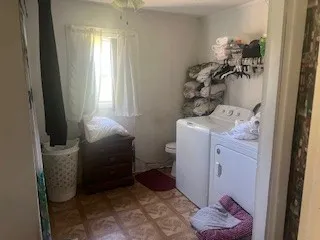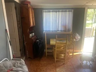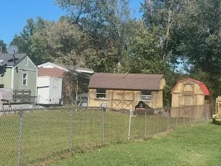 Here is is….very affordable but in need of TLC with a price that allows a great flip opportunity or your home. The once garage is now the primary bedroom with a large bath and laundry area attached. There are 2 other bedrooms on the other end. Spacious living room that flows into a good size kitchen with a dining space. There is a flex space that currently exits out to the fenced in backyard and now is used as a utility type room with freezers and storage.Great corner lot with the large storage building remaining and beautiful mature trees for shade. The half bath area is likely large enough to add a stand up shower. The tax records square footage is before the primary and primary bath were created. Nice floor plan that is ready to transform . I can only imagine what siding and a few interior upgrades could do.