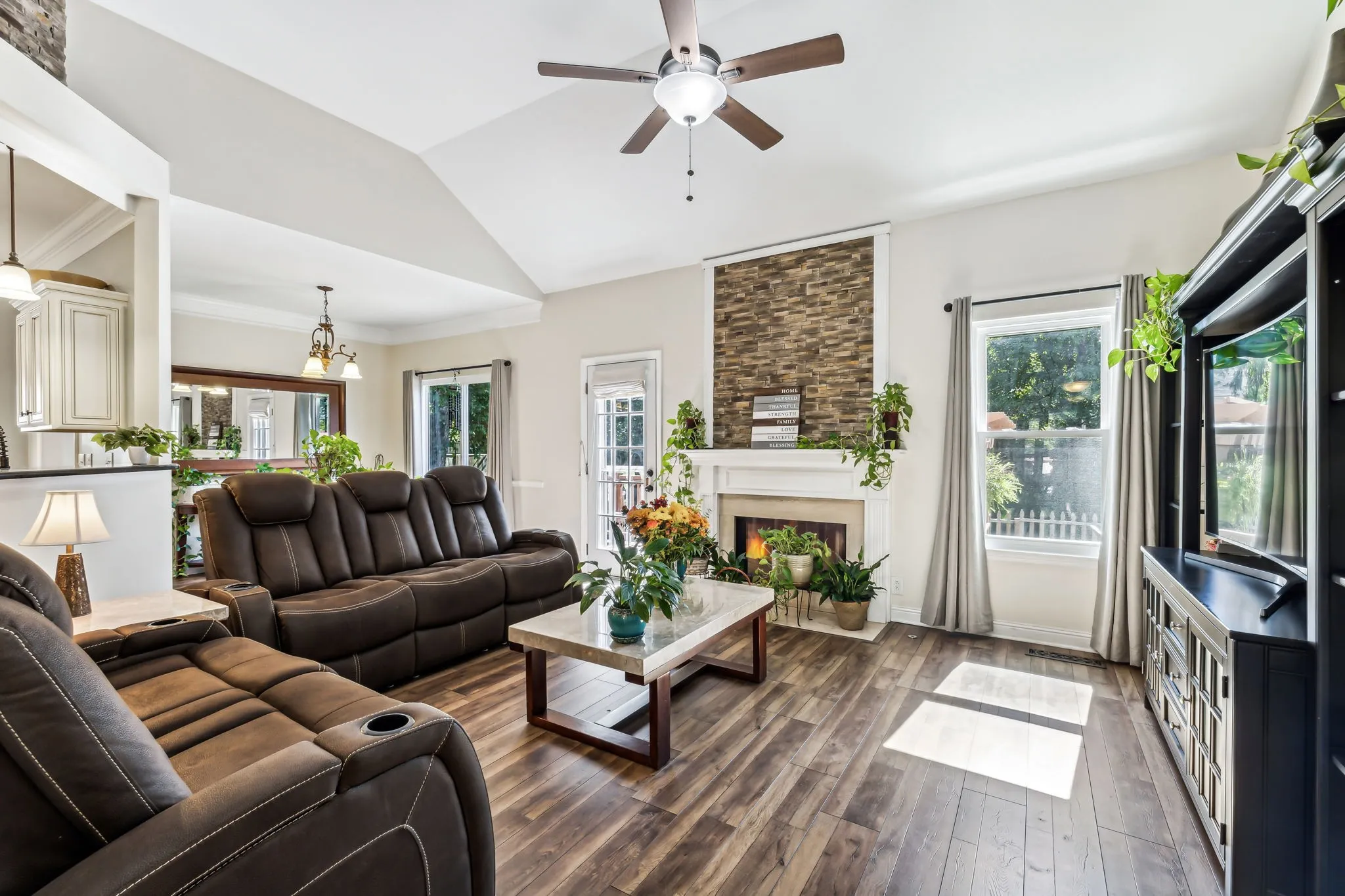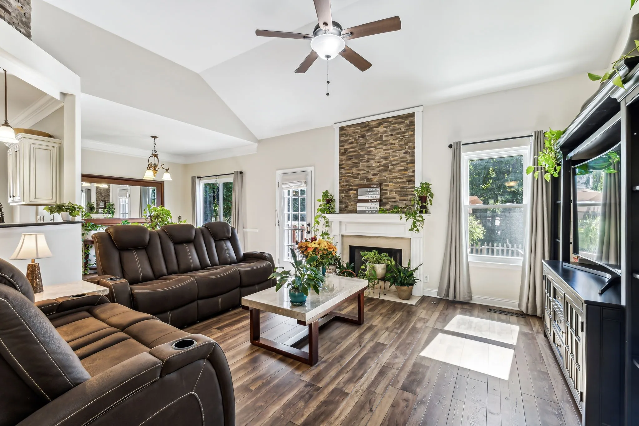 Incredible Home in a Sought-After Neighborhood with Top-Rated Schools! This dream home offers three bedrooms on the main level, featuring gleaming laminate floors, granite countertops, and chic tile details. The renovated master bath and full bath add a luxurious touch. The backyard, complete with an arbor deck and patio, is perfect for gatherings. The gourmet kitchen boasts granite countertops, which are ideal for cooking enthusiasts. Recent updates include a new roof (1 year), windows and air conditioning (2 years), and hardwood floors (3 years). The fireplace and backyard were fully remodeled, and the carpets are just three years old. With two parking spaces, three bedrooms, and 2.5 baths, plus a bonus room on the second floor, this home offers style, comfort, and a prime location with top-rated schools! This home has stone veneer projects that bring many benefits. Interior and exterior. Offering an upgrade value.