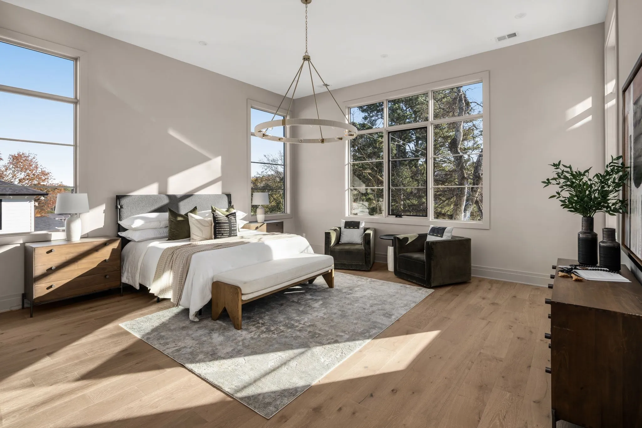 6417 Currywood Drive is located in the coveted West Meade neighborhood of Nashville, Tennessee. Nestled between Belle Meade and West Nashville, daily conveniences abound. This home offers a blend of tranquil design with all the modern amenities that buyers come to expect of a luxury new construction home. With its spacious layout, the house features 5 bedrooms and 5.5 bathrooms, providing ample space for a growing family or individuals seeking room to relax. The home also provides an office, recreation room, gym and several flex areas. A beautifully landscaped backyard with a pool adds to the exceptional outdoor living, perfect for outdoor activities and entertaining guests. This trophy property offers easy access to local amenities, and schools making it an ideal choice for those seeking both tranquility and convenience in Music City.