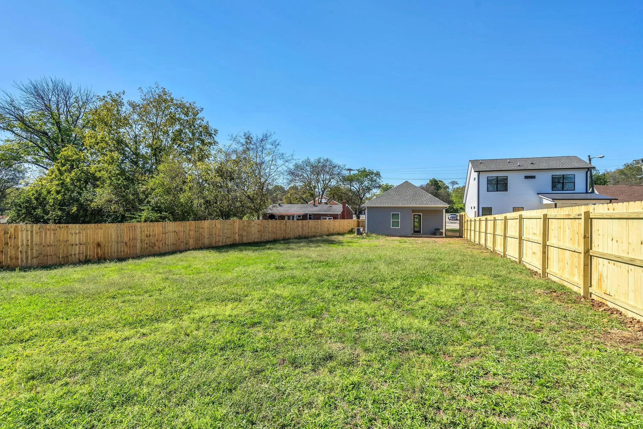 HUGE YARD! Over 1/4 ACRE! Waiting for you to create your own backyard oasis or urban garden! Purchase for yourself or as a long term rental! Huge potential for increased equity as this area is exploding! This property qualifies for 100% financing w/ two lenders. Beautiful One Level NEW CONSTRUCTION Home! This home lives so much larger than its square footage! Enjoy Slightly Modern Interior Finishes! Lovely vaulted ceiling and open living/kitchen areas! Upgrades Include: Spray Foam Insulation! Whirlpool Stainless Kitchen Appliances! Tankless Water Heater! Window Blinds Already Installed! You get to enjoy not just one, but two covered porches! New privacy fence! Parking Pad in front of home! And one of the very best features of this home is the large, deep back yard that offers seasonal views of the downtown skyline! Enjoy quick easy access to all that downtown Nashville has to offer! Home is 6 miles to downtown! Beautiful scenic drive across the river!