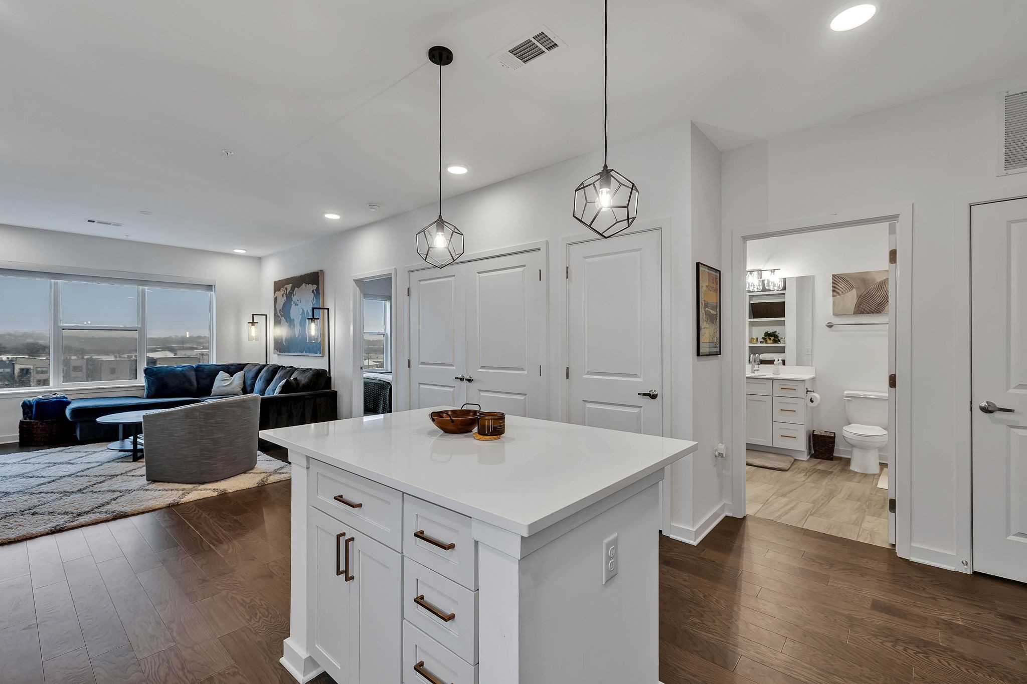 Move right into this sophisticated and luxurious condo in the heart of the Nations. This top floor exterior unit features an inviting atmosphere full of abundant natural light. The kitchen features a large island, stainless steel appliances, ample cabinet storage and counter space, and a separate pantry. The primary suite features double vanities, a large shower, and a walk-in closet. The secondary bedroom is spacious, with a walk-in closet and a large bathroom. The building features unbeatable amenities that include a pool, gas grills, a fitness center, a pet spa, and a resident lounge. The sale also includes 2 front-row assigned parking spots.