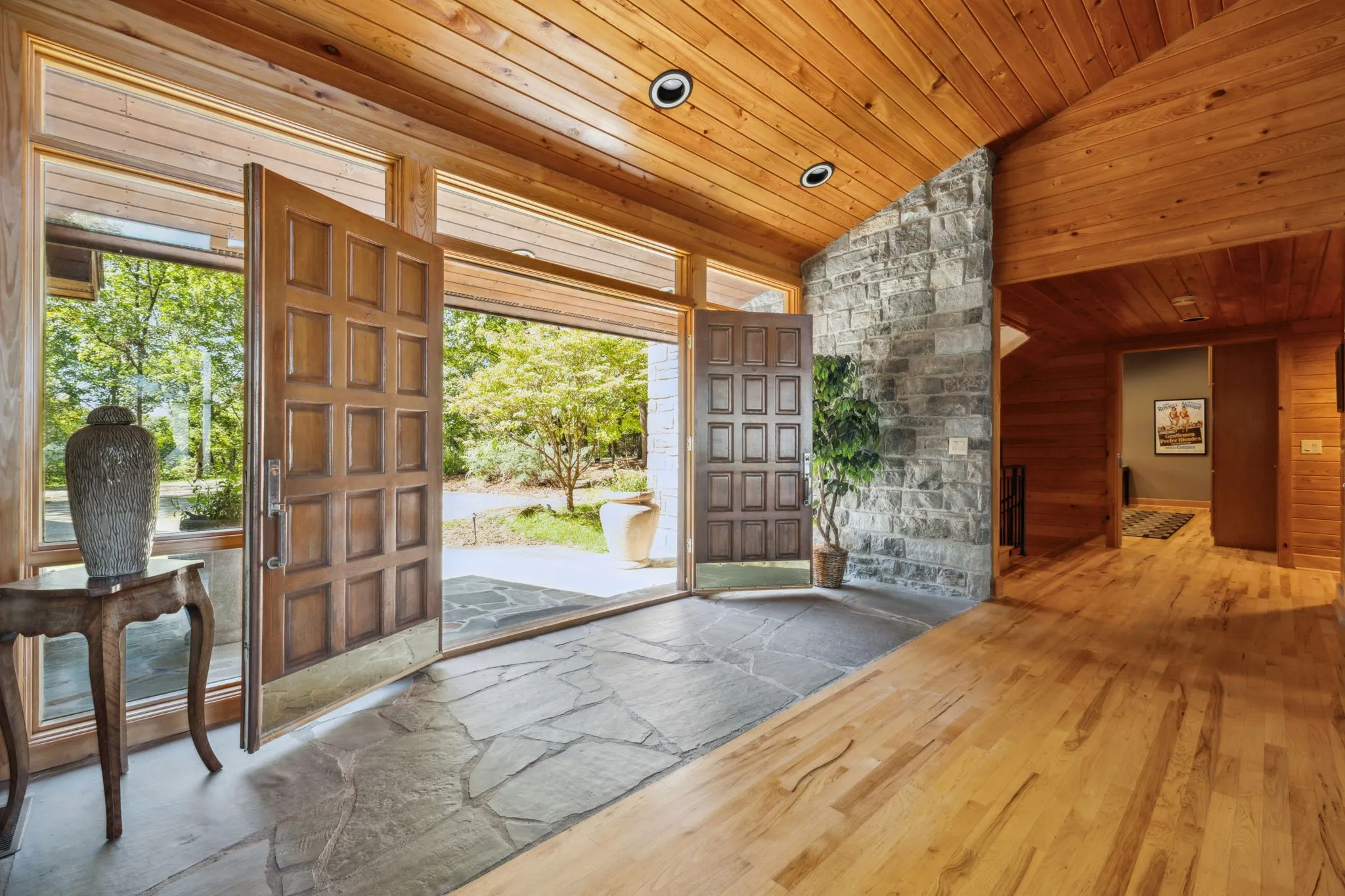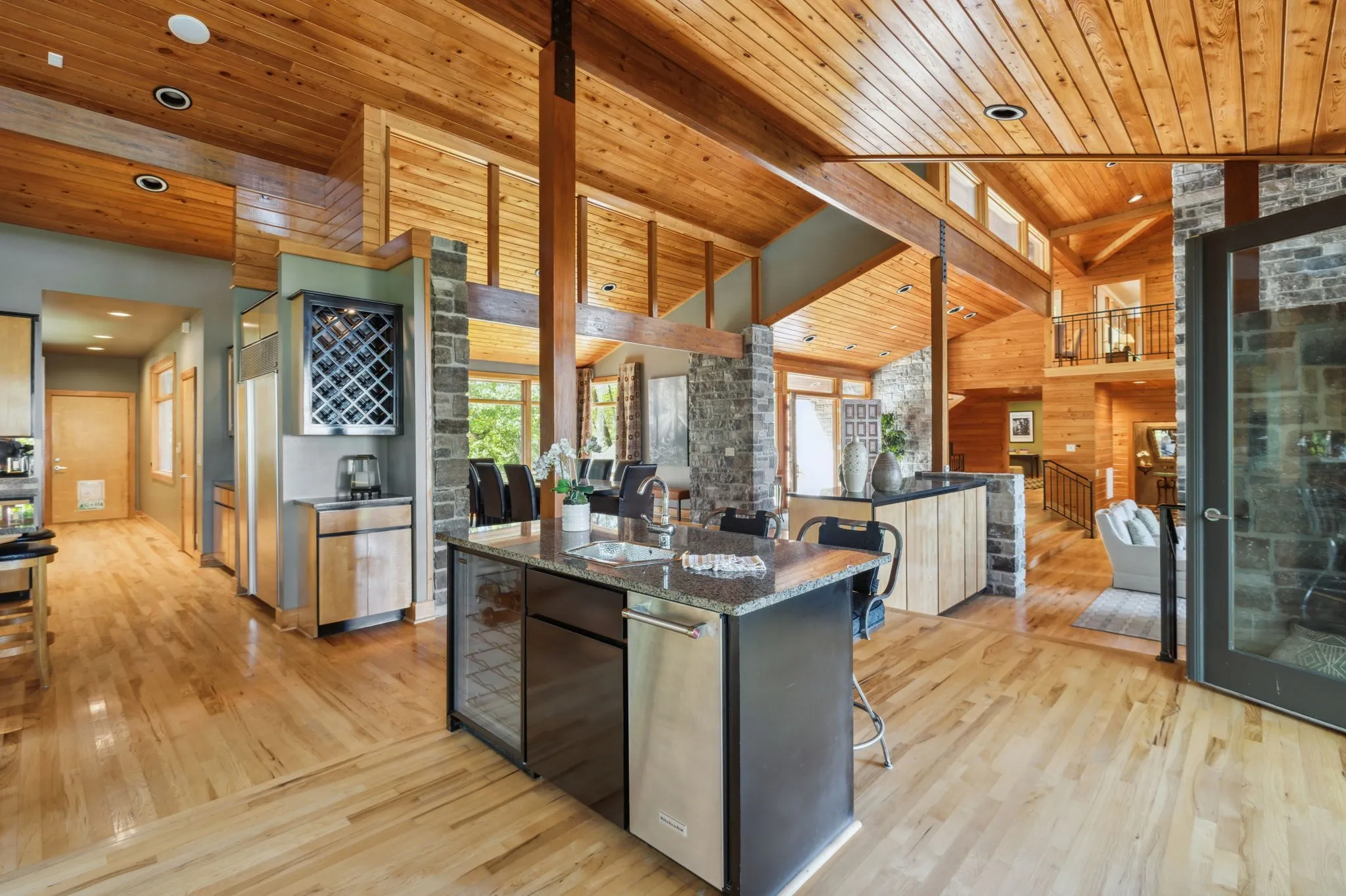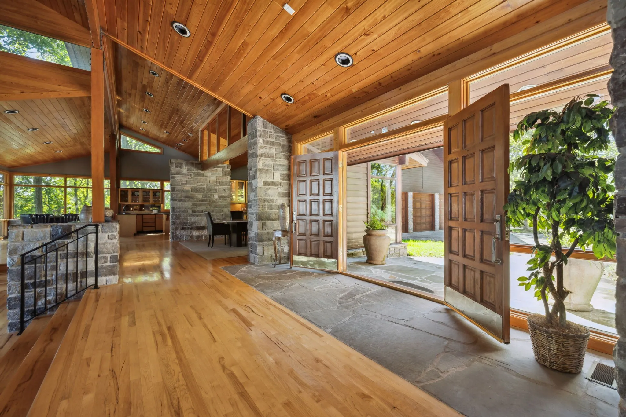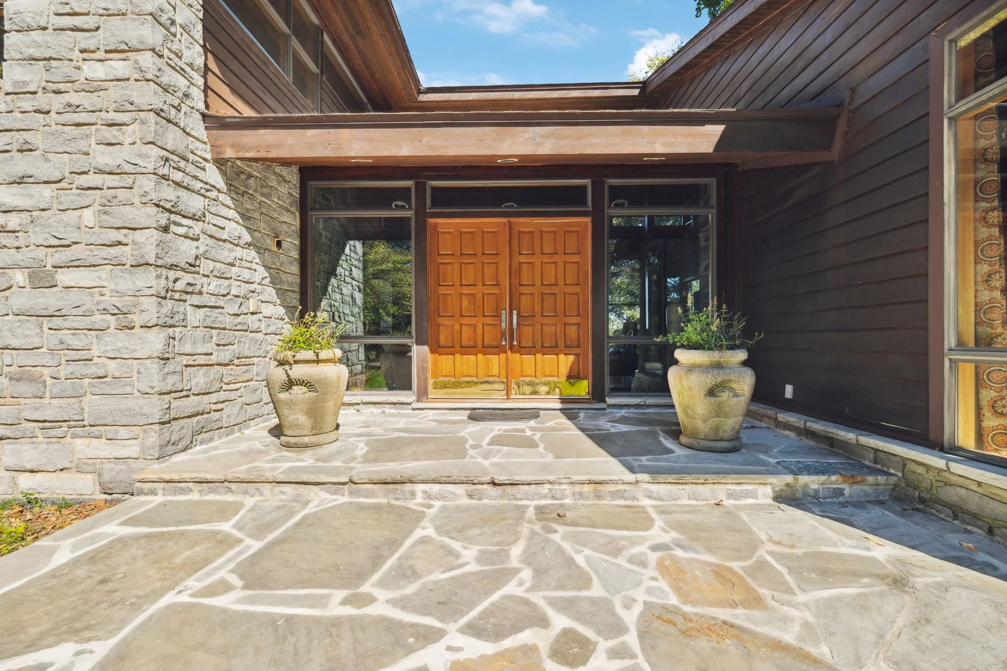 - Construction Materials: Wood Siding, Stone