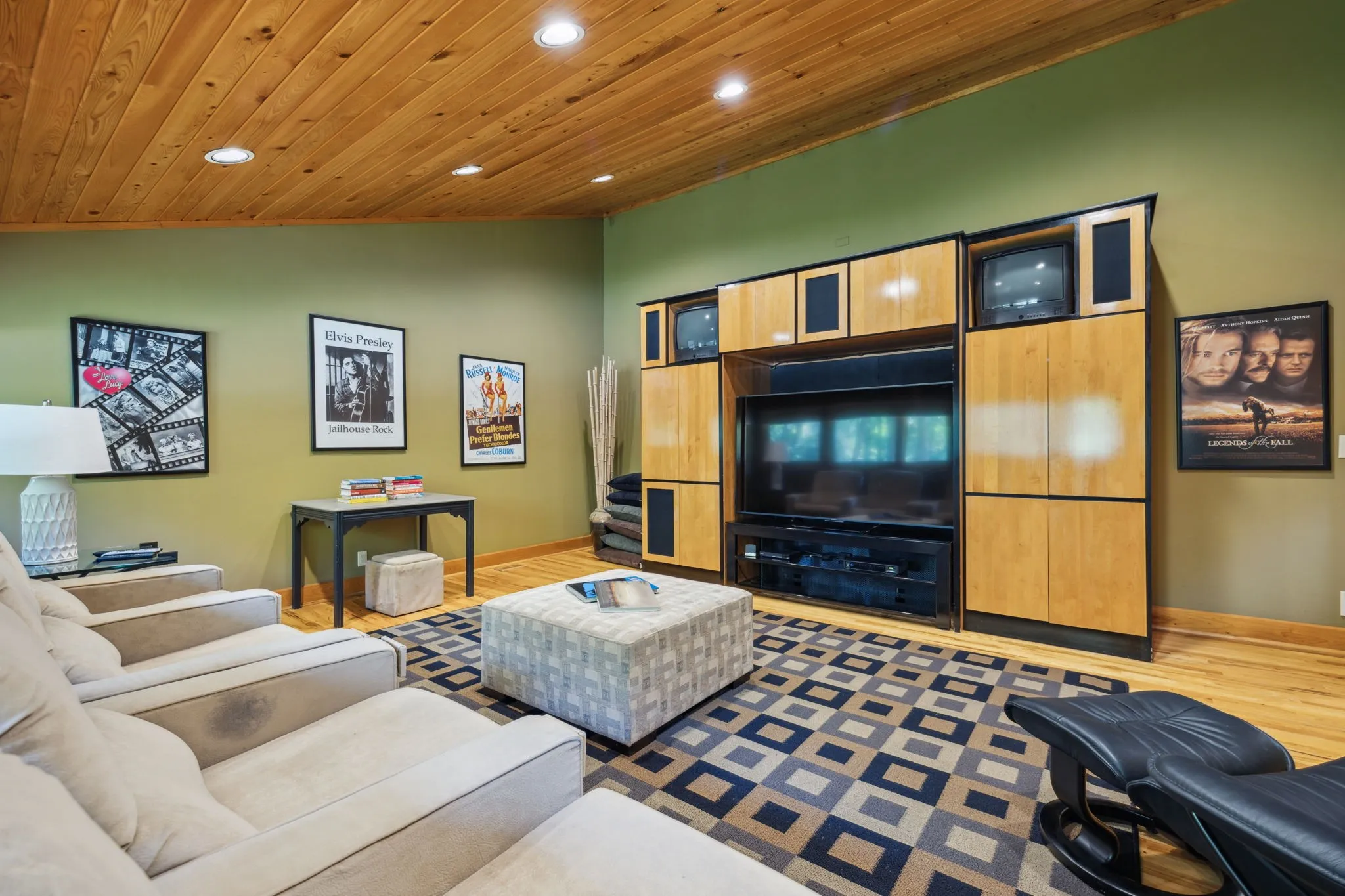 Upstairs, two additional bedroom suites each feature private decks, while the lower level offers yet another bedroom suite, a spacious den with a fireplace, a billiards room and generous storage.