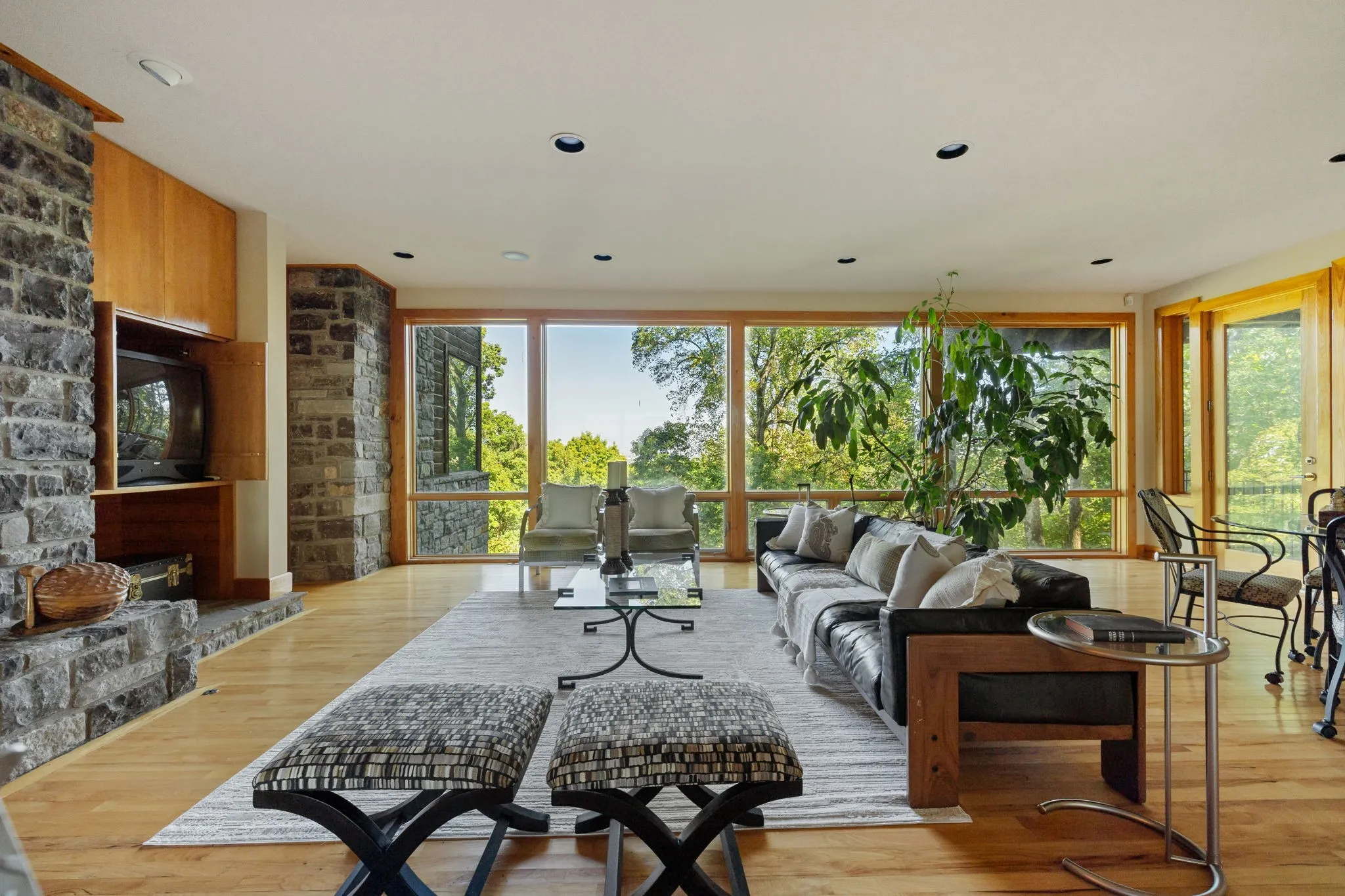 From the moment you step through the front door, you’ll be captivated by awe-inspiring, panoramic views of the Nashville skyline. Expansive walls of windows, sun drenched interiors, and deck off of every room create a seamless connection to the surrounding treetop canopies, perfect for both entertaining and quiet relaxation.
