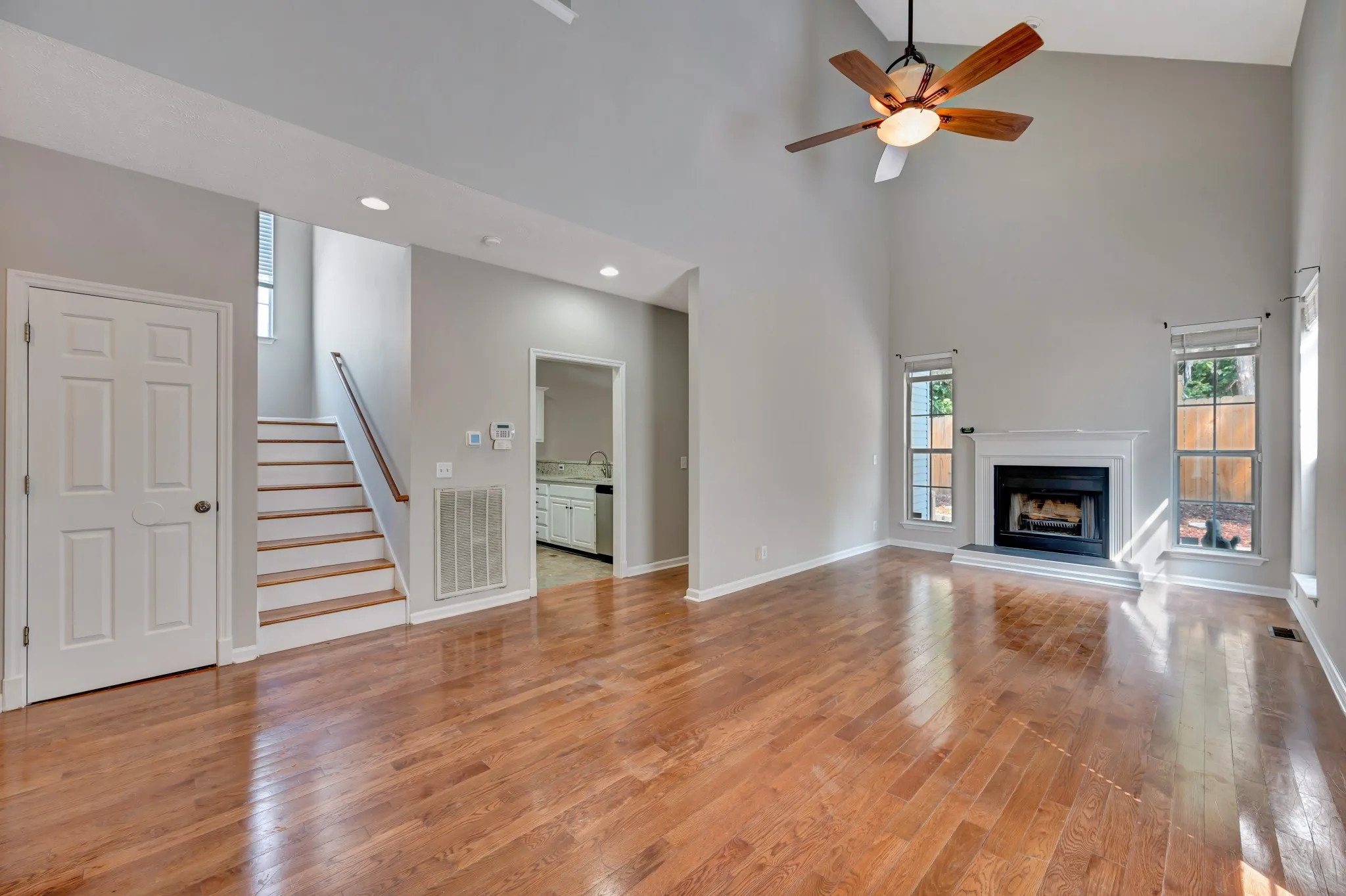 This move-in ready home has a modern open floor plan, hardwood and tile floors, vaulted ceilings, lots of storage, a small fenced backyard, a private deck and patio, all appliances included (washer and dryer too), and is freshly painted.