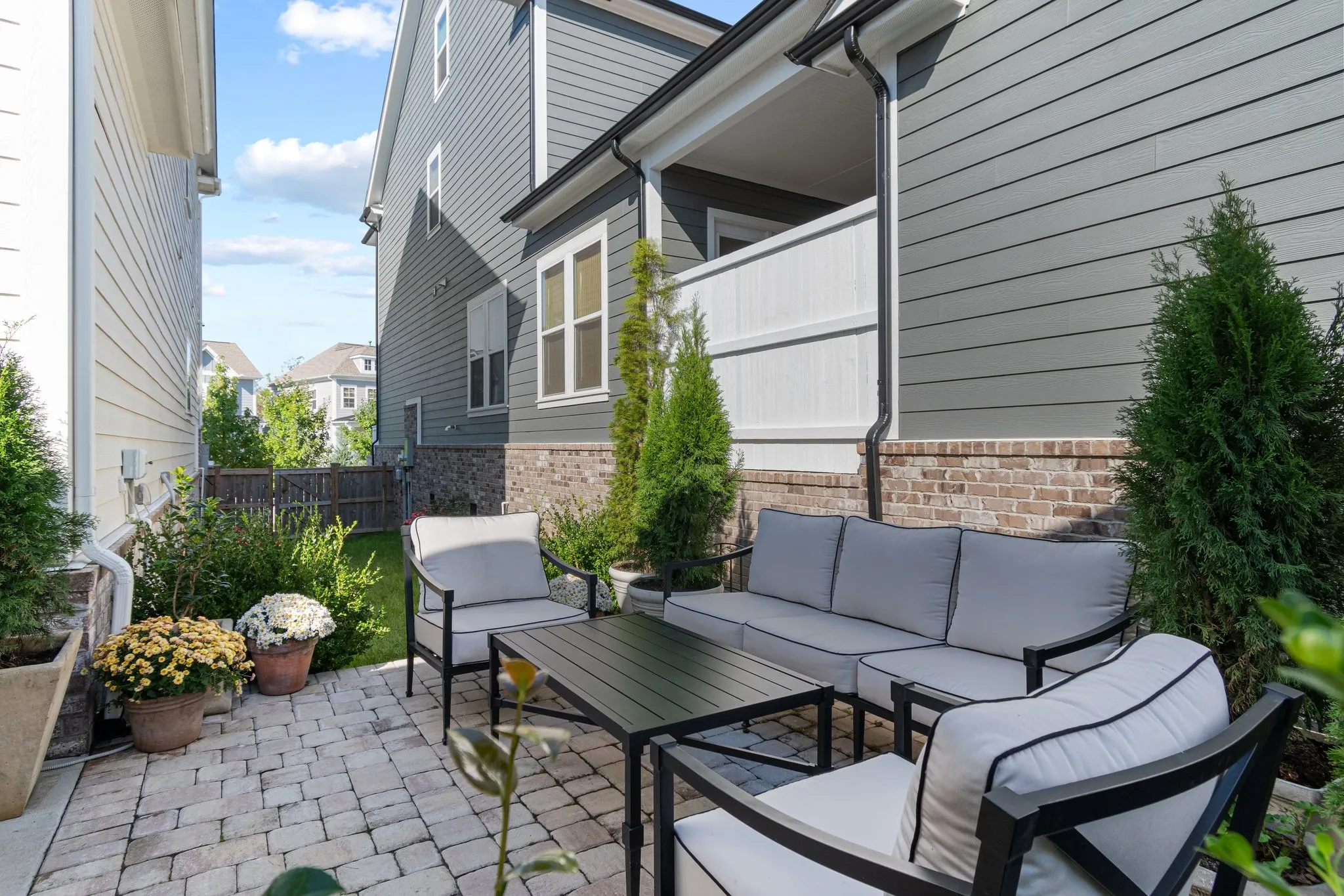One owner home shows like NEW! This home boasts many upgrades and features including 10 ft ceilings, private side yard with extended patio, main floor primary suite with soaker tub, large 3rd floor guest suite, walk-in closets, 20k in media upgrades inluding speakers, surround sound, & security cameras, irrigation, tankless water heater and more! Covered front porch is perfect for sunset viewing! Community includes 2 pools, playground, clubhouse and is walking distance to the upcoming City of Franklin’s Southeast Municipal complex park.