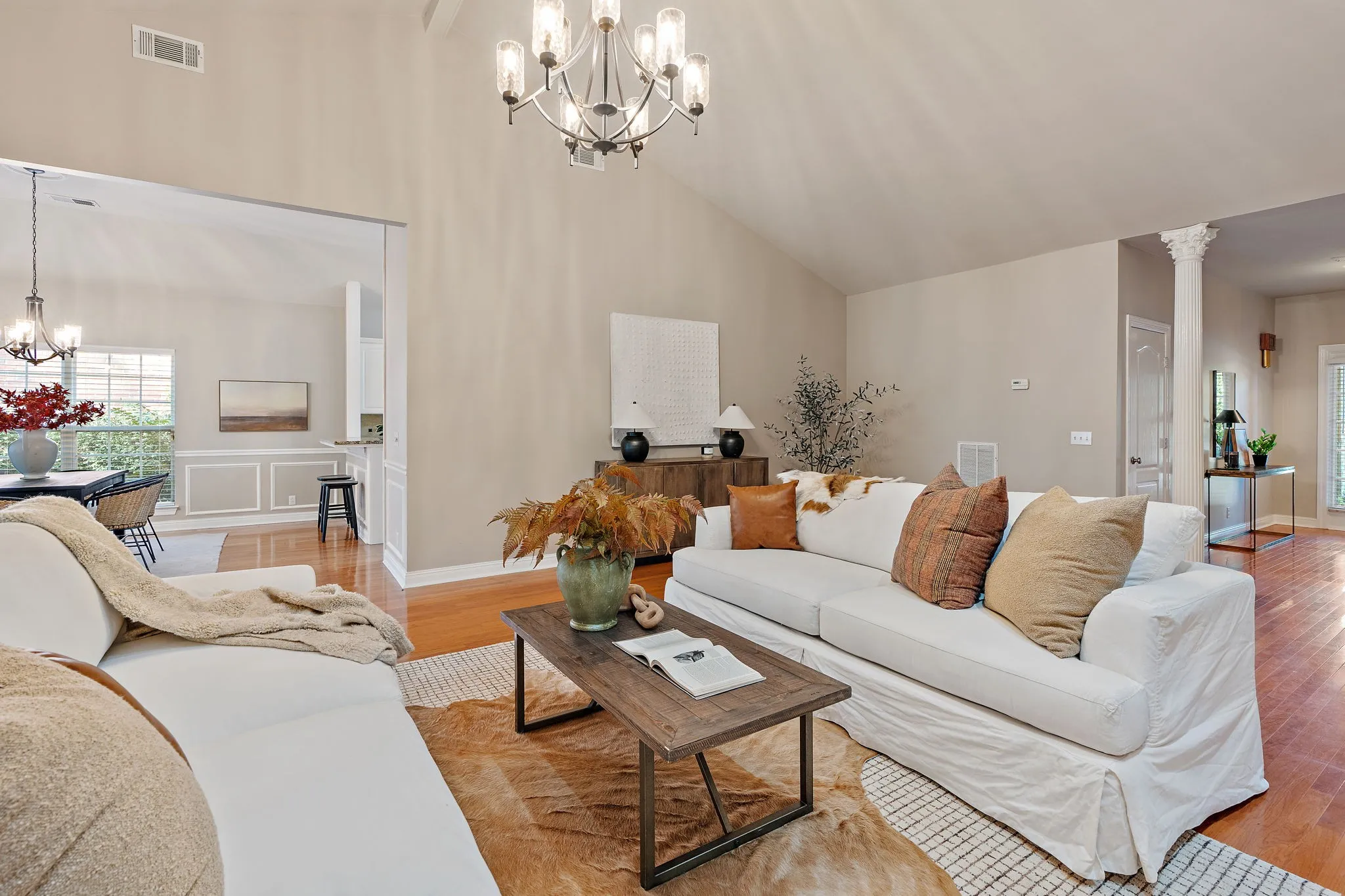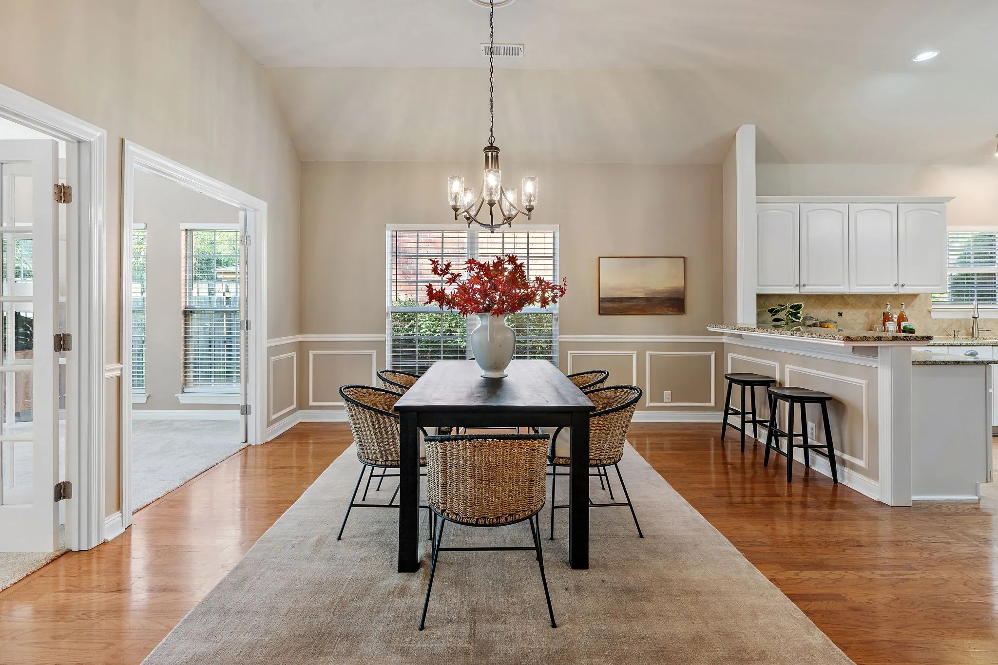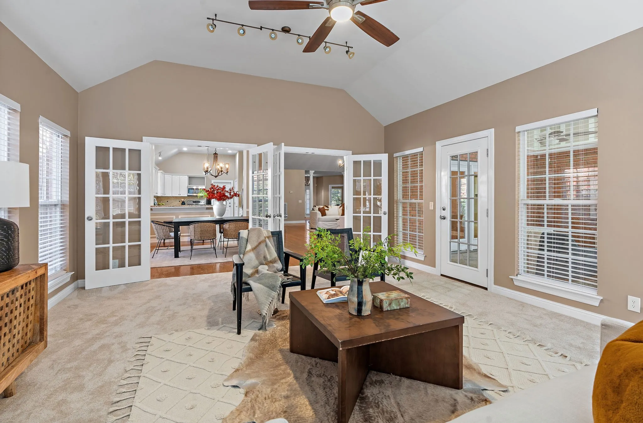 A gorgeous one level home nestled in the heart of Franklin, less than 5 min from Historic Downtown! This spacious open concept has absolutely no steps leading into or out of the home. It features multiple living areas including a big den and a beautiful conditioned sunroom with tons of natural light! The level fenced backyard includes a sunny flagstone patio & fire pit. Other highlights are 15 ft ceilings, a home office, a cozy gas fireplace, custom built-ins, new carpet, fresh paint, tons of storage space, a two-car garage, irrigation & more. See the attached list for more upgrades! The neighborhood feels very cozy and has an active HOA that puts on several events each year. Zoned for Franklin Special School District. Enjoy easy access to dozens of local stores and restaurants, including the Factory (home to unique events, concerts, movie screenings, & more). You’re surrounded by lovely outdoor spaces including Harlinsdale Farm, featuring a 4-acre dog park, a fishing pond, & more!