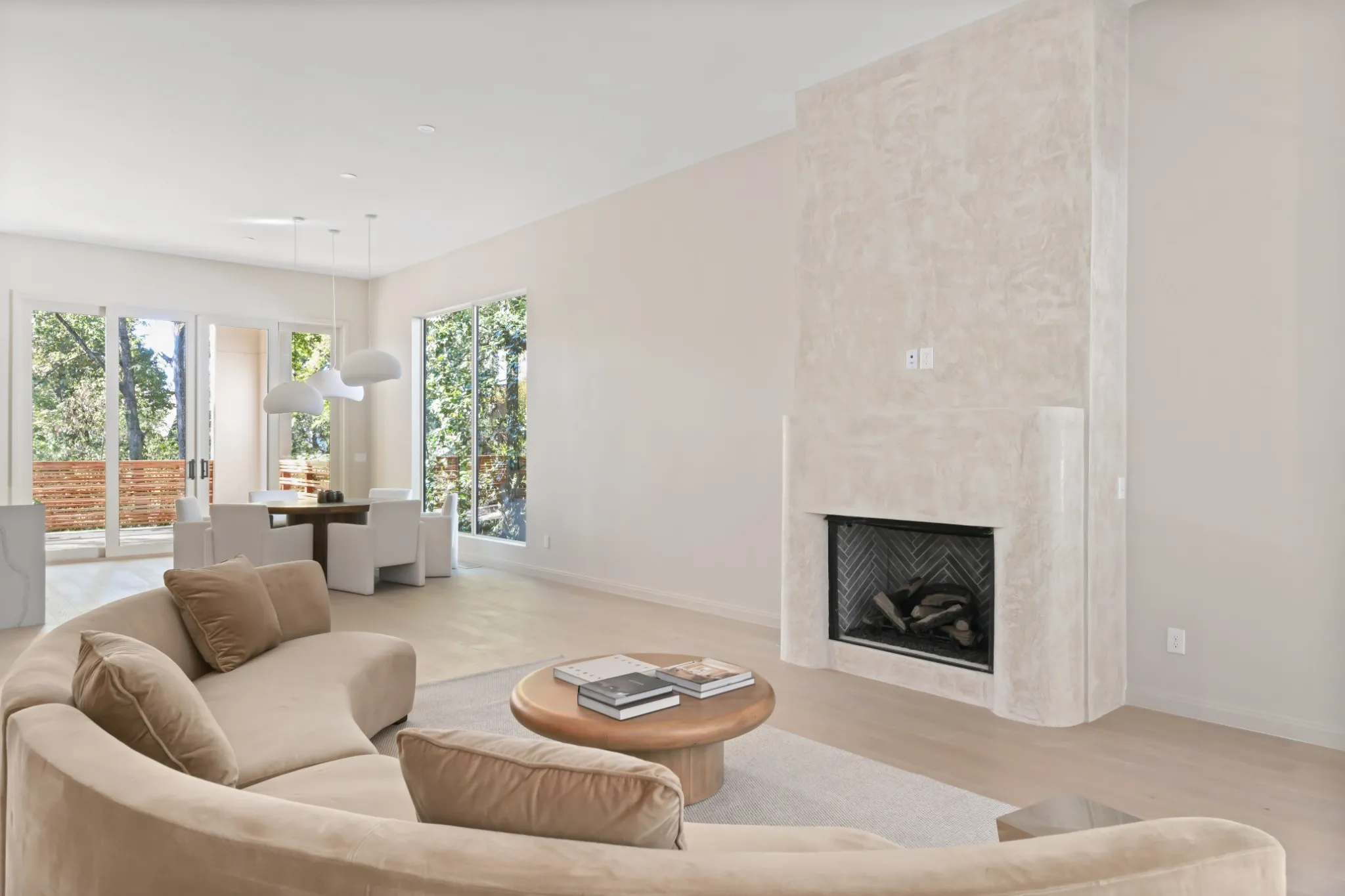 QUIET LUXURY interiors featuring imported stone, custom lacquer cabinetry with Venetian plaster fireplace and hood, soaring ceilings, upgraded polished nickel plumbing hardware, GE Monogram appliances and massive windows light up this magnificent home. Created for the discerning buyer with a refined aesthetic who values thoughtful design. White oak plank floors throughout and solid light wood-stained doors inside as well as custom cedar detail work on the exterior are just a few exceptional highlights in this one-of-a-kind home.