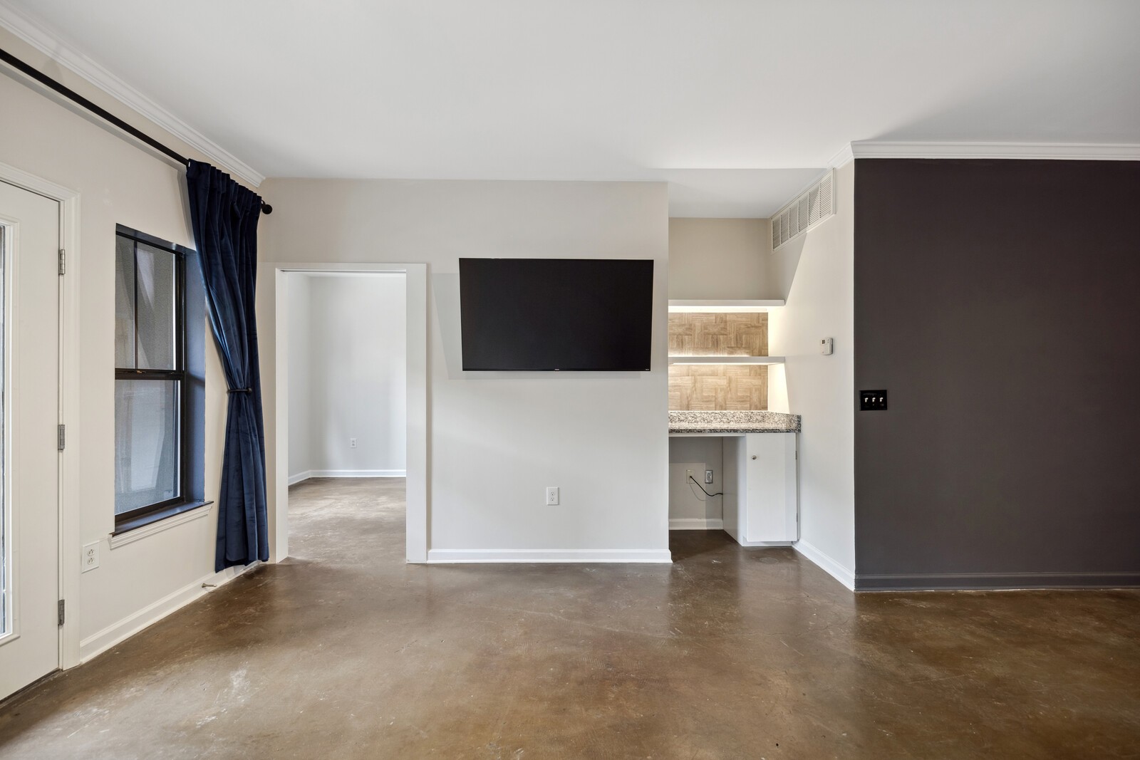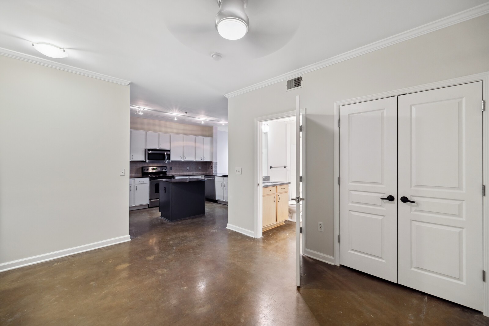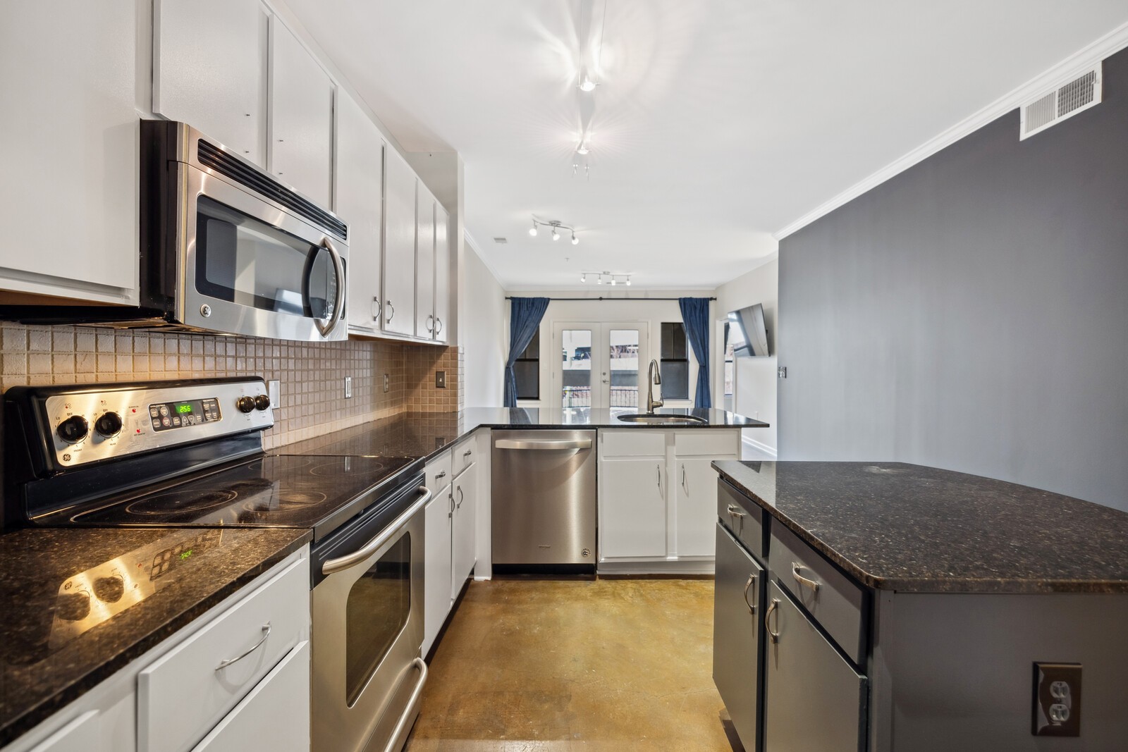 Enjoy the best of Nashville’s city living at The Bristol on Broadway. The beautiful condo features two bedrooms and two bathrooms with two garage parking spaces. The open-concept kitchen boasts tons of natural light, freshly painted cabinets, and open access to the living room for seamless entertaining. Poured concrete floors throughout the unit. Enjoy a comfortable living room that opens to the patio where you can unwind to the sounds of music city while looking out on Broadway. The large enclosed primary bedroom offers a tranquil oasis with an en-suite bathroom, and upgraded walk-in closet! The building and garage are secured with keypad entry and community amenities including a large fitness room, courtyard, and rooftop deck.