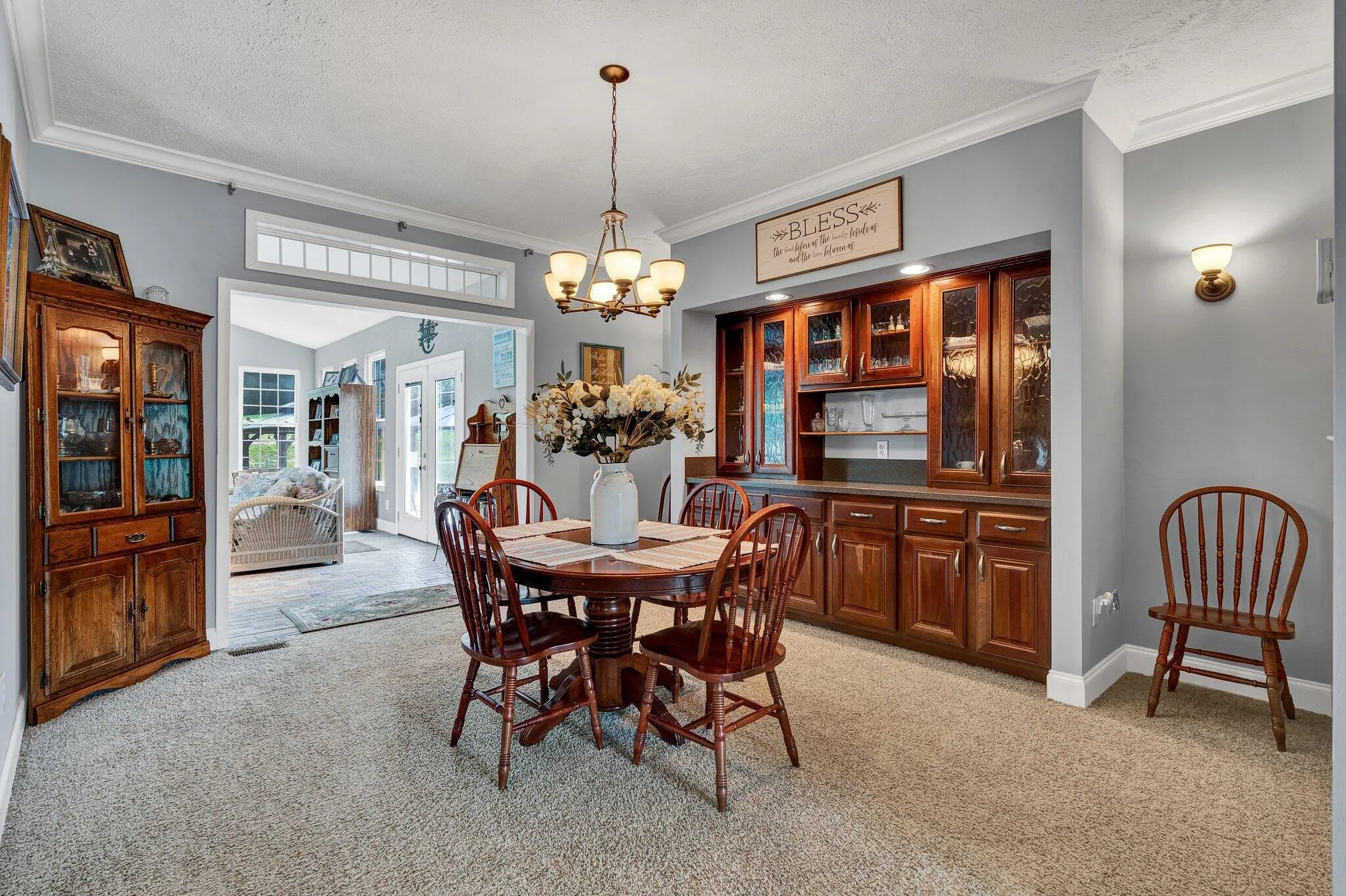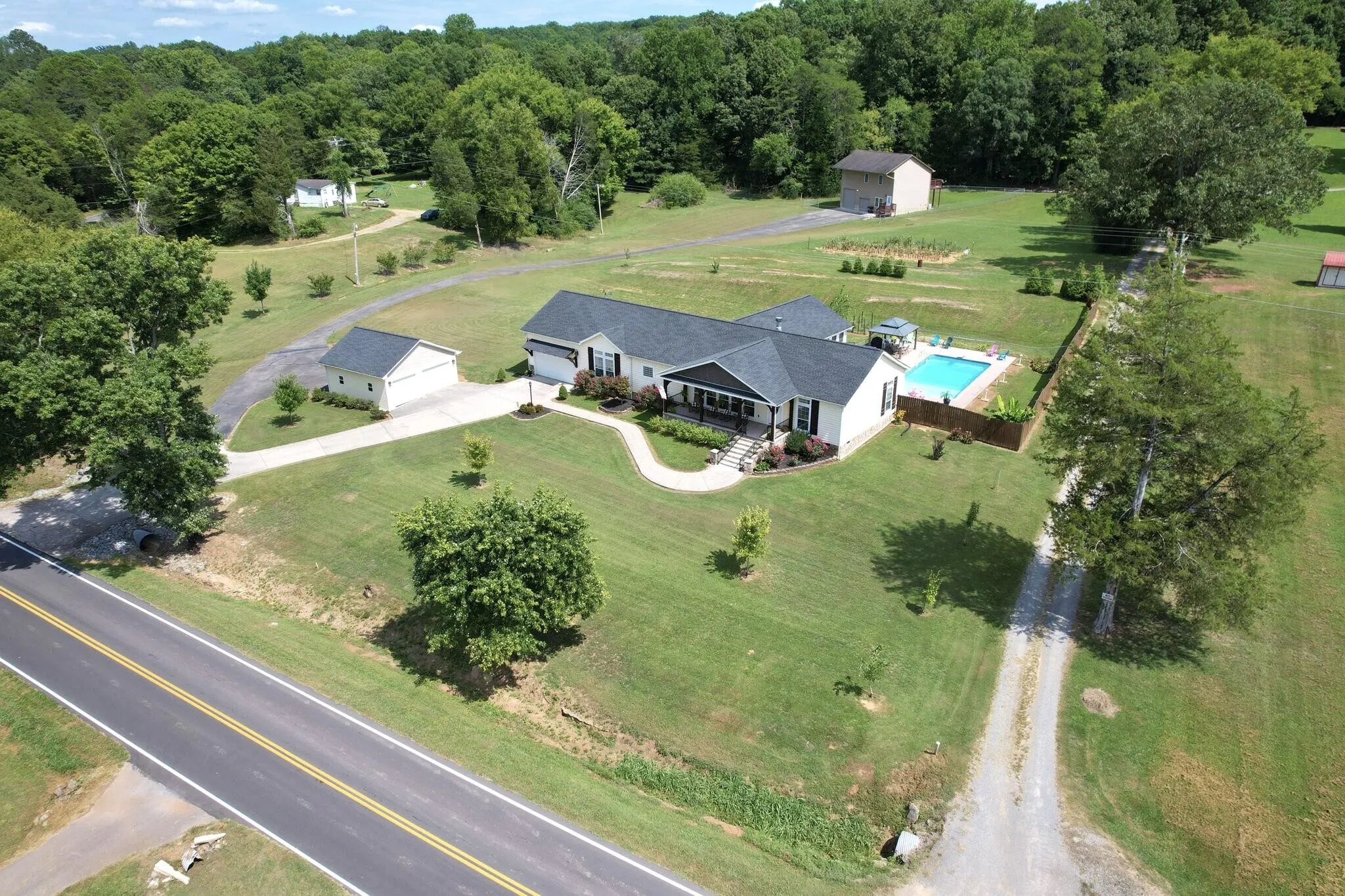 ***Multigenerational, family compound opportunity – additional home + acreage available to be purchased with this property. Info provided upon request*** Welcome to this LUXURIOUS modular home located in a tranquil country setting, yet conveniently close to schools, restaurants, and shopping. As you step inside, you’ll be captivated by the airy high ceilings and expansive windows that fill the home with natural light. The timeless wood-burning fireplace serves as a focal point in the living area, while the thoughtful layout offers both privacy and convenience, making it ideal for families and those who love to entertain. It features functional built-ins and ample storage throughout, ensuring every corner of the home is as practical as it is stunning. Sophisticated lighting and crown molding add a touch of elegance to every room, while the kitchen boasts quartz countertops & a coffered ceiling that elevates its charm. The massive sunroom provides a serene space to relax and unwind with easy access to the SALTWATER POOL, perfect for hosting summer gatherings. The outdoor area is complemented by a charming gazebo, a level yard with ample space for gardening, and a partially fenced perimeter for added privacy. Additionally, you’ll enjoy three garage spaces and a private, paved driveway with extra parking. With a new roof installed in 2020, this home offers peace of mind and modern comfort. You’ll enjoy 1acre+- subject to final survey. Don’t miss the opportunity to make this exquisite property your forever home! Information is deemed reliable but not guaranteed. Buyer/buyer’s agent to verify all information. Agents please review private remarks.