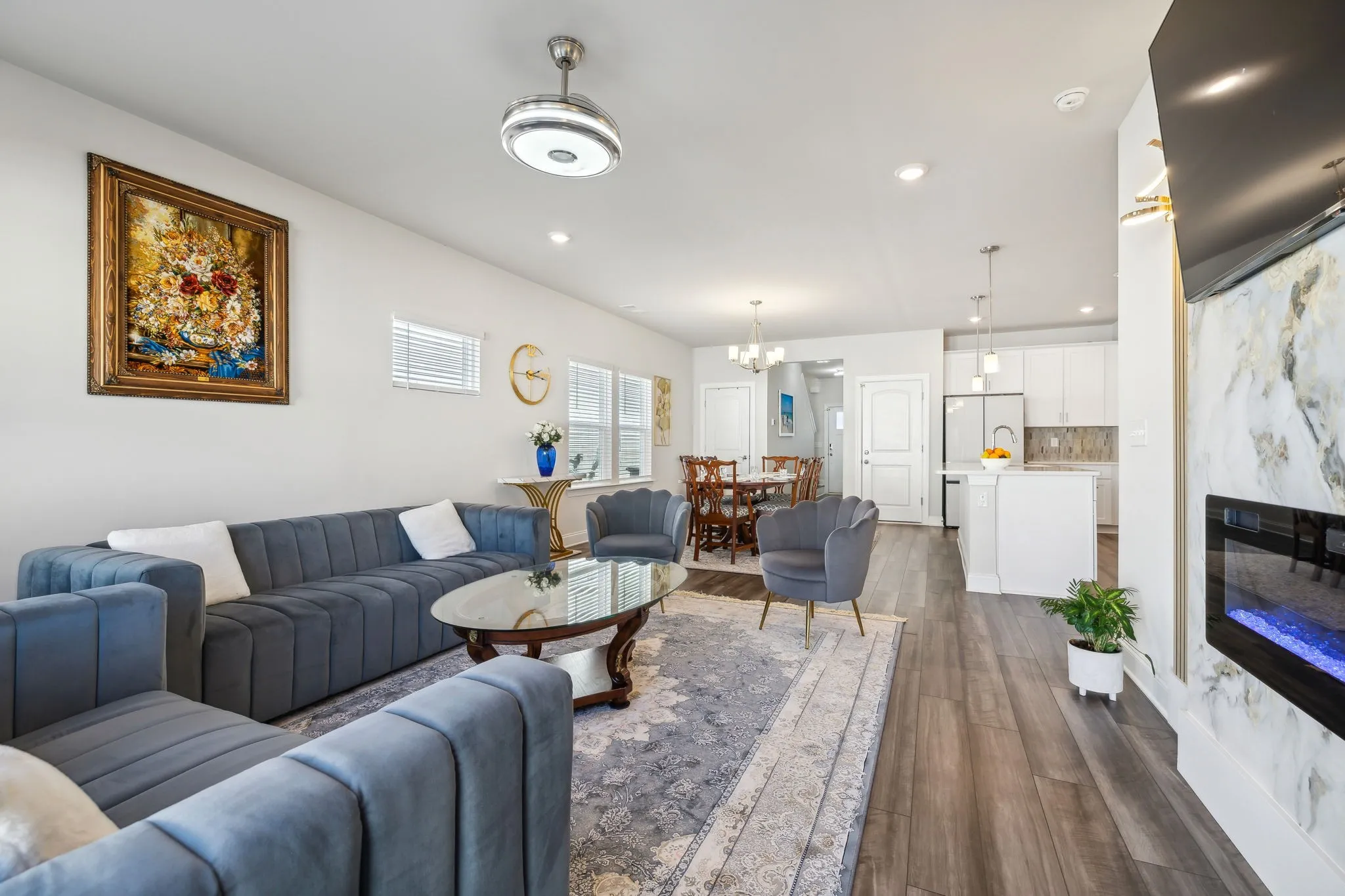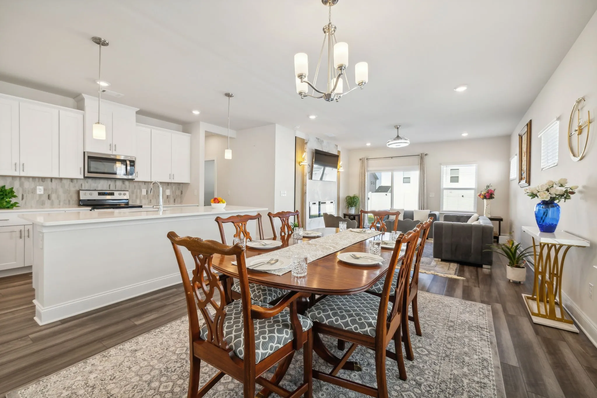 Better than new! This 2022-built, energy efficient home boasts 5 bedrooms and 3 full baths with a thoughtfully designed living space. The open floor plan on the main level features the kitchen with a large quartz island and generous pantry. The dining area is spacious enough for your large table. The living room features a custom accent wall with electric fireplace, and access to the fenced in backyard! A bedroom and full bath complete the main level. Upstairs you will find an open den along with 4 more bedrooms (including the primary), 2 full baths, and a laundry room. The primary bath features a large tile and glass shower, double vanities, separate water closet, and walk-in closet. The home has many upgrades including privacy fence, interior and exterior lighting fixtures, wood treads on stairway, shelving in garage, and installing the electric fireplace in the living room. Convenient location close to downtown, Briley Parkway, and I-65.