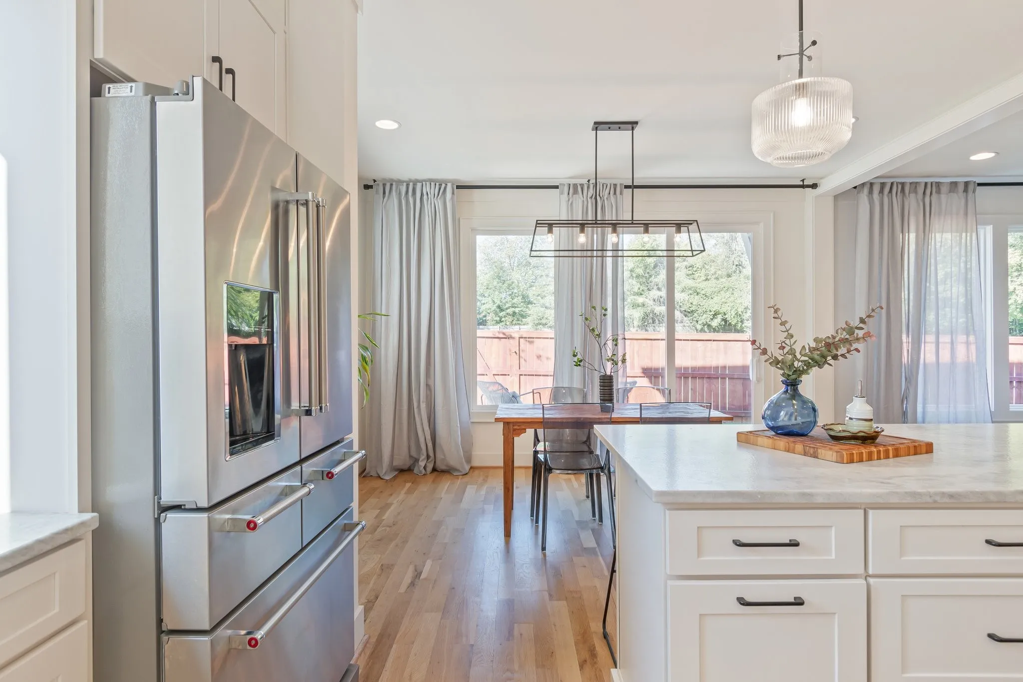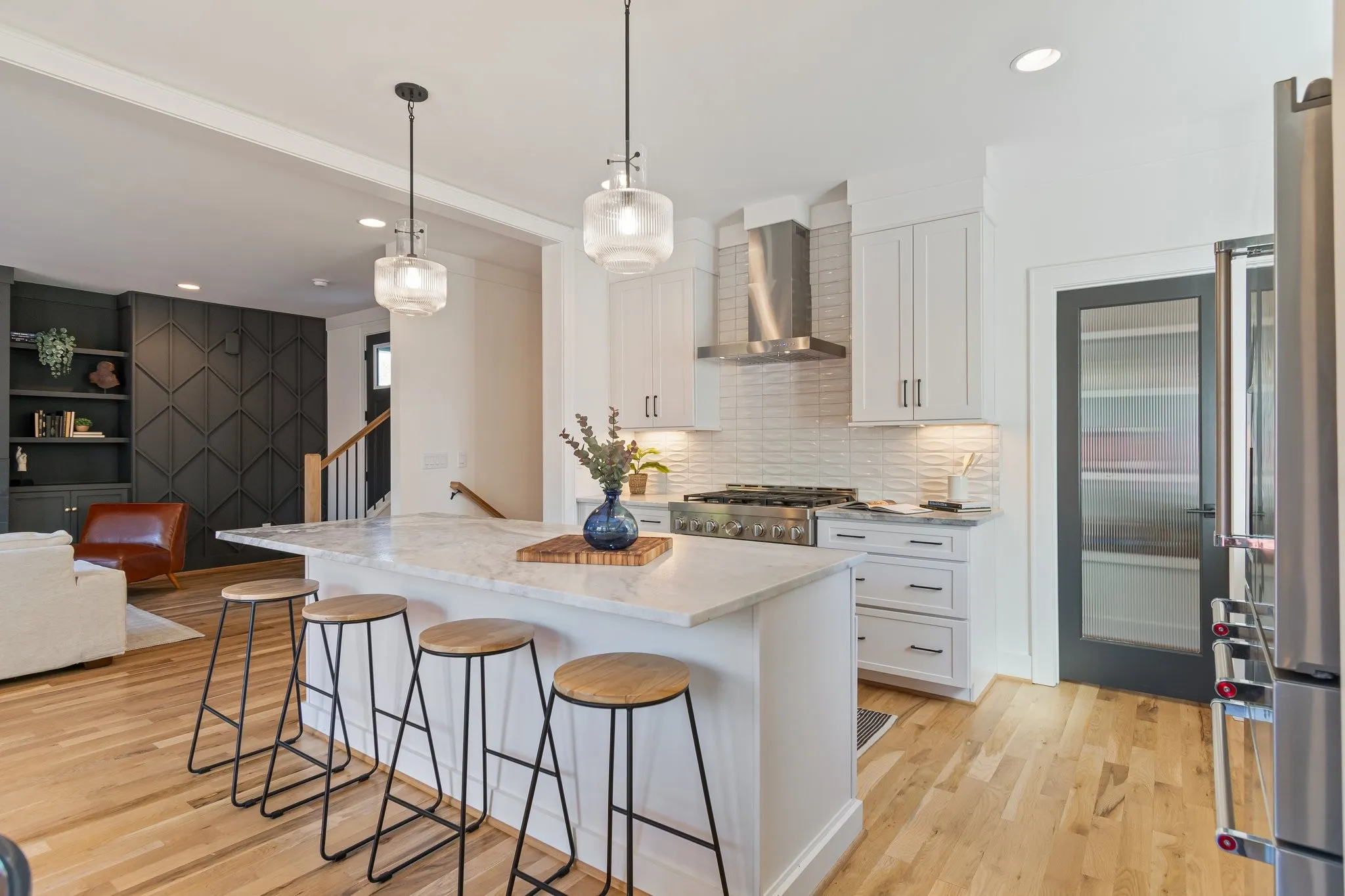 This beautiful custom home by one of Nashville’s best urban builders could now be yours! Only one year old, the main floor features a gas fireplace, custom built-ins, a gourmet kitchen and walk-in pantry. It is surrounded by windows and flooded with natural light, while still maintaining plenty of privacy. The dining area opens onto a large patio in the private, fenced backyard that features no-maintence turf. White oak hardwoods continue upstairs and into all the bedrooms. As you enter the primary bedroom, it’s evident this space was designed as the ultimate retreat: vaulted ceilings, transom windows, extra large walk-in closet with solid shelving, spa shower, and custom tile and fixtures. The third floor den and deck provide the perfect space to entertain or relax with family including a wet bar for all the snacks. The deck offers fantastic views of Nashville & a gas line for your grill! Check out the attachment for all features/upgrades!