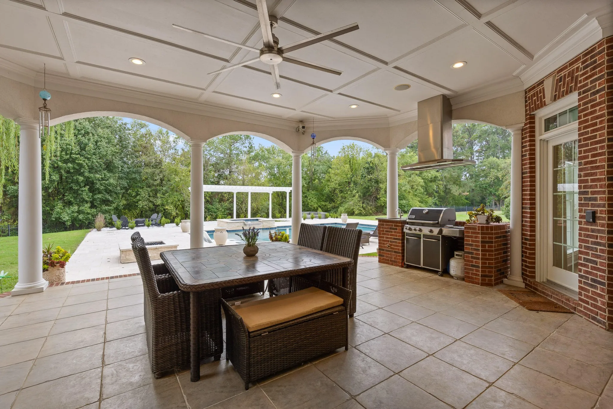 Welcome to 1263 Enclave Road, located in the desirable community – The Enclave at Riverview. This stunning 5-bedroom Luxury Estate is the epitome of elegance and comfort, offering an unparalleled living experience. Nestled on a sprawling 1.42-acre corner lot, this property is designed for those who appreciate the finer things in life. As you approach the home, you will be greeted by a beautifully landscaped front yard and a grand entrance that sets the tone for what lies within. The spacious 4-car garage provides ample space for your vehicles and storage needs, ensuring convenience and security. Step inside to discover a meticulously crafted interior that boasts high-end finishes and thoughtful details throughout. The expansive living areas are perfect for entertaining guests or enjoying quality time with family. Elegant 2 story foyer with marble floors. Open floor plan features separate dining room, family room, separate sitting room (living room), custom butler’s pantry. The gourmet kitchen is a chef’s delight, featuring top-of-the-line Thermador appliances, Quartzite countertops, refinished cabinetry, new tiled backsplash, and a large island that doubles as a breakfast bar. The master suite is a private oasis, complete with an oversized luxurious bathroom featuring new countertops, mirrors and lighting, as well as and a walk-in his/her closet. The main level includes an additional bedroom with full bathroom for family or guests. Upstairs features three additional generously-sized bedrooms, each offering large walk-in closets. Fill your popcorn buckets and enjoy Family Movie Nights in your very own the home theater! The outdoor space is truly a highlight of this property. The in-ground heated swimming pool invites you to relax and unwind, while the surrounding patio area is ideal for hosting summer gatherings or simply soaking up the sun. The expansive lot provides endless opportunities for outdoor activities.