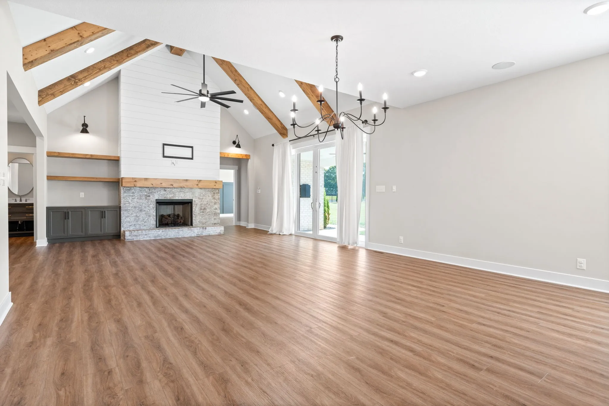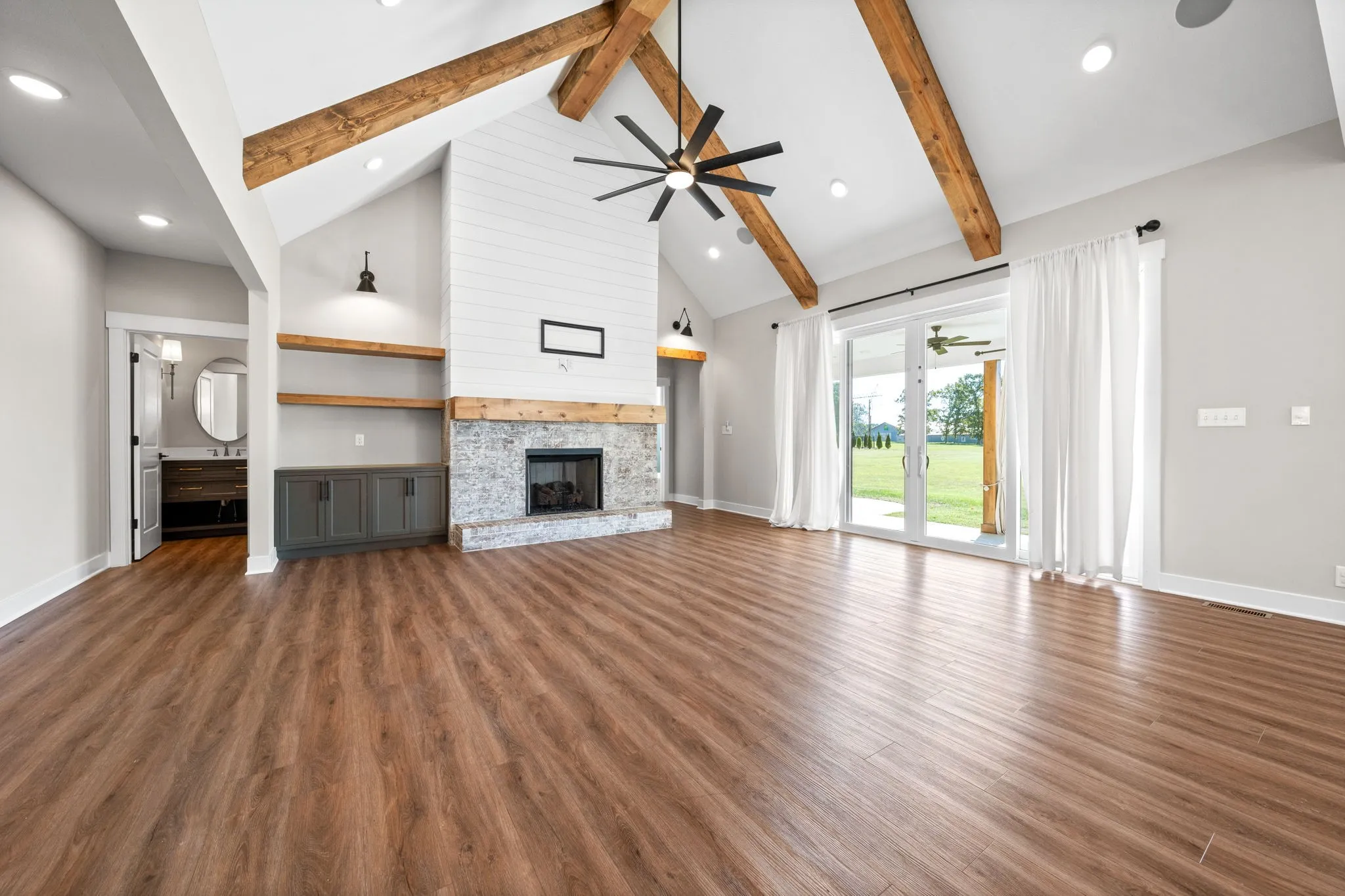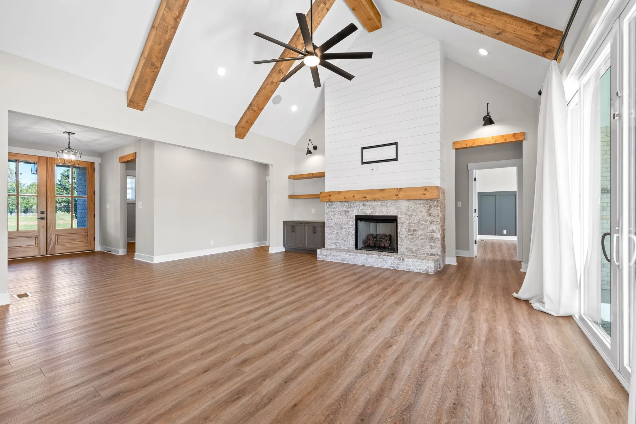WELCOME HOME! This CUSTOM home has been freshly painted, it’s just waiting for you to turn the key. The attention to detail that went into this beauty will WOW you! Gorgeous built ins and rustic ceiling beams will draw your eyes immediately to the grandest of living rooms. Can you see yourself sitting around that fireplace this upcoming holiday season? Soak in every detail, & take a peek at the one of a kind lighting in the powder room. The WIDE open kitchen & dining area is sure to impress any entertainer. The custom cabinetry, tile work, plantation shutters, oversized island & large pantry compose the kitchen of your dreams. The primary bed & bath will ignite a feeling of peace. The custom closet will leave you speechless. Head upstairs where you’ll find a bonus room made to be a theater! It’s wired for sound, & did I mention. so is the entire home including the back patio? Enjoy your favorite music while soaking up the cool fall evenings. If you want it, this home has it!