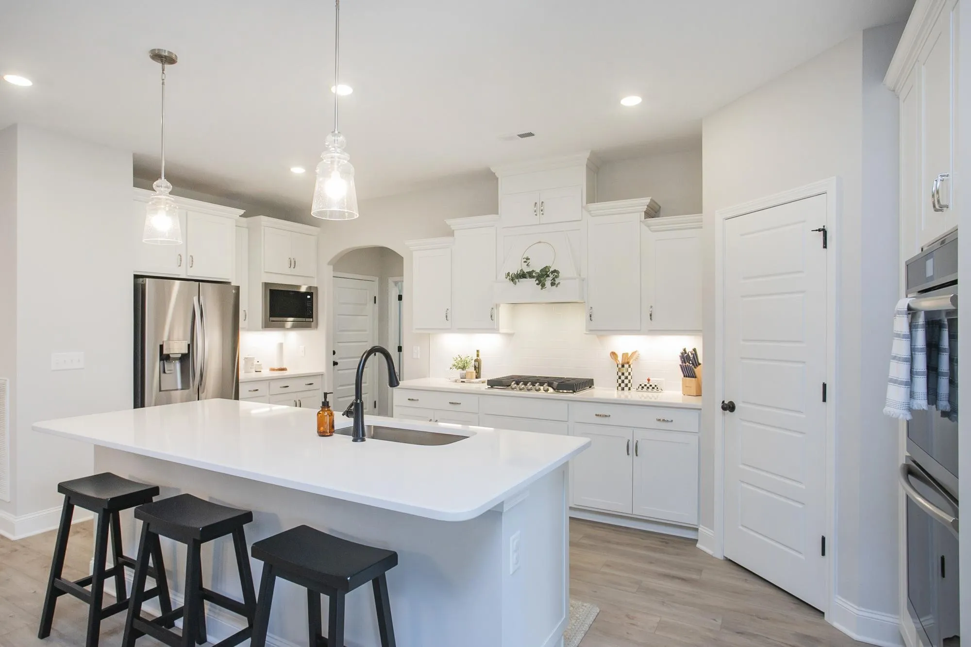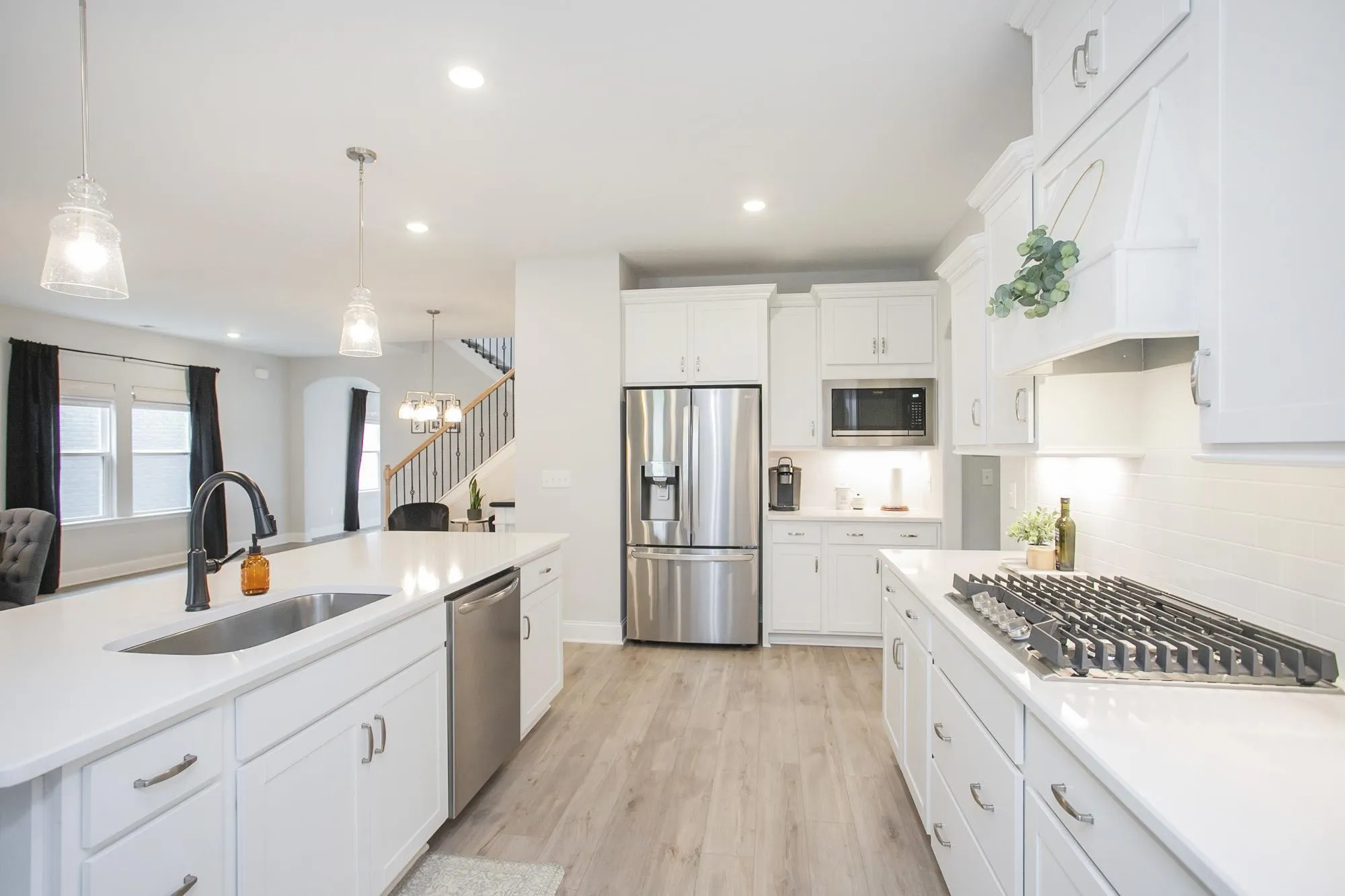 Practically perfect in every way! This like-new Jefferson plan includes the primary and an additional bedroom (or office) downstairs, a lovely open floor plan with a gas fireplace, gourmet kitchen with double oven and six-burner cooktop, multiple options for dining space, and seamless access to the back covered patio and fenced yard. The primary bedroom includes an en-suite bathroom with tile shower, separate soaking tub, double vanities, and oversized walk-in closet. The utility room, just by the garage entrance, is the most convenient spot for keeping all the family laundry under control! Upstairs features two bedrooms, a full bathroom, and large bonus room with access to walk-in attic storage. Storage abounds! This floorplan is hard to beat! The resort-style community amenities in Waters Edge include: pool, playground, fitness center, and greenway that follows the Harpeth – stunning! Easy proximity to I-65 & to Franklin’s new Southeast Municipal Park. Don’t miss this fantastic home!
