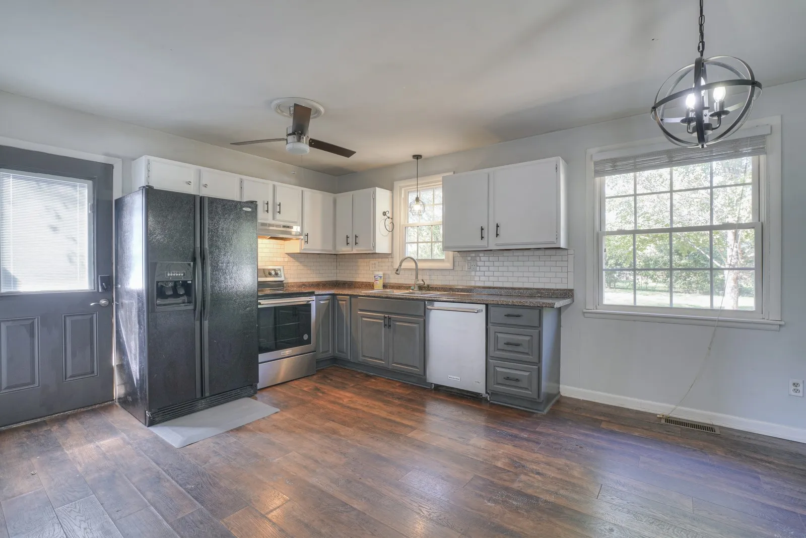Welcome home. This renovated brick ranch home features beautiful hardwood laminate flooring, Bright eat in kitchen with backsplash, new stove, newer dishwasher, refrigerator remain. New lighting and paint make this home ready to move in. The entire wooded backyard is fenced in. Storage building remains. Home has central heat and air. Insulated vinyl windows. Seller will pay $6,600.00 in buyers closing cost. Professional photos Monday.