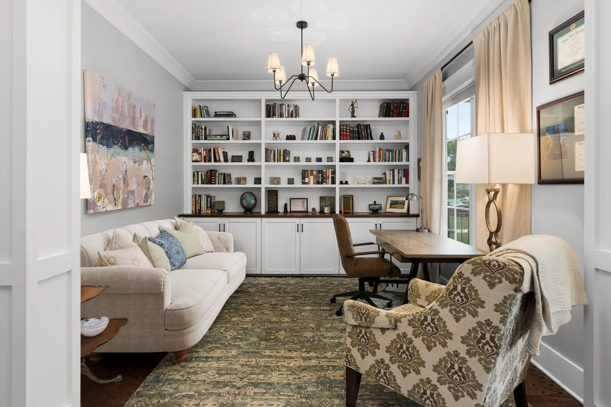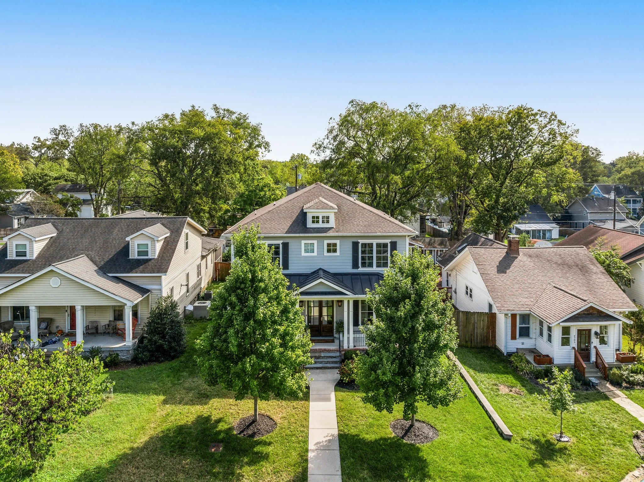 This stunning craftsman home in coveted Sylvan Park is just minutes from downtown Nashville, and perfectly situated to fine dining, McCabe Park and Golf Course, and shopping. Step through the grand entrance and the perfect blend of modern comforts melded with subtle vintage aesthetics is on full display in the versatile living spaces, all illuminated by natural light rushing in through oversized windows with custom shades. The luxury kitchen boasts quartz countertops, double ovens, and ceiling-high cabinets with glass displays for ample storage. Outdoors, relax in the evenings on an oversized screened-in porch overlooking the curated landscapes with a fenced-in private yard. The 3-car garage features a finished DADU (note this offers an additional 565 sq ft more than the advertised main-house square footage) with exterior stairs High-end finishes include custom built-in bookshelves, custom trim throughout, Stair Tread lighting, reading lights in the primary suite, epoxy garage floors, irrigation system, and fresh landscaping.