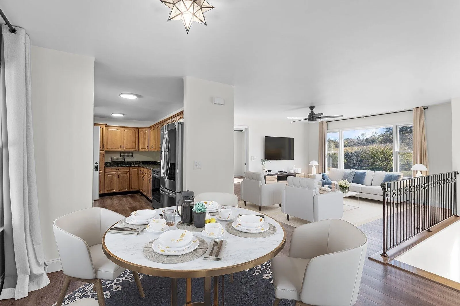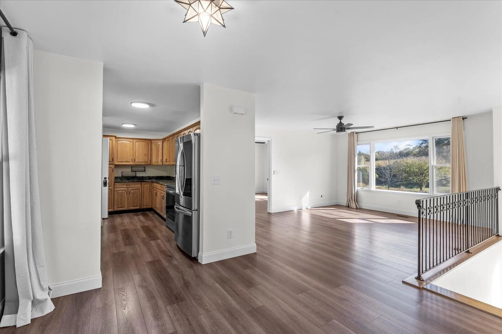 +"PublicRemarks": "Welcome to this serene 3-bedroom, 2-bathroom home nestled on a sprawling 4-acre lot, offering the perfect blend of tranquility and convenience. The entire main floor has been FULLY REMODELED, featuring a stunning modern kitchen with updated appliances, along with newly renovated bathrooms that add a touch of luxury to your daily routine. The home also includes a finished basement, ideal for a home office, or a recreation area, ensuring ample room for all your needs. An attached one-car garage adds convenience, while the detached three-car workshop provides plenty of space for projects or extra storage. Step outside and embrace the beauty of nature from the spacious back porch, where you can relax and watch deer meander through your property. The land also features a small, spring-fed creek towards the back, enhancing the natural charm of the setting. Whether you're looking to enjoy quiet country living or entertain guests in the peaceful outdoors, this property offers endless possibilities. The storage shed conveys with the home, adding more space for tools or equipment, and the entire property is equipped with an upgraded whole-home air filtration system for optimal comfort. Though this home offers a peaceful escape, it's conveniently located just 20 minutes from Cleveland, where you'll have access to groceries, shopping, and other amenities. If you're looking for a perfect blend of rural tranquility and modern comfort, this property is a must-see!"