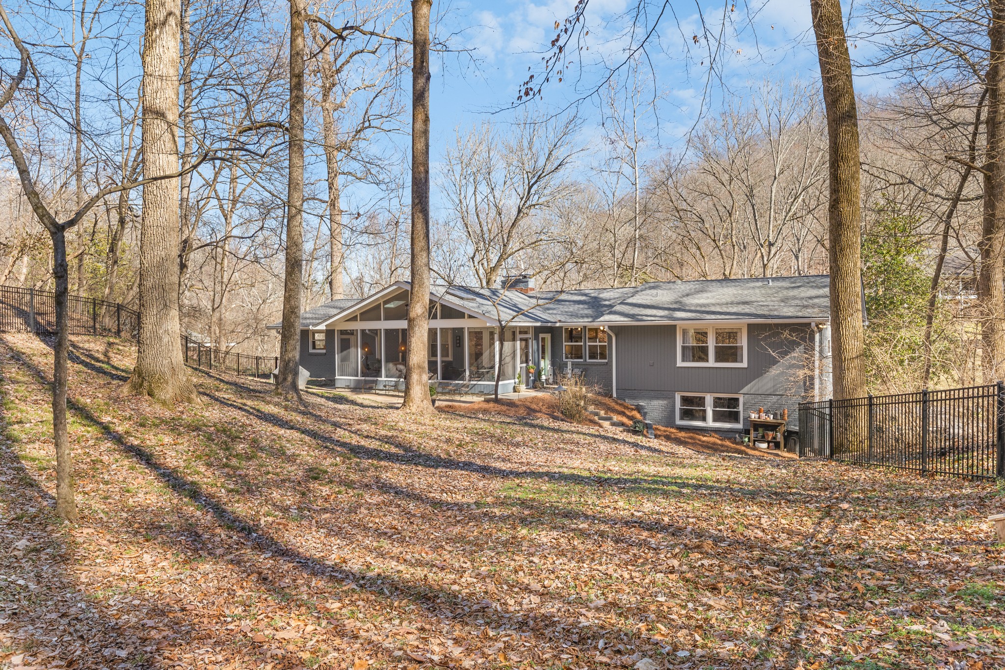 Thoughtfully updated mid-century brick on nearly 3 serene acres of a nature-lovers arboretum. Tucked away in one of the quietest corners of the rolling hills of West Meade, all you hear are the songbirds, yet you are minutes from every convenience you need. Updates throughout so you can spend time living rather than working. Geothermal HVAC, updated kitchen, updated bathrooms, newer roof, new light fixtures & door knobs, & whole-house water filter. Front porch & spacious screened back porch allow you to enjoy the outdoors. Many large windows allow loads of natural light to flow in under the canopy of majestic hardwoods. Fenced back yard, updated landscaping, more storage than you could dream of. 2-car garage, large workshop, a fun barrel room to kick back & relax, 3 living spaces, private office & exercise area, sitting room, lower level rec room, 3 fireplaces (originally wood burning, 2 now gas logs), wired speakers, Halo tankless H2O, & more. Short stroll to the West Meade Waterfall.