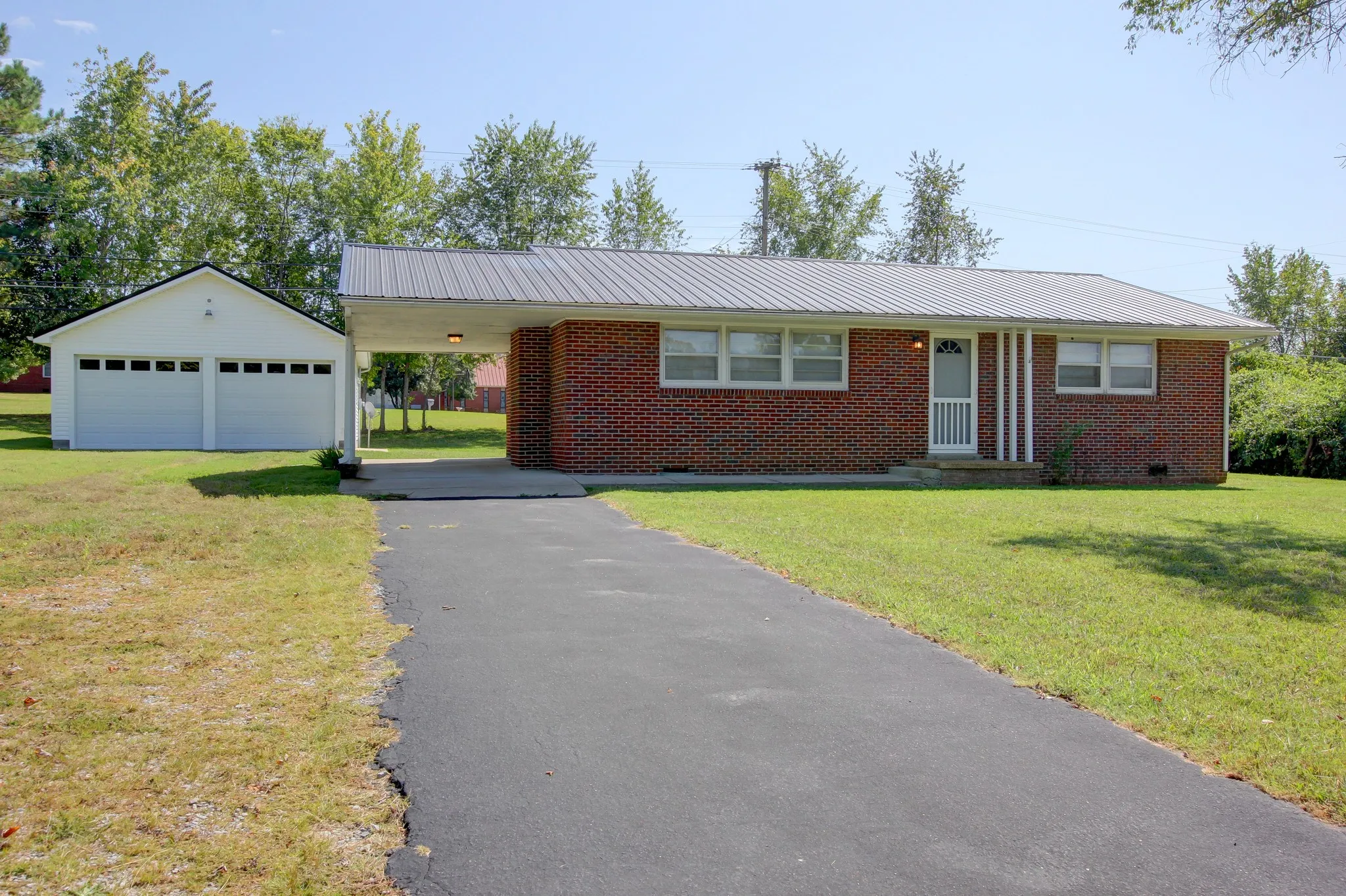 Brick ranch on double lot-hardwood flooring-fireplace-new hvac 2023,metal roof 2022-huge detached 2 car garage with electric opener-come see this today!