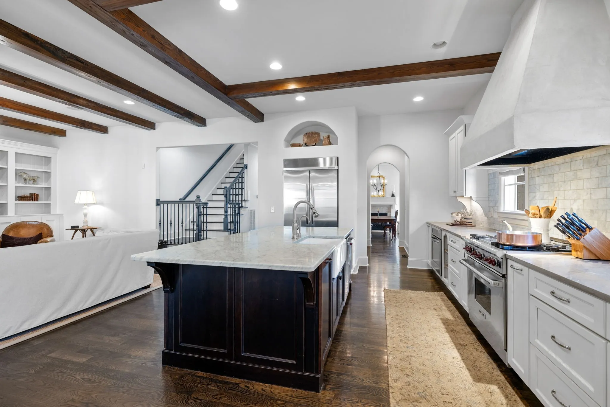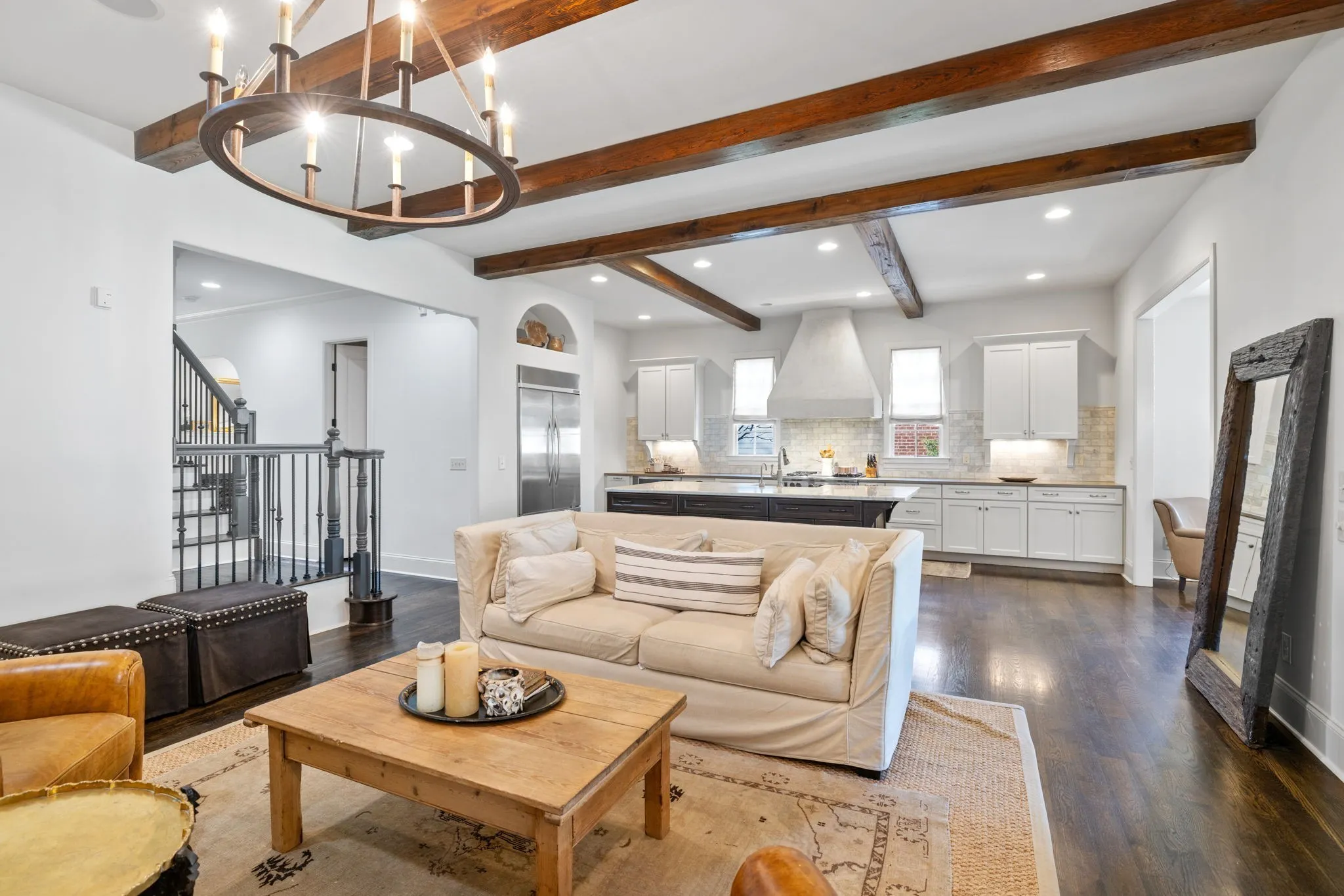 Don’t miss this single-owner home in Downtown Franklin! Nothing compares to living within walking distance of Franklin’s Main Street, where you can enjoy a coffee, see a show, have dinner, shop, and take in everything the local community has to offer. When you’re ready to relax, return to your quiet street, where the attention to detail in the design of this home shows that modern elegance can coexist with character and charm. The open layout of the first floor is accentuated with wood beams, fireplaces, hardwood floors,10-foot ceilings, and exposed brick. Every inch of this property is highlighted by the natural light that comes through the many windows. The heart of the home is a beautiful and functional chef’s kitchen with high-end appliances. Two bonus spaces on the second floor, along with two bedrooms, provide plenty of space for your family and friends. Finally, step outside to the covered back porch and its quintessential blue ceiling. Come see your next home today!