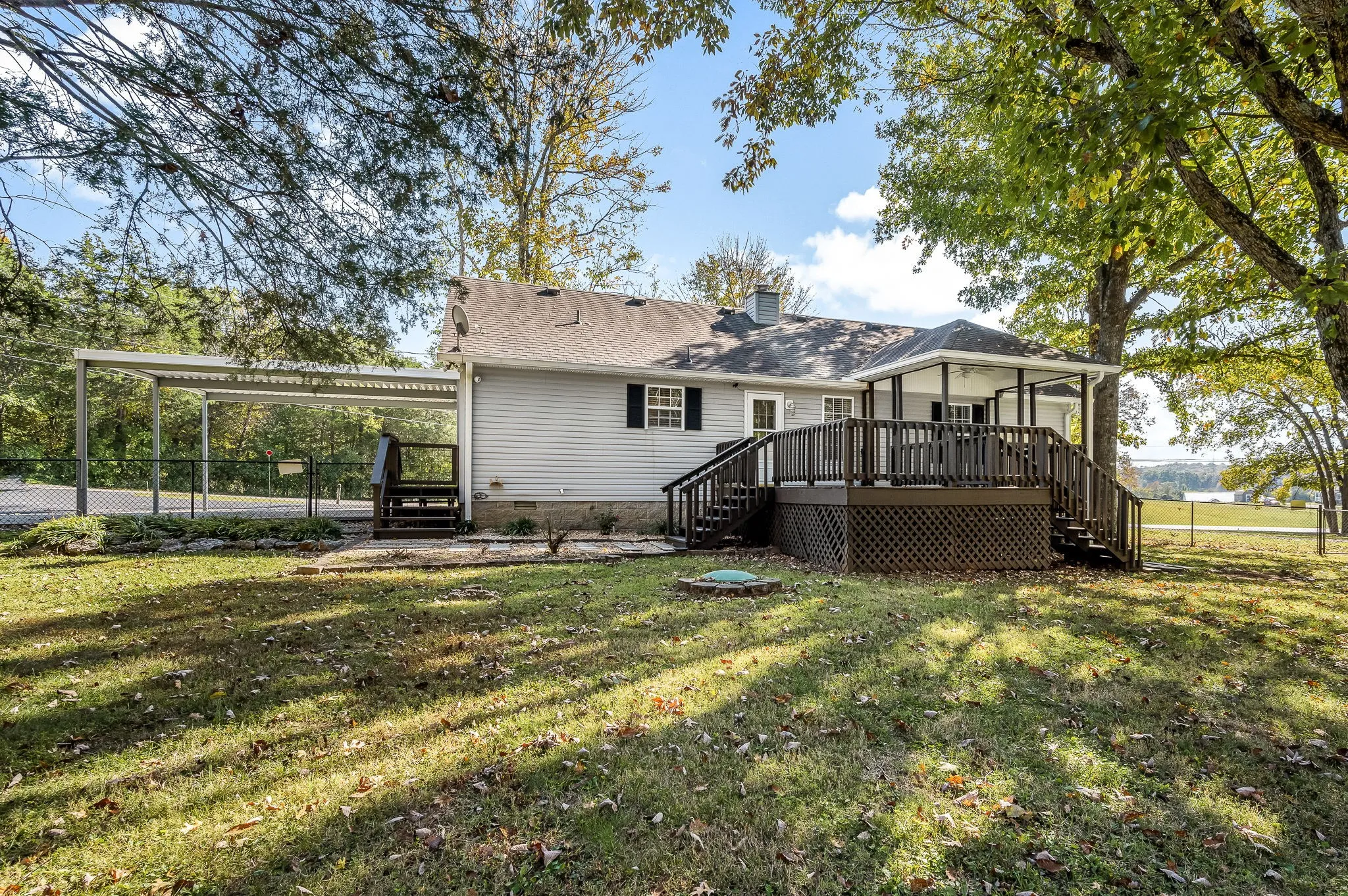 Immaculate 3 BD/2BA, Ranch style home on 1.08 level acres. Loaded w/updates! Located within 5 minutes of boat ramp on Old Hickory Lake! New paint throughout. Living room w/vaulted ceilings & fireplace. Kitchen w/SS appliances, tiled back splash & quartz counters. Primary bedroom w/trey ceiling & single barn door entrance into primary bath. Primary bath boast upgraded tiled shower, vanity, sink, lighting & plumbing fixtures. Back yard setting is amazing w/huge deck, covered outdoor dining area, fenced back yard & gorgeous mature hardwoods. Paved driveway, 2 car detached carport, leaf filtered gutters, storage building w/implement shed & 50 Amp RV hookup w/septic.