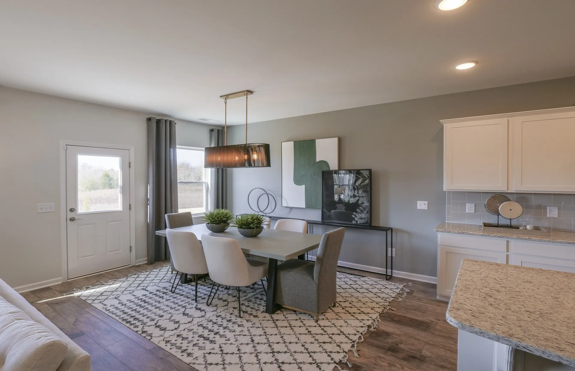Marketed price includes preferred lender credit applied as a discount. The well-appointed exterior provides curb appeal with a contrasting light brick & dark gray Hardie siding. Downstairs Bedroom + Full Bath offers guests/family a private retreat to stay over while the rest of the family can enjoy their separate space upstairs. Second floor includes an open Loft and Laundry Room located away from the rest of the bedrooms. Relax in the large Owner’s Suite, featuring a Tray Ceiling and secluded views of green space. Owner’s Bath is designed with a Separate Tub & Tiled Walk-in Shower & dual vanities with Quartz Countertops. Enjoy grilling and entertaining from your Covered Back Patio overlooking natural green space. This fully upgraded home showcases a modern, white Kitchen, equipped with Soft Close Cabinets with Pull Out Drawers. See Sales Consultant for details.