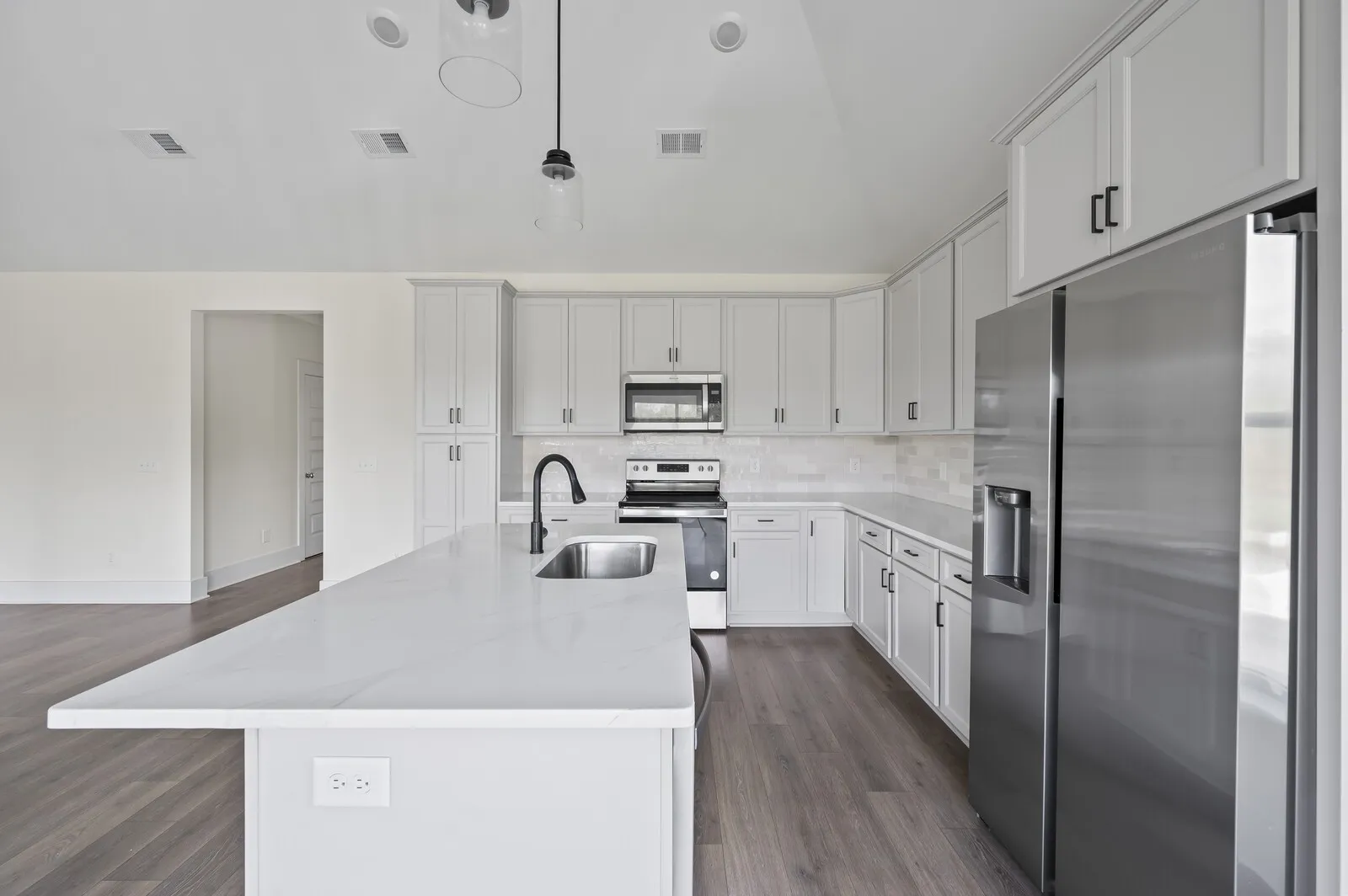 One level living! The Magnolia floor plan features 3 beds & 2 Baths! Granite countertops in kitchen and all baths~ Stainless steel appliances~ 9’ ceilings on main level~ Crown molding on main level & primary bedroom~ Utility closets and pantry~ Large tile master shower~ Camera doorbell~ 20′ driveways ~Within minutes of Nolensville amenities and close to the new $1 Billion dollar development Century Farms featuring Tanger Outlets. Professional pictures coming soon! Move in ready!