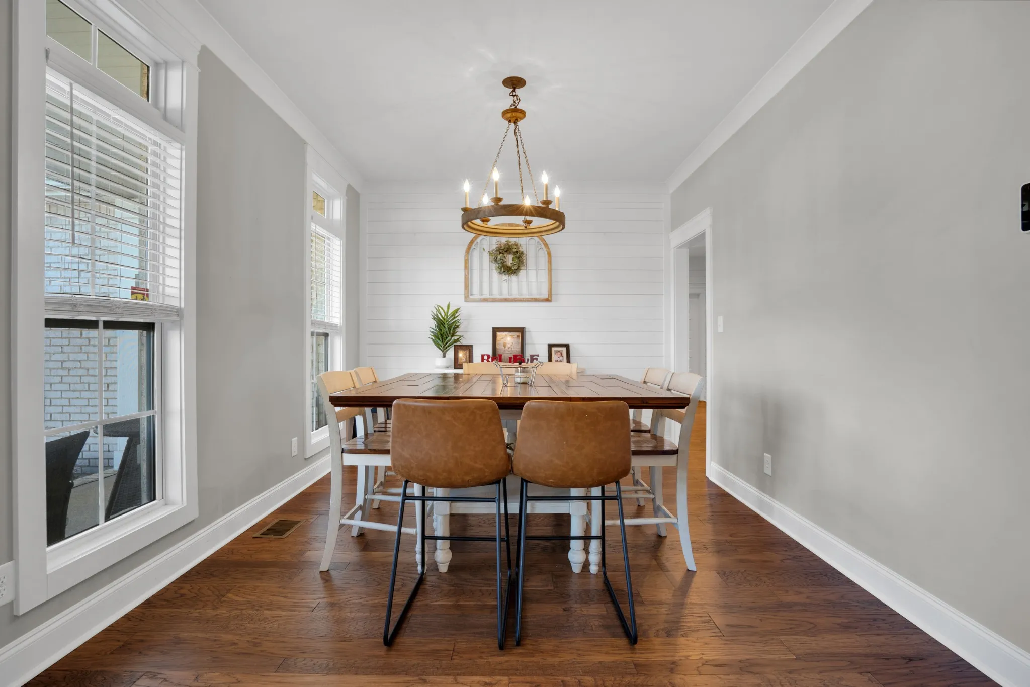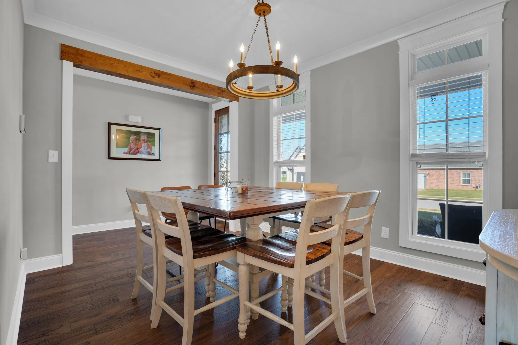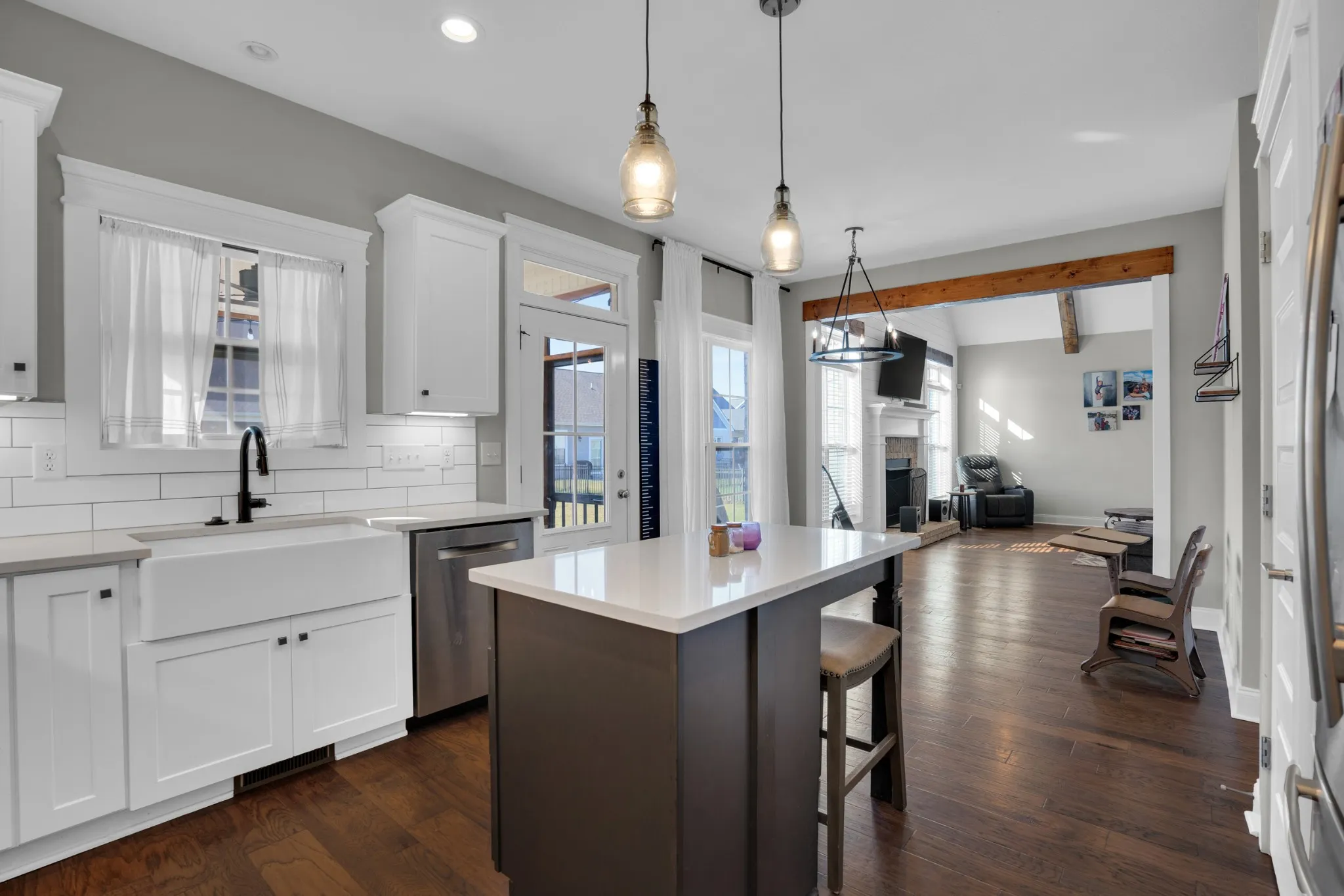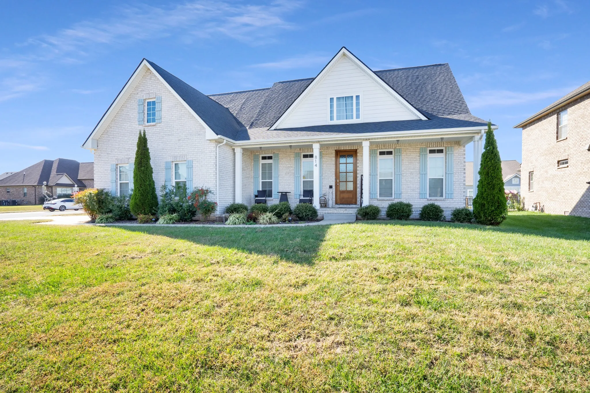 Gorgeous all brick home in the heart of Sango. Beautiful white kitchen open to the living room which boasts exposed wood beams and a fireplace great for entertaining. Primary bedroom on the main floor with free standing tub, tile shower and a walk in closet with wood shelving. All bedrooms have walk in closets. Bonus can be 4th bedroom and is currently used as such. Both Front and back porch covered. Corner lot. Underground utilities.