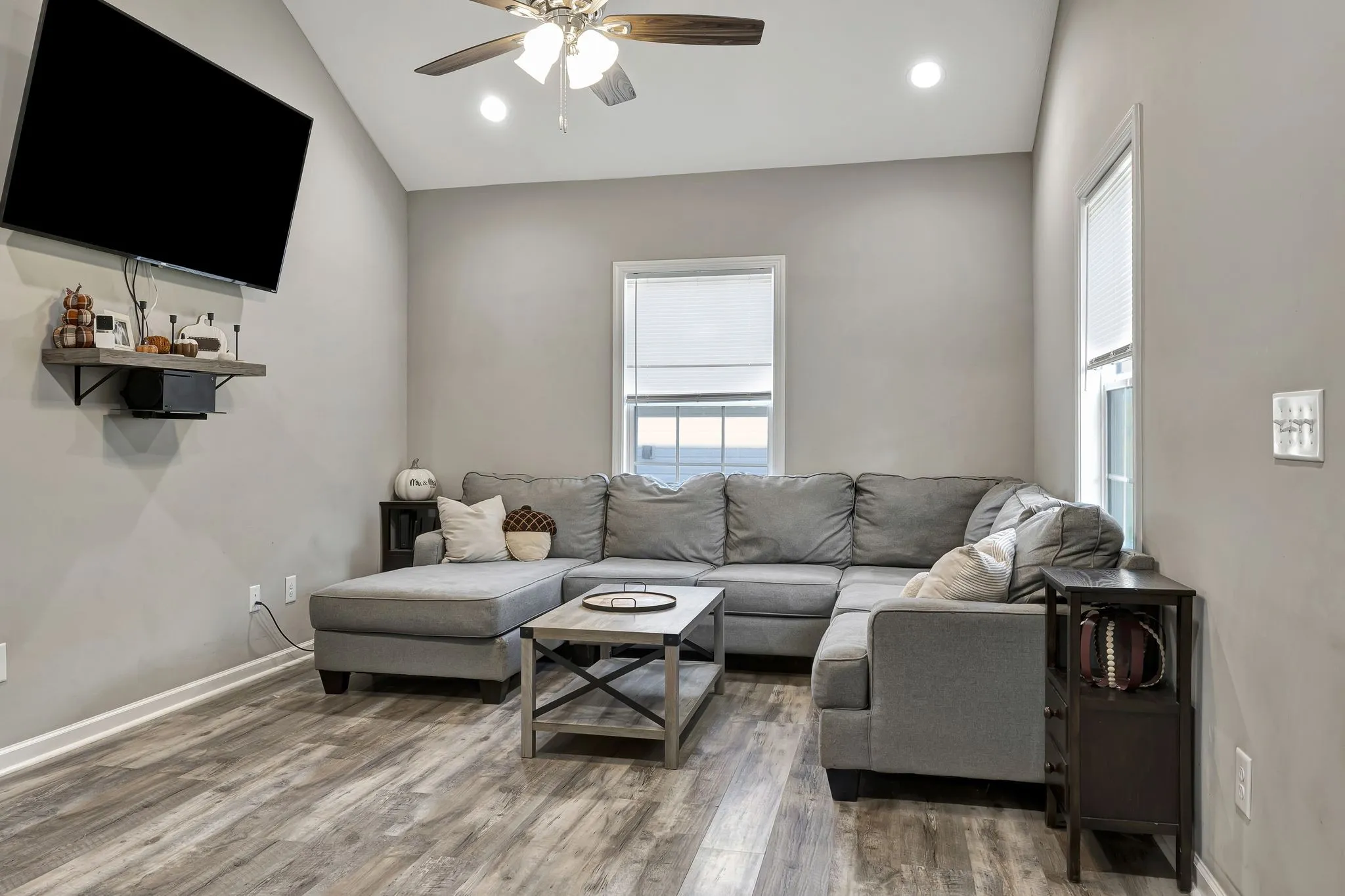 Welcome Home!! Come and see this beautiful, ONE LEVEL, 3 bed 2 bath home. Built in 2021, this home has been beautifully maintained. The open floor plan and vaulted ceiling making entertaining a dream. The cozy kitchen contains stainless steel appliances. Each bedroom provides plenty of space or could be used for an office. The primary suite has a trey ceiling, walk in closet, and full bath. Enjoy mornings sipping coffee on the covered front porch. Evenings can be sent watching the sun go down on the back patio. Property includes the 10×8 outdoor shed as well. 1% lender credit with use of preferred lender, Adam Carney w/FIRST Mortgage (931) 703-8507 – subject to additional conditions and approval.