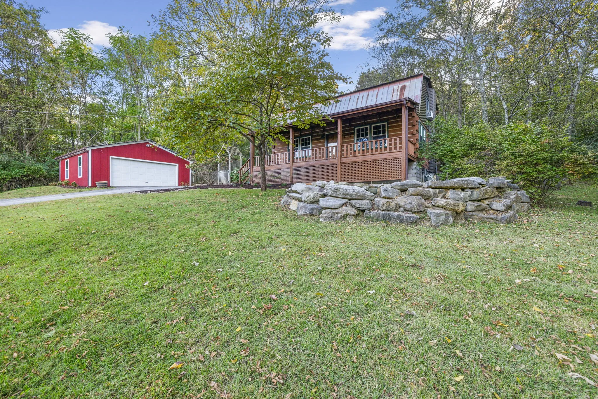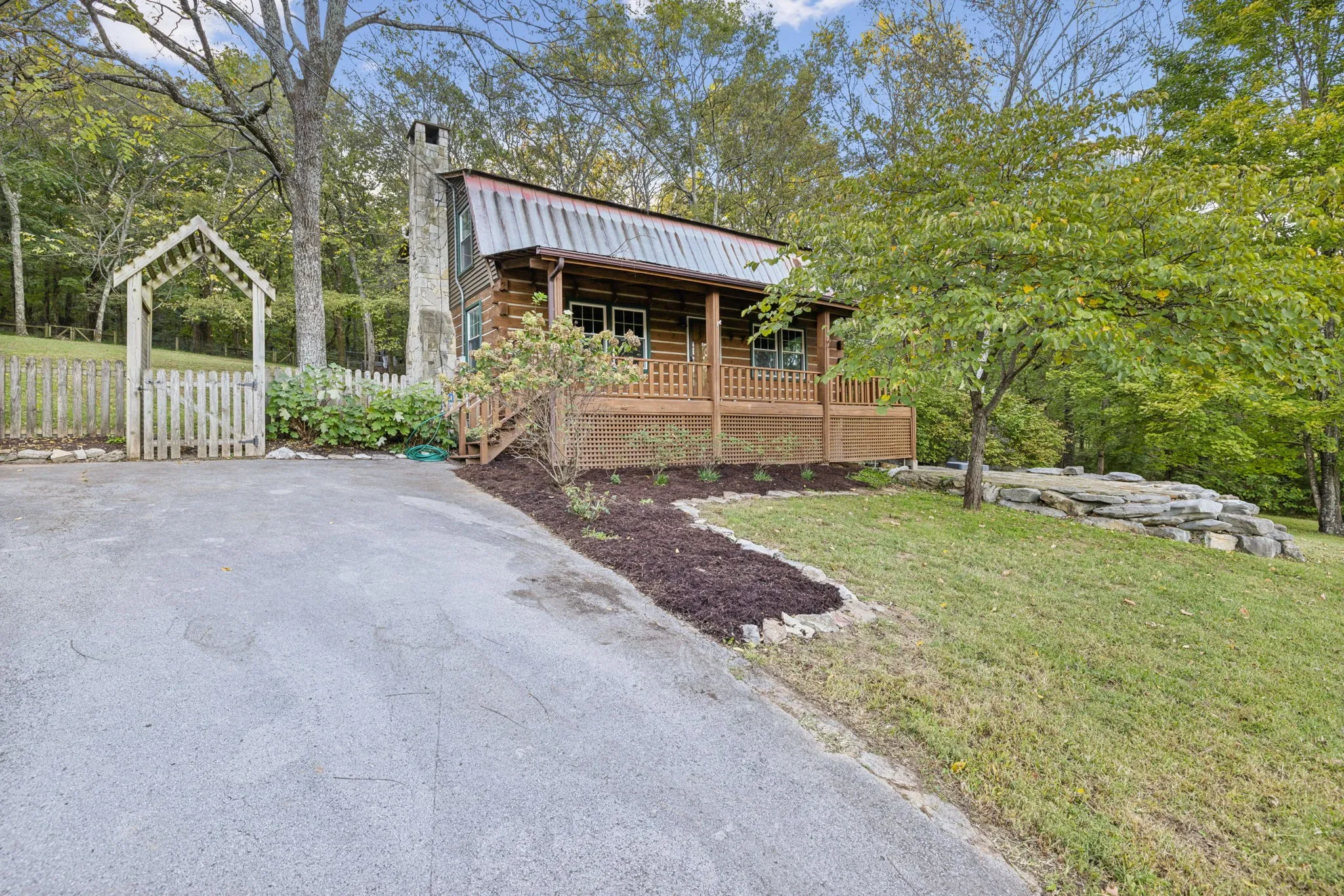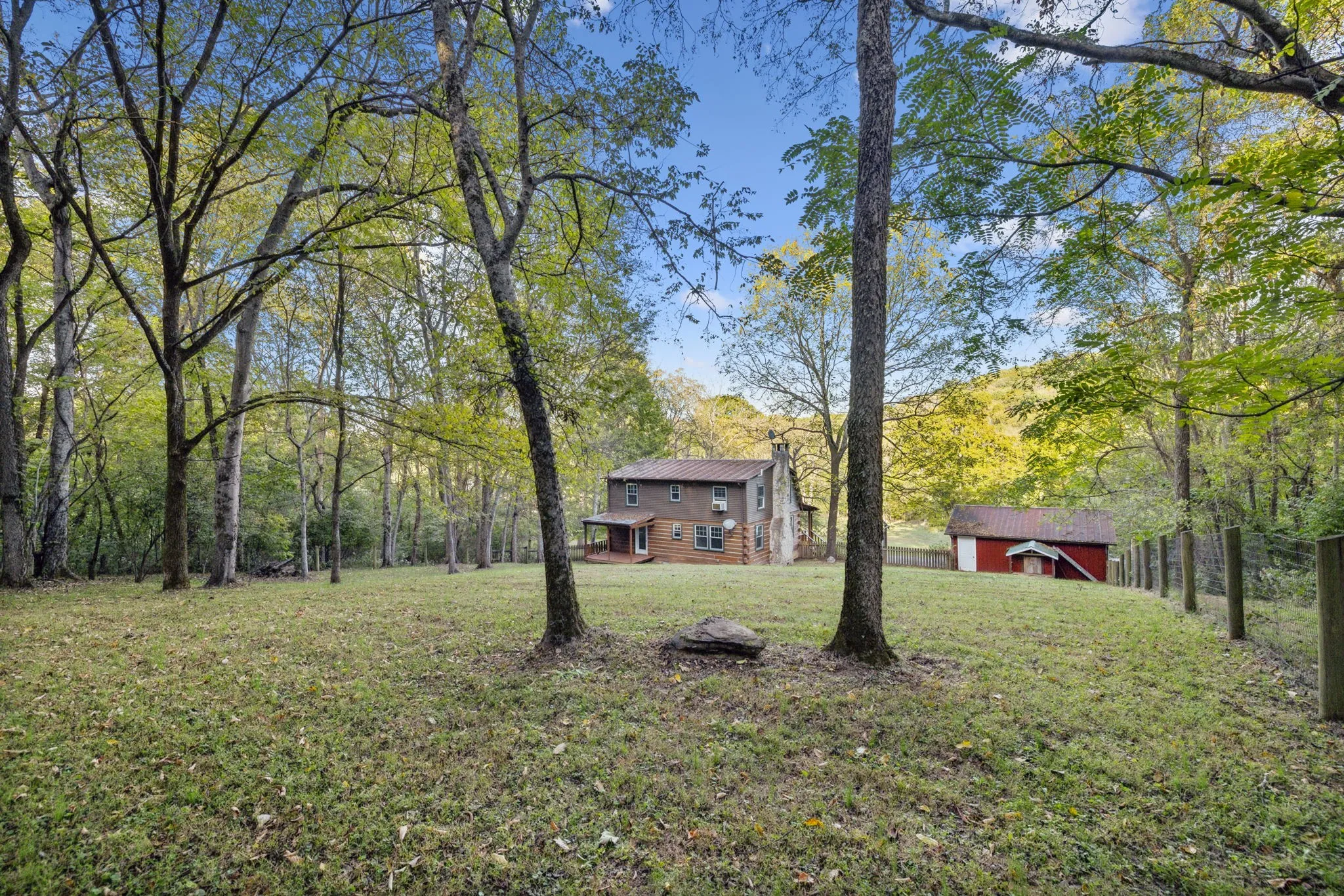 Seize the opportunity to own a charming log cabin retreat on 6.4 acres, just 8 minutes from I-65 and the vibrant Cool Springs shopping area in desirable Franklin, TN. This property is enveloped by abundant wildlife and features hiking trails, making it an ideal location for observing or hunting turkey, deer, and other game. Since its purchase in 2016, fencing has been installed, providing ample space for chickens, goats, and dogs, with a convenient chicken coop attached to the side of the barn. The kitchen has been beautifully remodeled with granite countertops, modern bamboo flooring, and new appliances, with the refrigerator included. The long front balcony provides excellent views and there is also a smaller balcony on the back of the house. There is a large, beautiful stone hardscape patio on the font of the property for entertaining guests or just enjoying morning coffee. This retreat offers a perfect blend of comfort and nature, ready for you to enjoy!