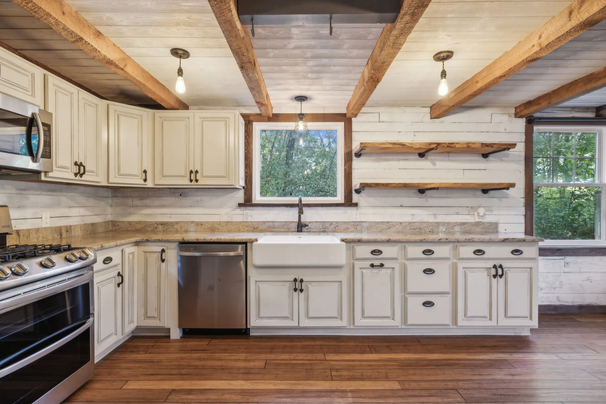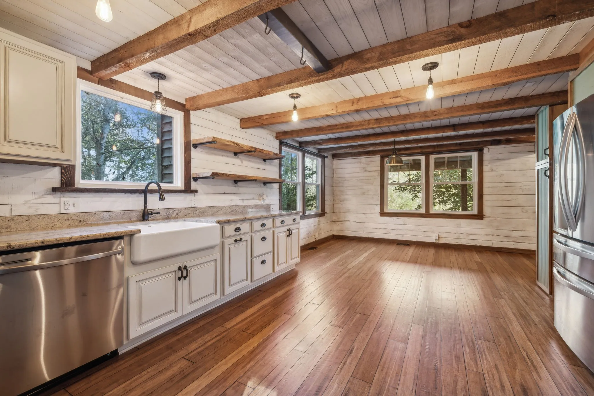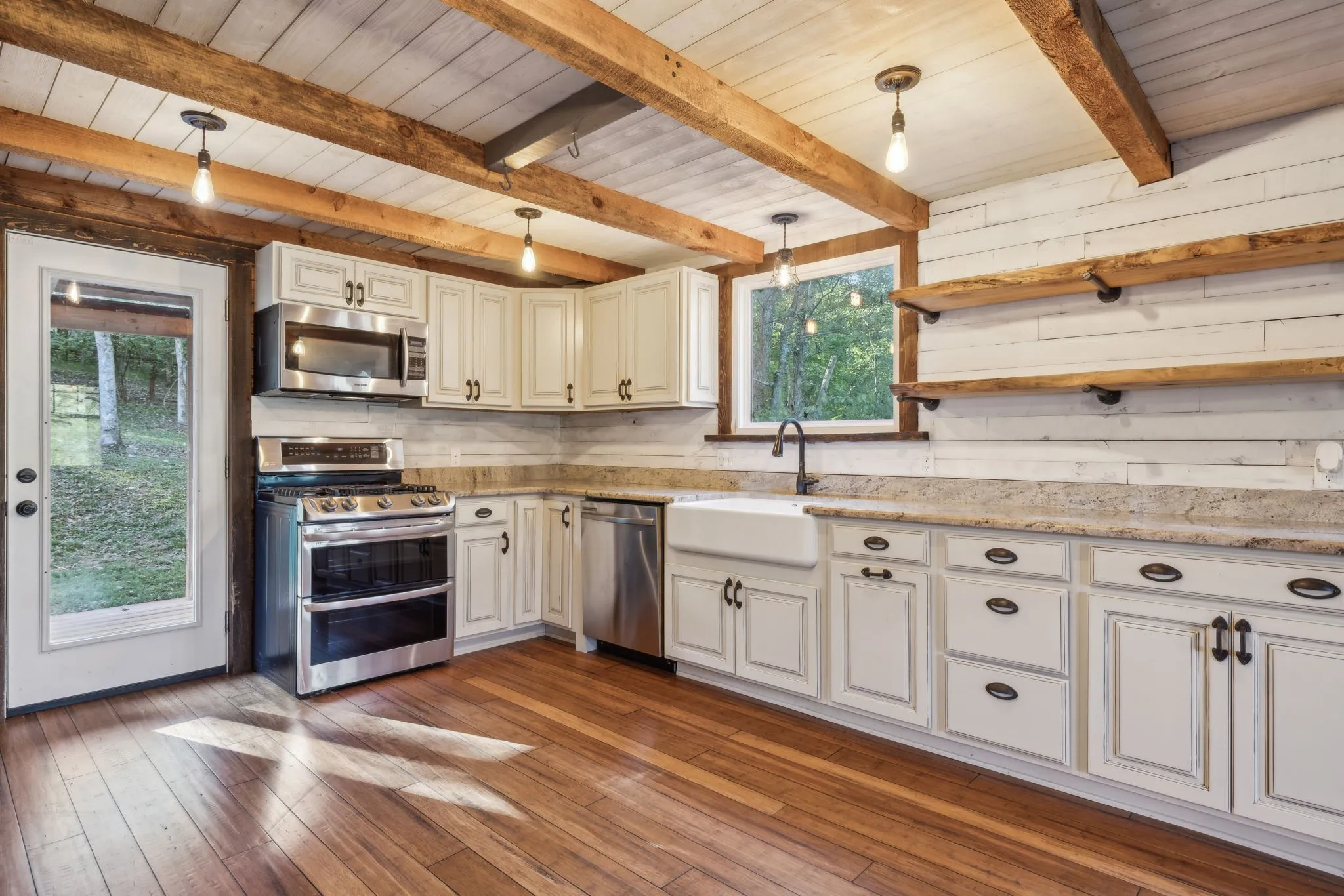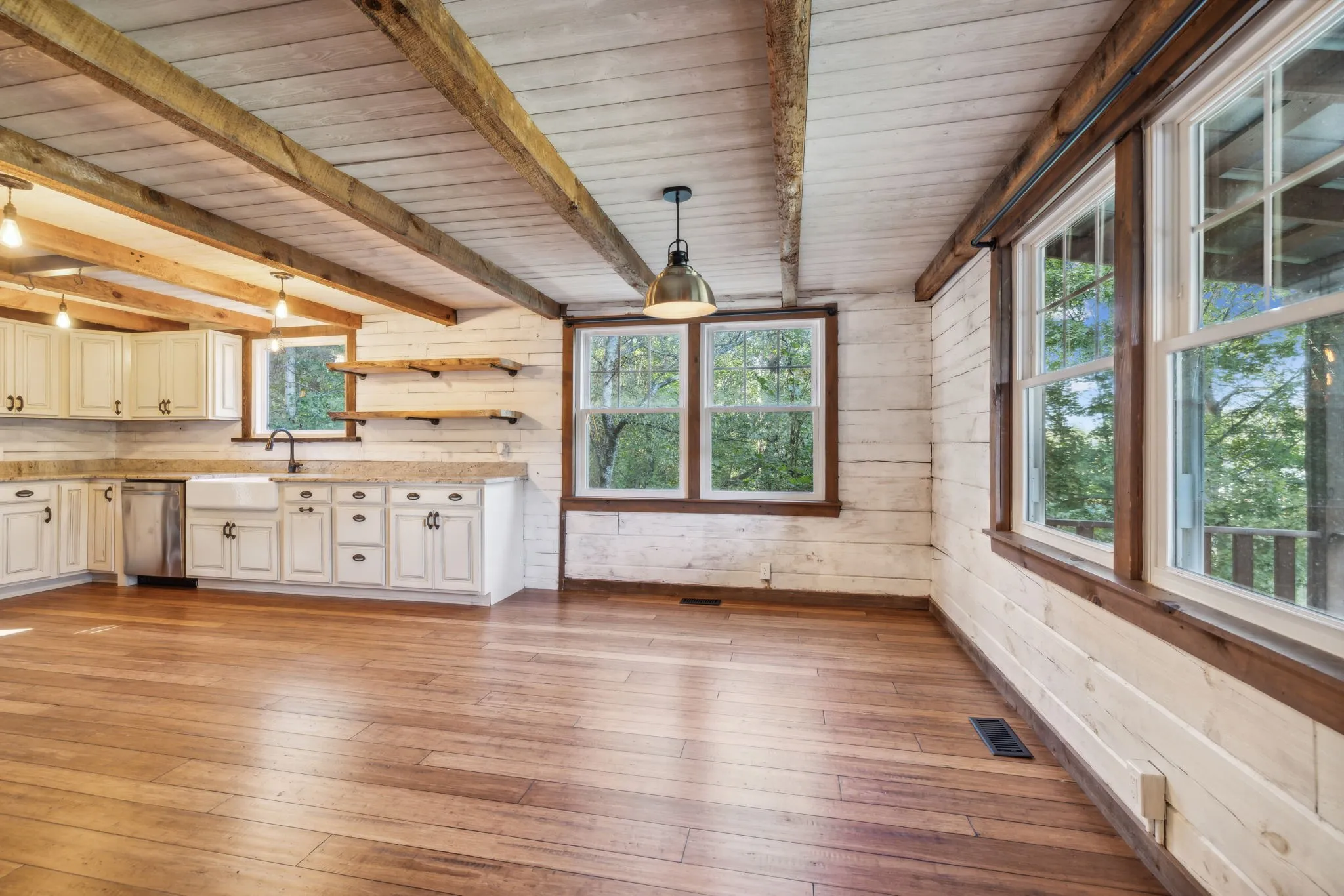 Seize the opportunity to own a charming log cabin retreat on 6.4 acres, just 8 minutes from I-65 and the vibrant Cool Springs shopping area in desirable Franklin, TN. This property is enveloped by abundant wildlife and features hiking trails, making it an ideal location for observing or hunting turkey, deer, and other game. Since its purchase in 2016, fencing has been installed, providing ample space for chickens, goats, and dogs, with a convenient chicken coop attached to the side of the barn. The kitchen has been beautifully remodeled with granite countertops, modern bamboo flooring, and new appliances, with the refrigerator included. The long front balcony provides excellent views and there is also a smaller balcony on the back of the house. There is a large, beautiful stone hardscape patio on the font of the property for entertaining guests or just enjoying morning coffee. This retreat offers a perfect blend of comfort and nature, ready for you to enjoy!