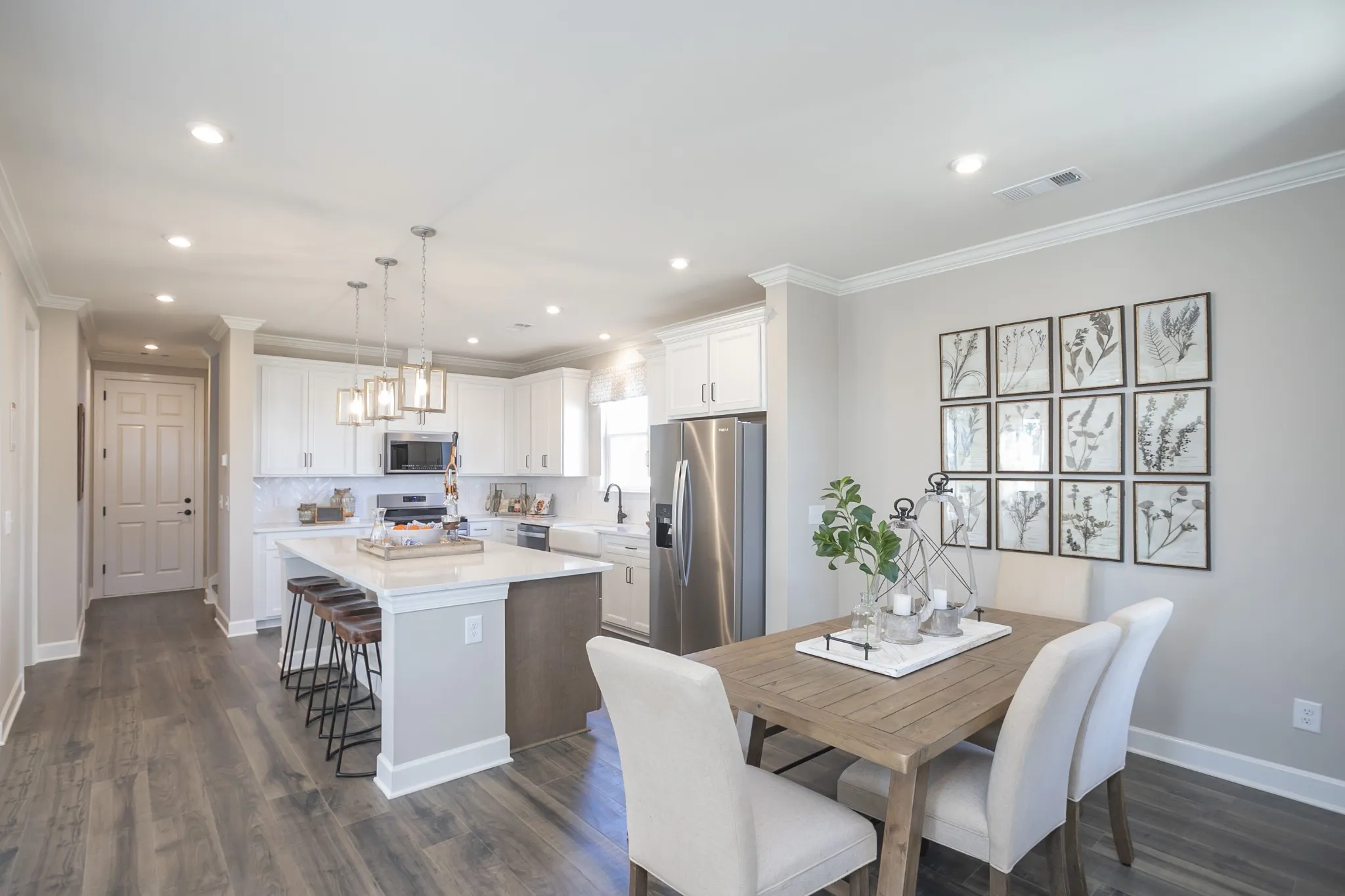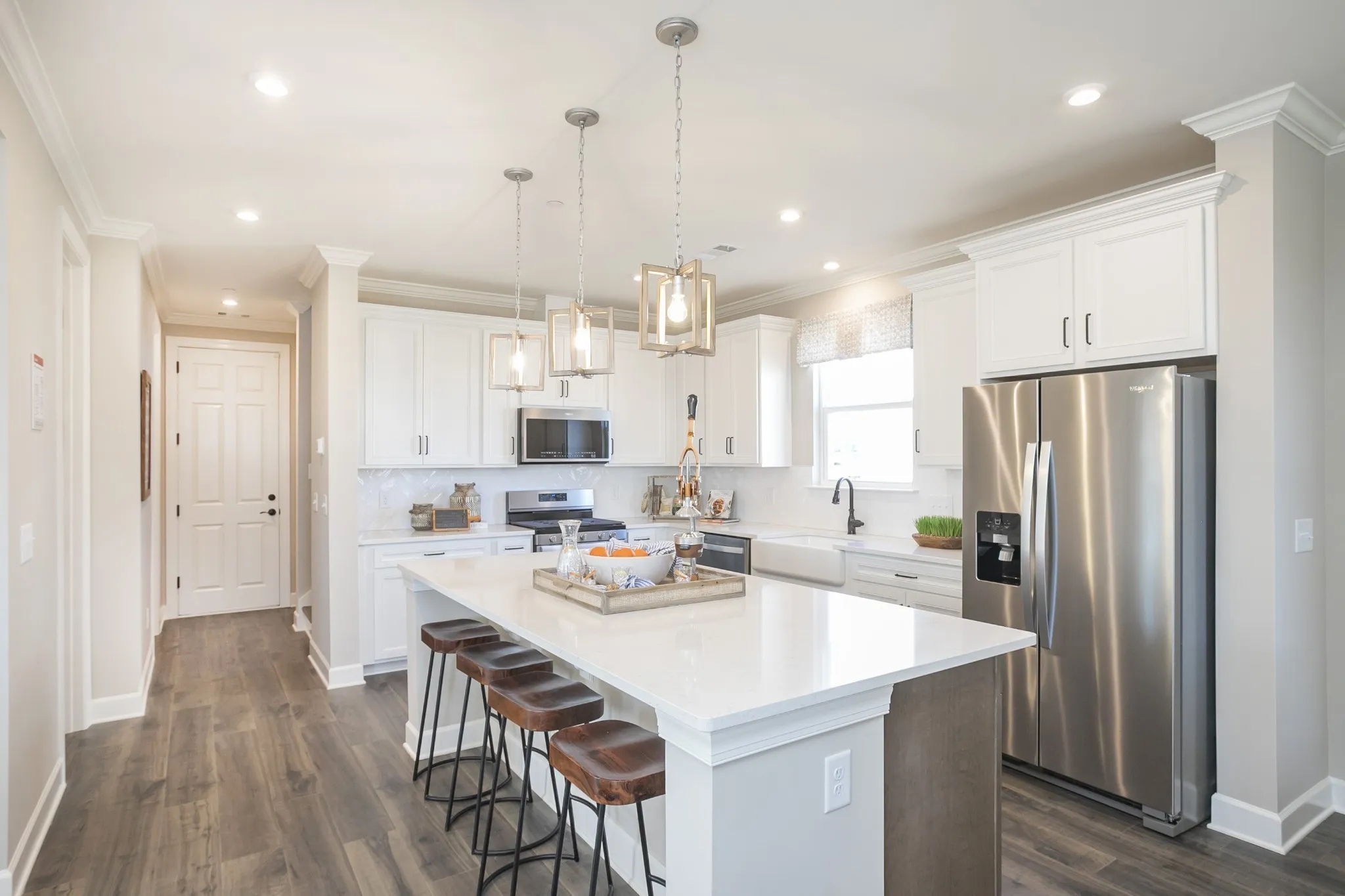 Our model home floorplan! The Chadwick floorplan offers open living space downstairs, powder room, covered porch, and a two-car garage. Upstairs is home to 3 bedrooms including your Primary Suite. Add a bonus room over the garage for an additional 421 square feet! 9′ foot ceilings up and downstairs. Choose your Kitchen and Primary Bath options with Choice Plans. Ask about Mortgage Choice and cost savings when purchasing the home. Amenities will include a clubhouse, pool, splash pad, gym, playground, and walking trails tying into the Greenway. Conveniently located just minutes from the interstate, Costco, and Providence Marketplace for dining and shopping needs. $15k flex incentive to use how you’d like OR bonus room at no cost with our Mortgage Choice lenders!