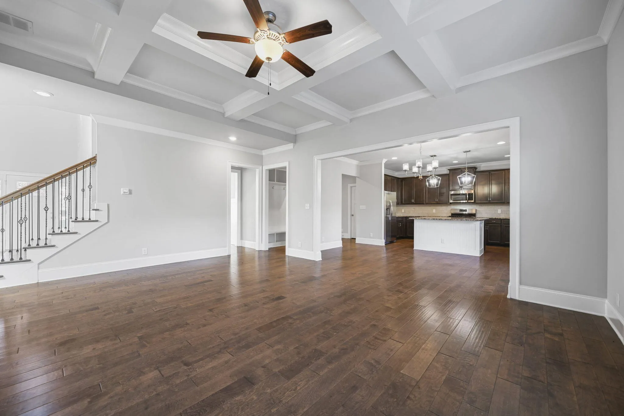 As you step inside, you’ll be greeted by a spacious foyer. To your left, you’ll find a formal dining room, and to your right, a cozy living room. A guest bedroom is conveniently located on the main floor. Prepare to host memorable family gatherings this Thanksgiving in the open-concept kitchen that flows seamlessly into the family room.
