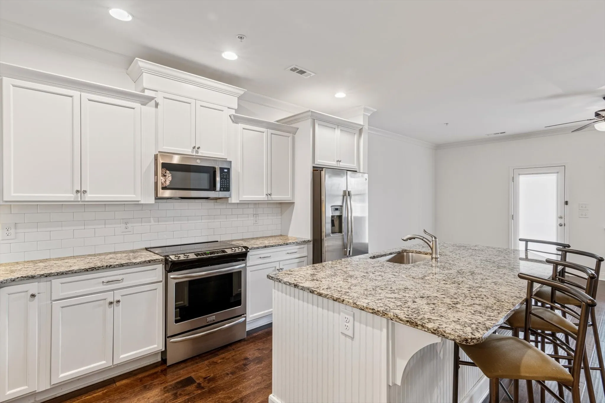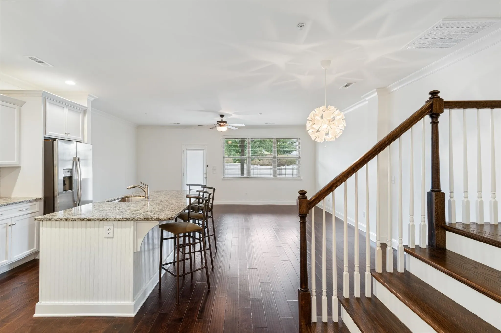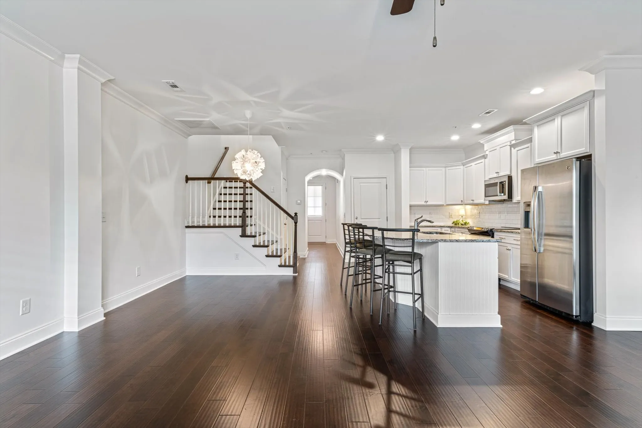 +"PublicRemarks": "Beautiful, spacious townhome with many recent updates! 3 bedrooms and 2.5 baths. Engineered hardwoods throughout and just added hardwoods to upstairs bedrooms. New, custom wood closets, private. Fenced back yard with covered patio is perfect for grilling. New paint throughout. New hot water heater in 2023, new microwave, 2 new thermostats, stainless steel appliances, washer and dryer to convey. 1 car garage. Community pool. Great location with Williamson County schools!"