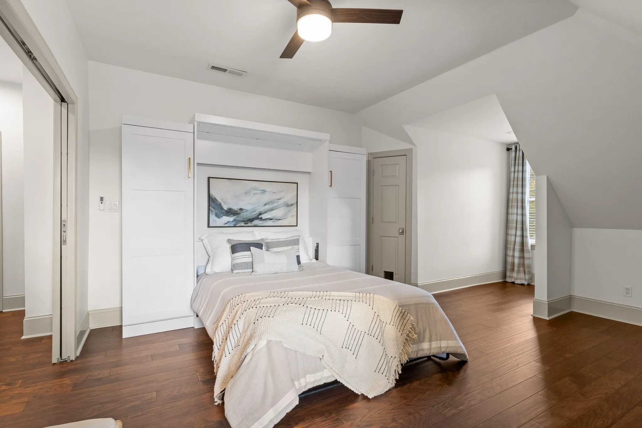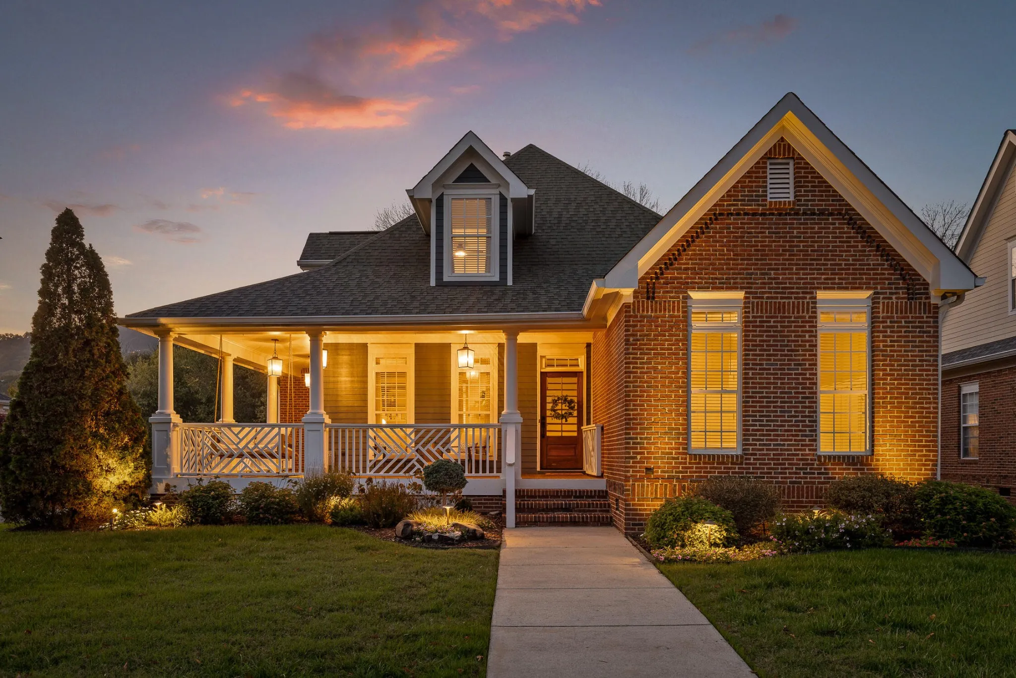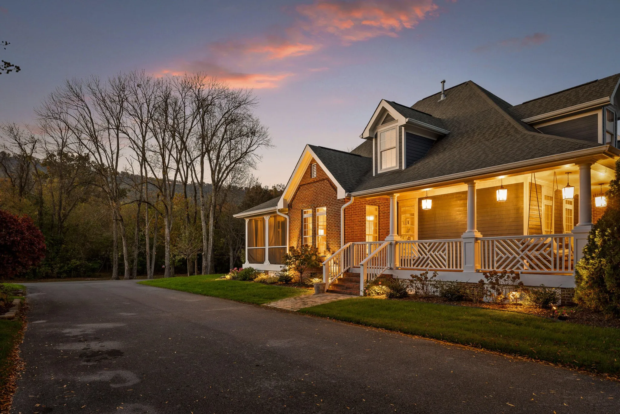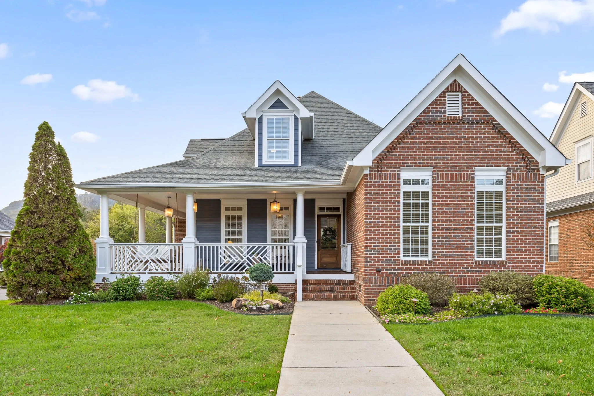 Nestled in one of the most sought-after neighborhoods in the city, this beautifully renovated single-family home offers the perfect blend of privacy, luxury, and natural beauty. Located north of the river, away from the hustle and bustle of downtown yet only an 8 minute drive to city center, Horse Creek Farms is a serene community that offers picturesque mountain views, sidewalks, stocked ponds with fountains, and tranquil walking trails. Situated on a prime lot overlooking a pond in front and the greenway in the rear, this home boasts exceptional outdoor living with a wraparound front porch, complete with a swing for peaceful relaxation. The screened-in back porch is an ideal spot for dining al fresco or enjoying the big game. With 2 acres of HOA-maintained property behind the home, you’ll have access to a firepit area, walking trails through the woods, and a peaceful connection to Mountain Creek. Step inside to discover a spacious, light-filled layout featuring high-end finishes and thoughtful design at every turn. The home has undergone extensive renovations, including a brand-new kitchen that will inspire any home chef. Outfitted with top-of-the-line Cafe appliances, including a 36” gas range with convection oven, French door refrigerator, and custom vent hood, the kitchen also boasts stunning quartz countertops, a large 9-foot island with a waterfall edge, and floor-to-ceiling cabinetry. The main level offers 3 bedrooms and 2.5 baths, including a luxurious primary suite and ensuite with custom cabinetry, soaking tub, glass shower, and custom closets. The open-concept living and dining areas feature custom trim, a cozy gas fireplace, and built-in bookshelves, creating a perfect setting for family gatherings or quiet evenings. Upstairs, you’ll find a private 4th bedroom with a clever Murphy bed and built-in bookshelves, a full bath, and a spacious media room complete with an 80″ TV, built-in bar, and double-drawer beverage refrigerator, making it the ul