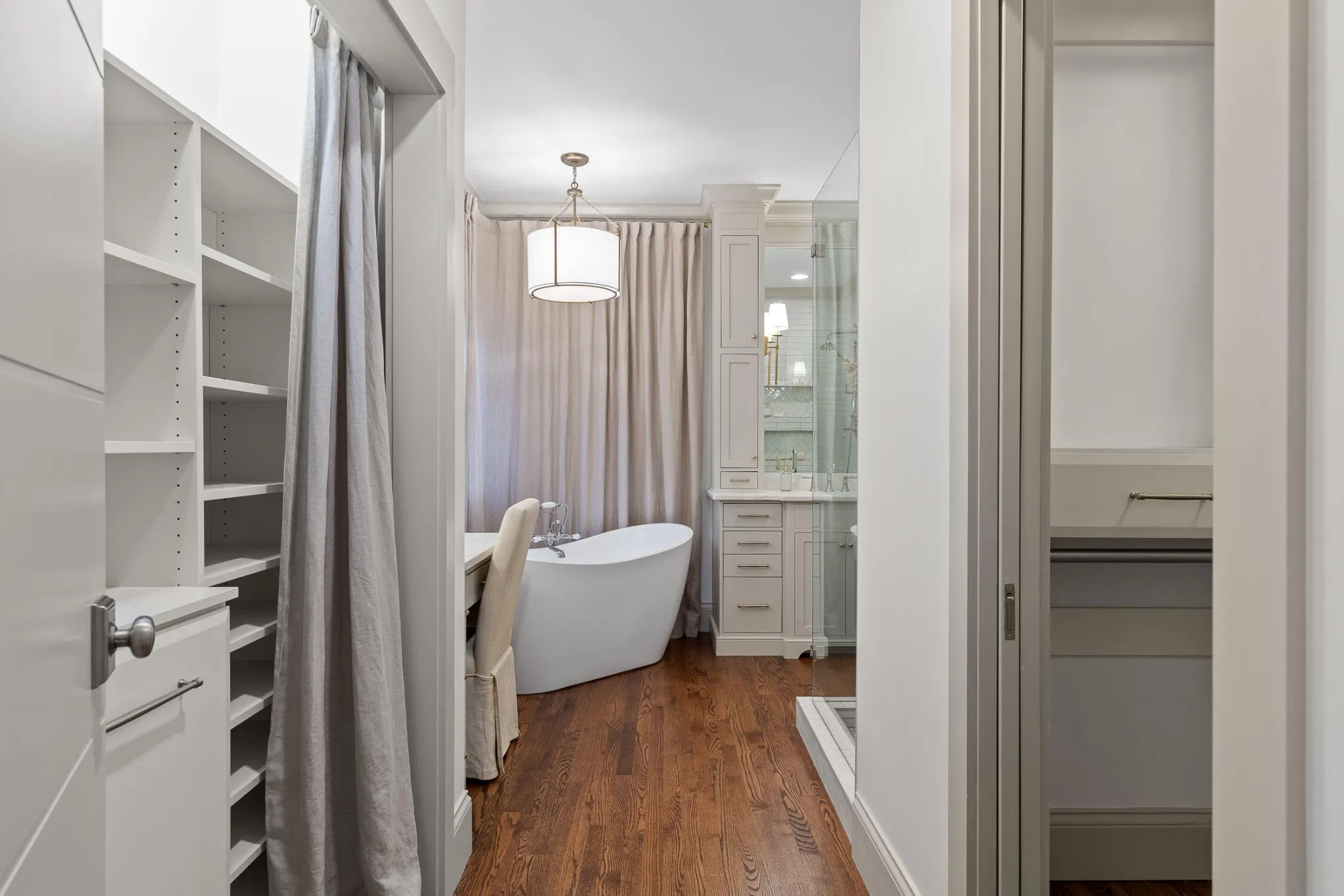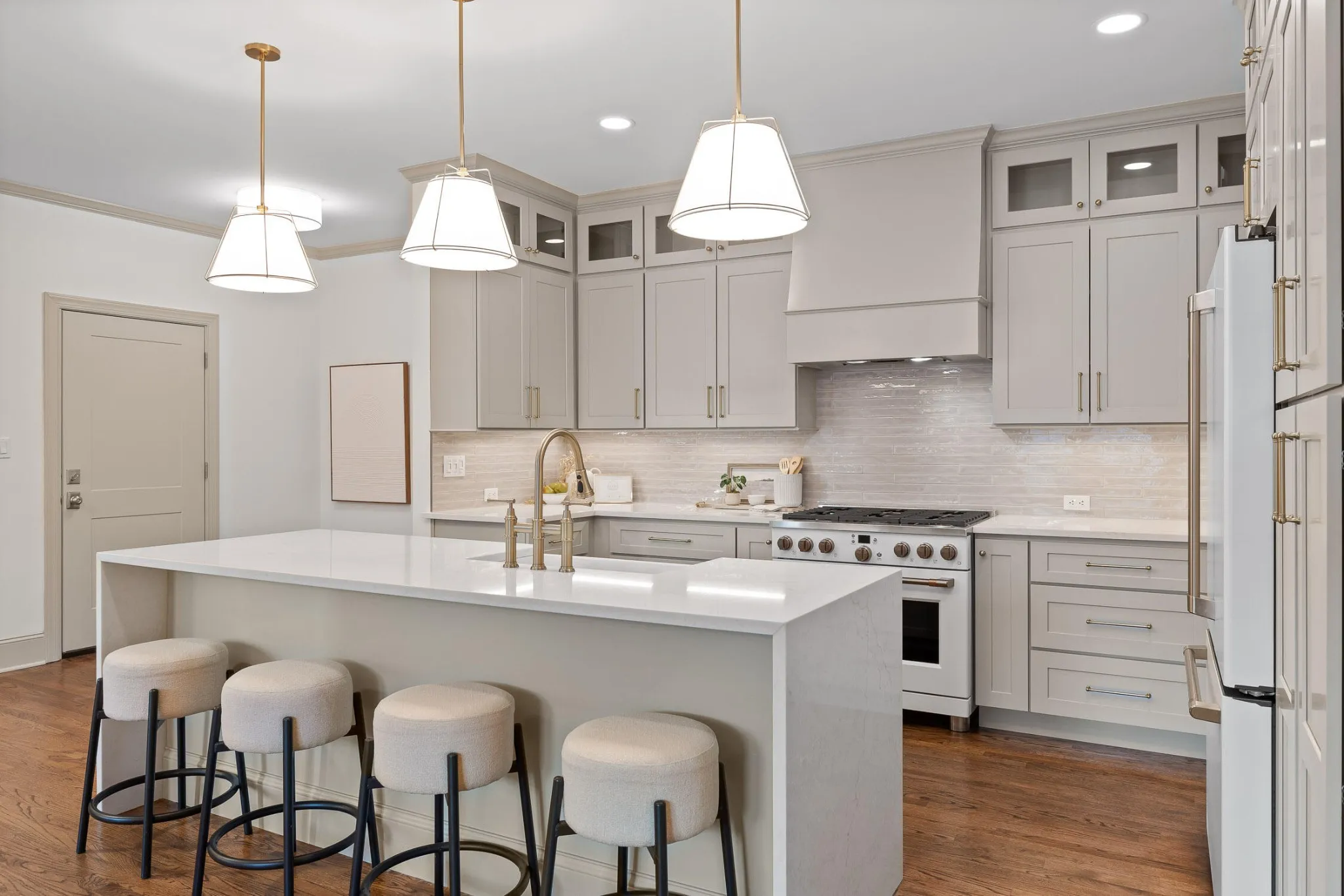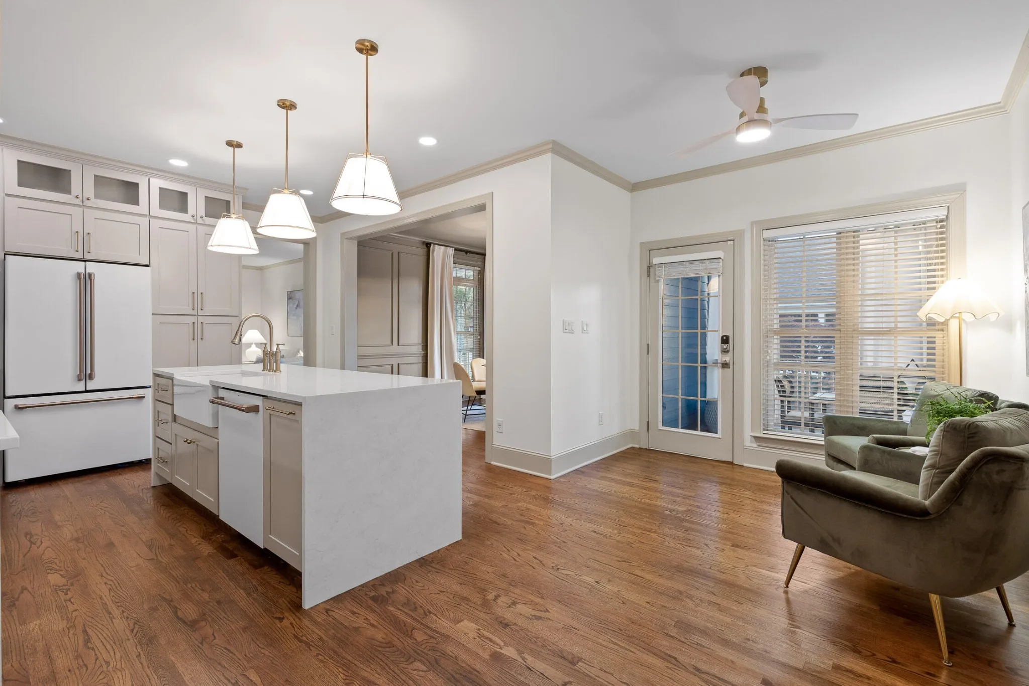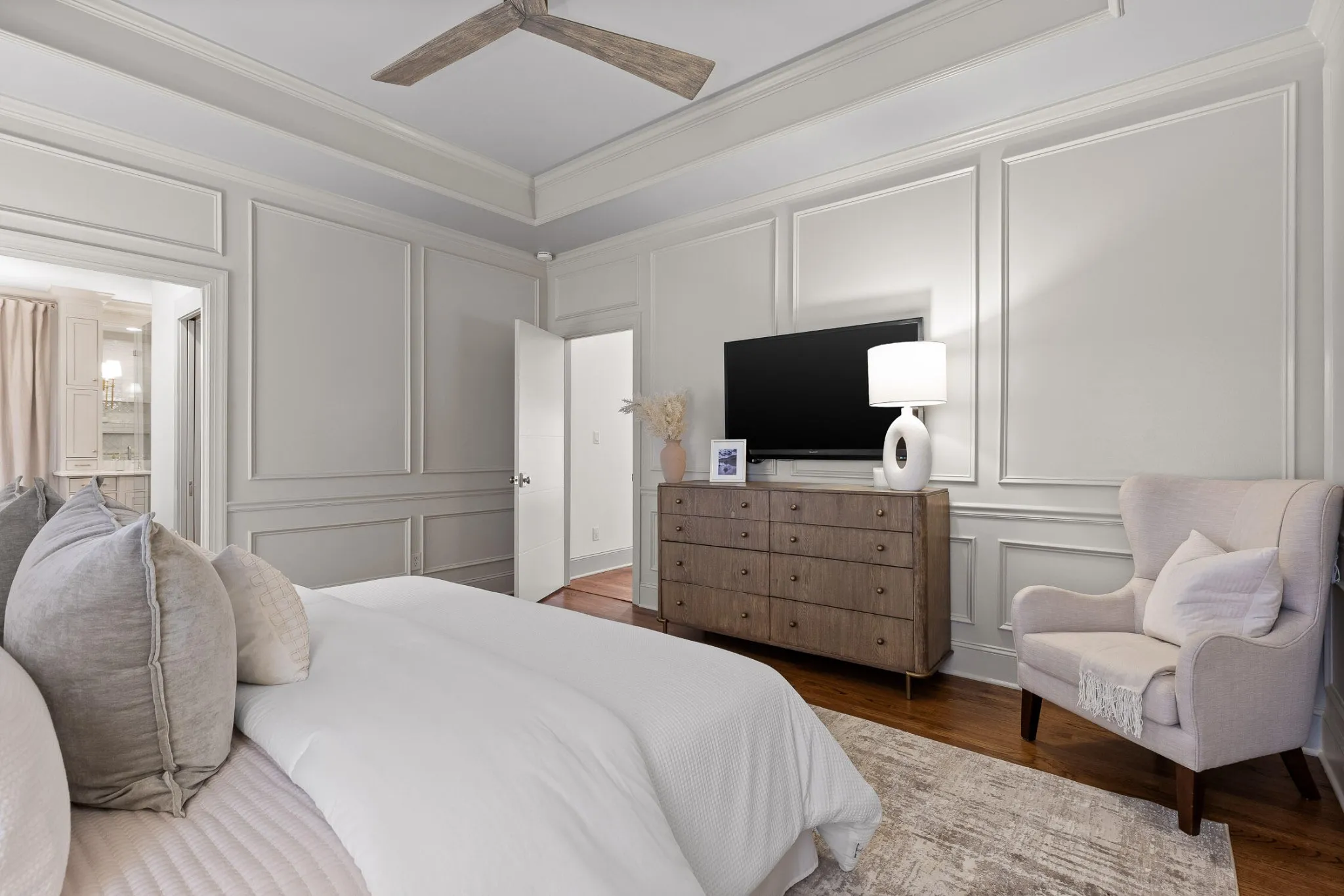 Nestled in one of the most sought-after neighborhoods in the city, this beautifully renovated single-family home offers the perfect blend of privacy, luxury, and natural beauty. Located north of the river, away from the hustle and bustle of downtown yet only an 8 minute drive to city center, Horse Creek Farms is a serene community that offers picturesque mountain views, sidewalks, stocked ponds with fountains, and tranquil walking trails. Situated on a prime lot overlooking a pond in front and the greenway in the rear, this home boasts exceptional outdoor living with a wraparound front porch, complete with a swing for peaceful relaxation. The screened-in back porch is an ideal spot for dining al fresco or enjoying the big game. With 2 acres of HOA-maintained property behind the home, you’ll have access to a firepit area, walking trails through the woods, and a peaceful connection to Mountain Creek. Step inside to discover a spacious, light-filled layout featuring high-end finishes and thoughtful design at every turn. The home has undergone extensive renovations, including a brand-new kitchen that will inspire any home chef. Outfitted with top-of-the-line Cafe appliances, including a 36” gas range with convection oven, French door refrigerator, and custom vent hood, the kitchen also boasts stunning quartz countertops, a large 9-foot island with a waterfall edge, and floor-to-ceiling cabinetry. The main level offers 3 bedrooms and 2.5 baths, including a luxurious primary suite and ensuite with custom cabinetry, soaking tub, glass shower, and custom closets. The open-concept living and dining areas feature custom trim, a cozy gas fireplace, and built-in bookshelves, creating a perfect setting for family gatherings or quiet evenings. Upstairs, you’ll find a private 4th bedroom with a clever Murphy bed and built-in bookshelves, a full bath, and a spacious media room complete with an 80″ TV, built-in bar, and double-drawer beverage refrigerator, making it the ul