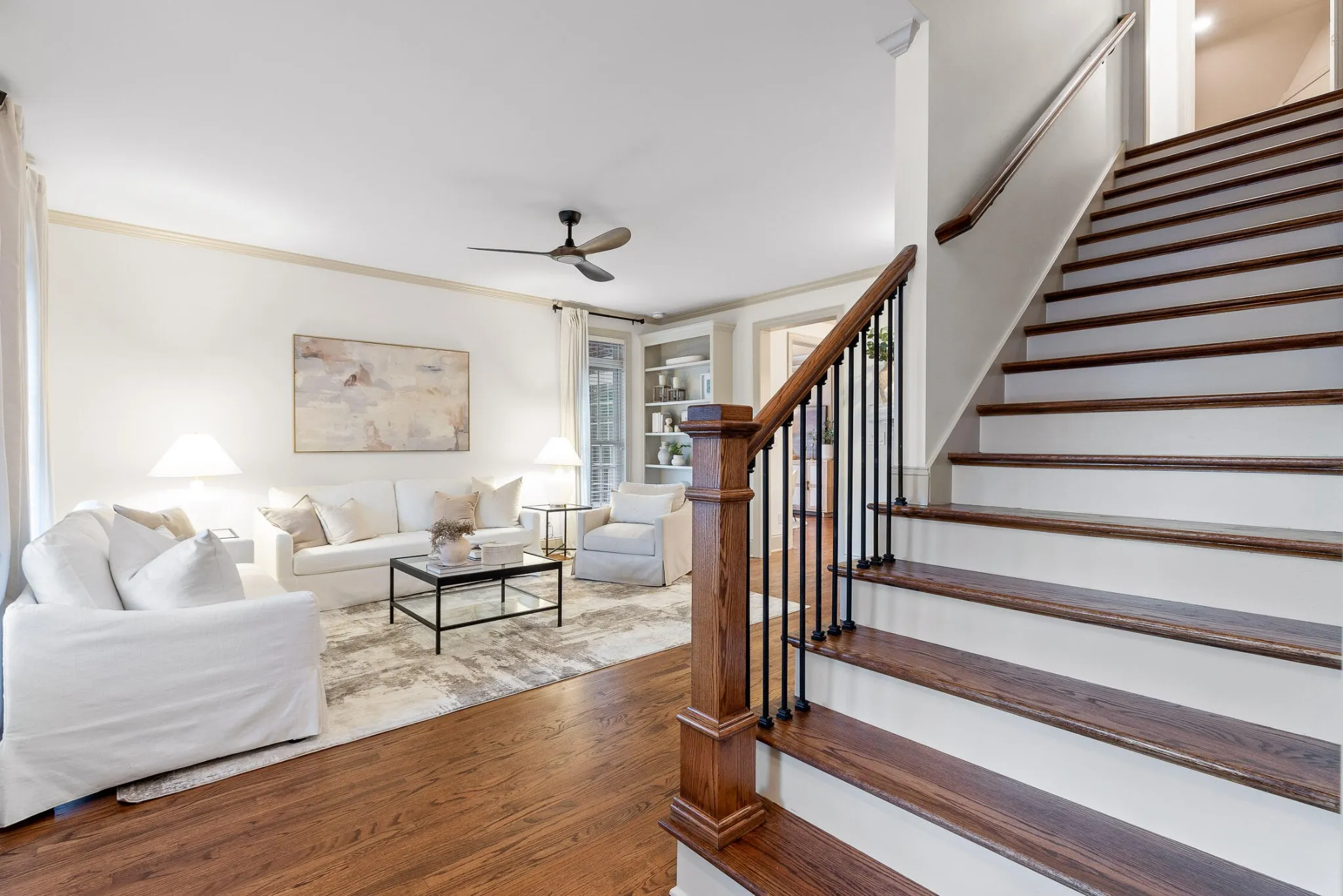 Interior Features Open Floorplan, Walk-In Closet(s), Primary Bedroom Main Floor, High Ceilings, Built-in Features, Smart Thermostat, Bookcases, Ceiling Fan(s)