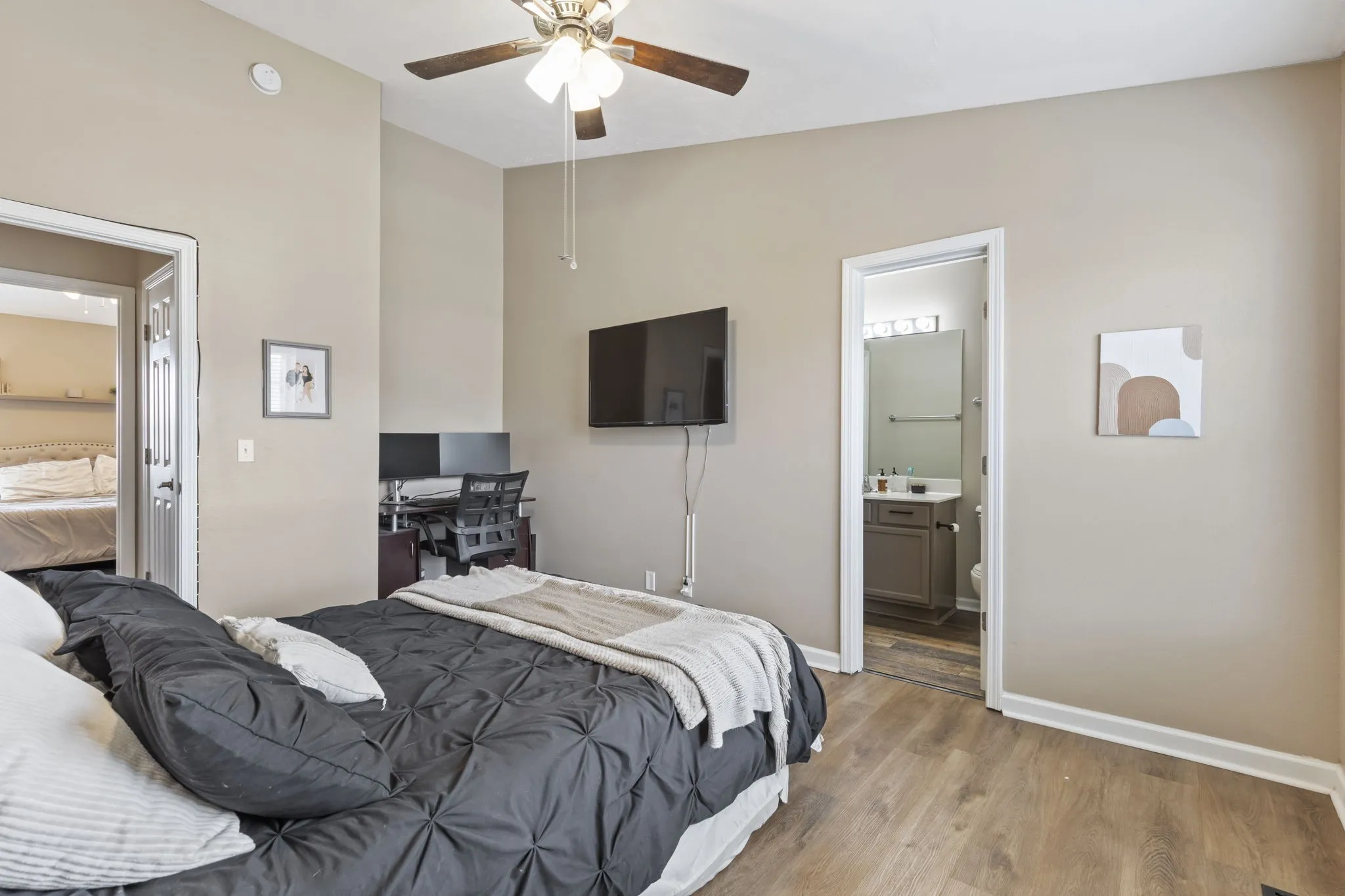 "LongDescription" => "Two single windows allow natural light to gently filter in, complemented by a ceiling fan for added comfort, and the seamless connection to an en-suite bathroom enhances the convenience and privacy of this cozy retreat."