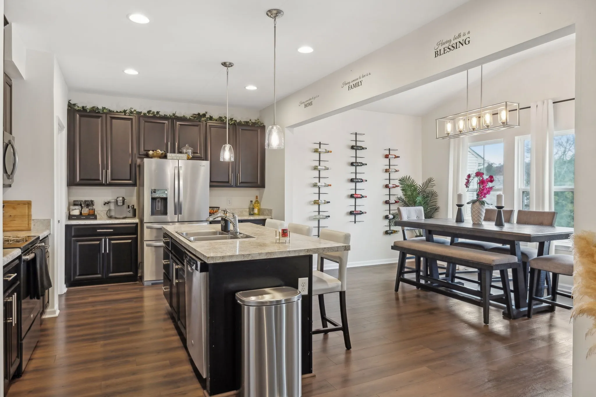Welcome to this beautiful 3-bedroom, 2.5-bath home in Antioch, TN, located just 20 minutes from Nashville International Airport (BNA)! Built in 2017, this Energy Star-certified home combines modern design with energy efficiency, offering 2,113 sq. ft. of well-planned living space. The main level features a spacious open-concept layout with a versatile flex room that can serve as a home office, playroom, or formal dining space. The kitchen is equipped with Energy Star appliances and a tankless water heater, ensuring cost savings and comfort year-round. Upstairs, you’ll find a serene primary suite with a private bath, plus two additional bedrooms and a shared full bath. Enjoy outdoor living on the back deck, which overlooks the neighborhood and is perfect for relaxation or entertaining. With a two-car garage and ample storage throughout, this home is as functional as it is stylish. Schedule your showing today and see why this home is the perfect blend of convenience, comfort, and sustainability!