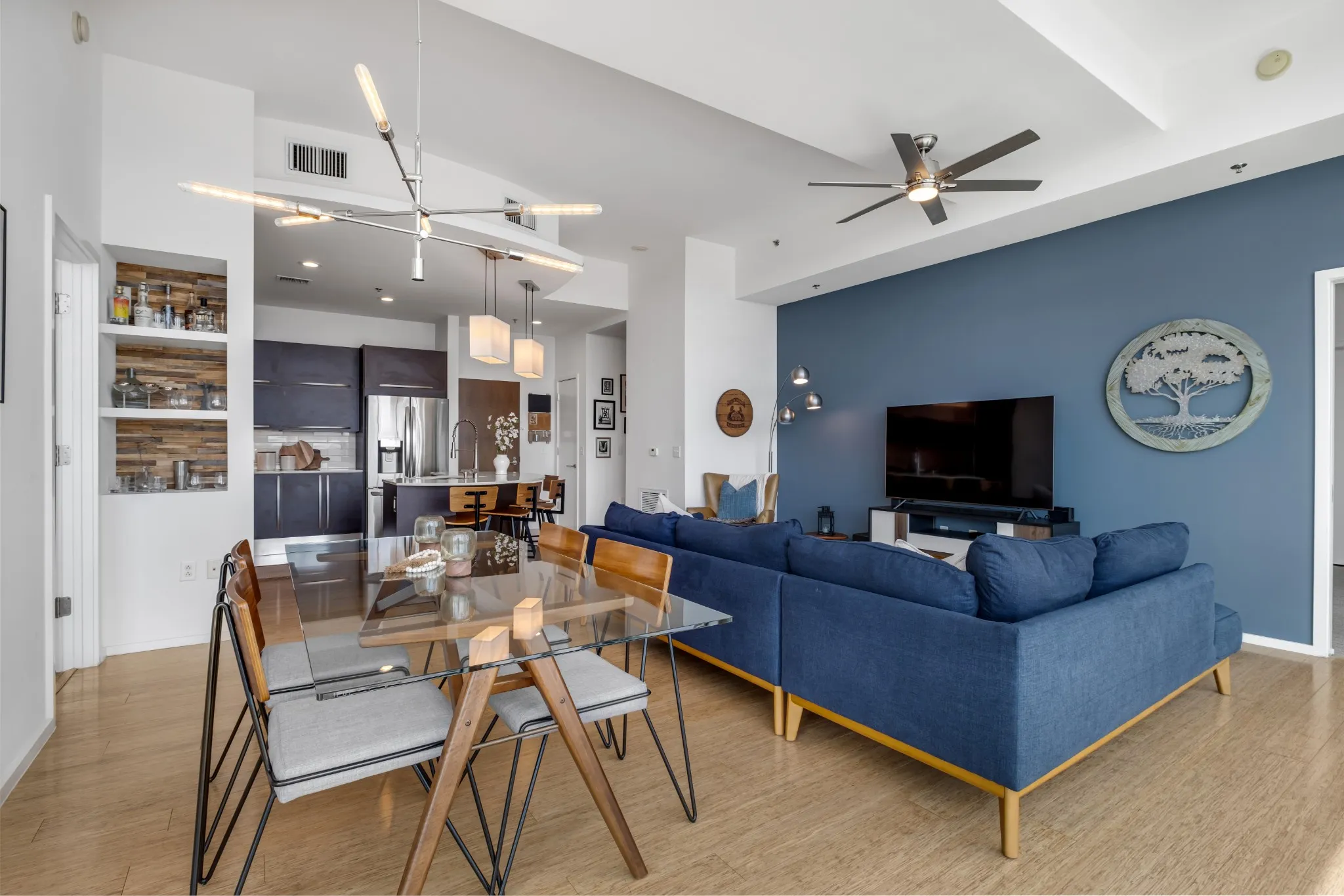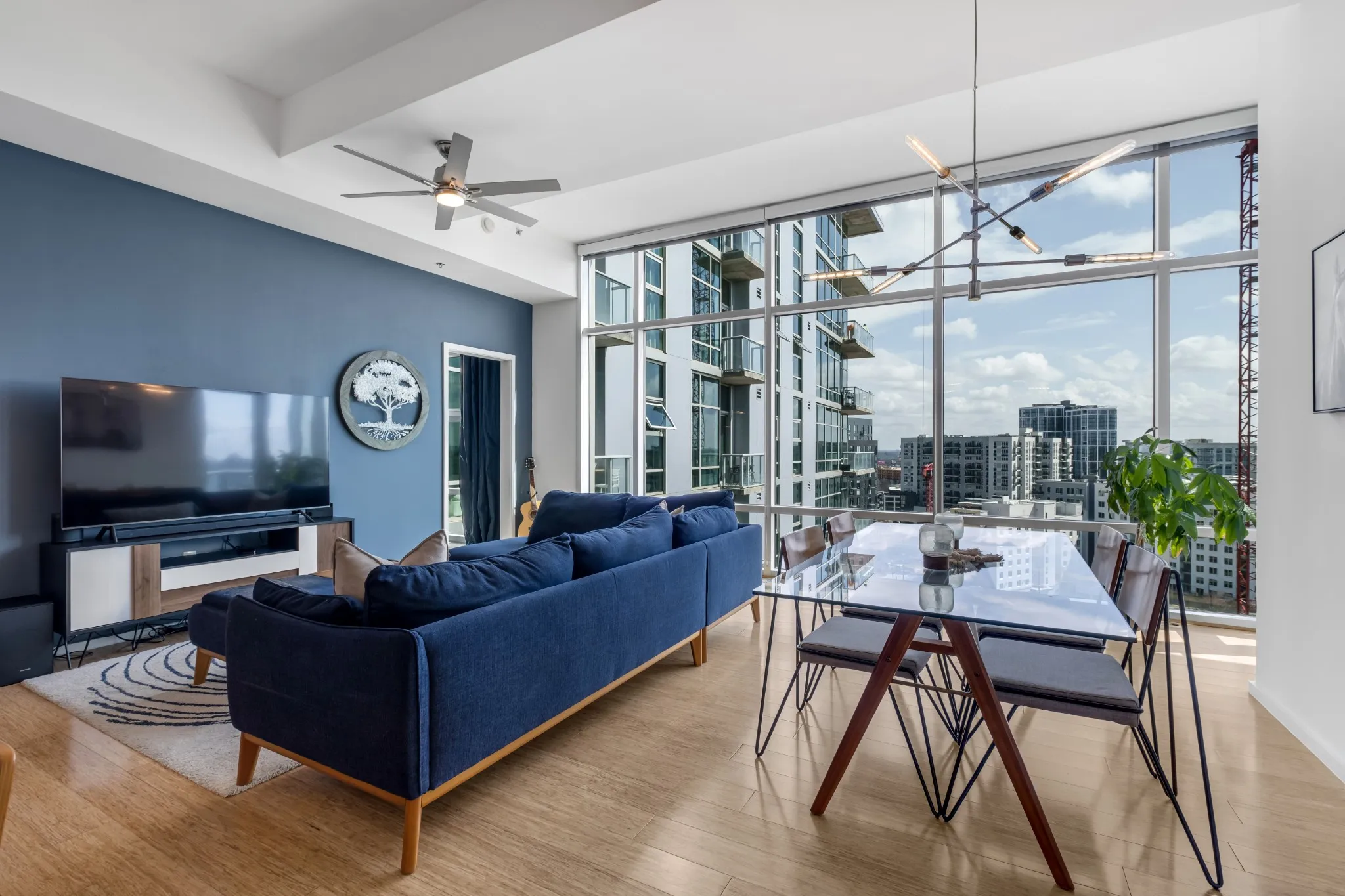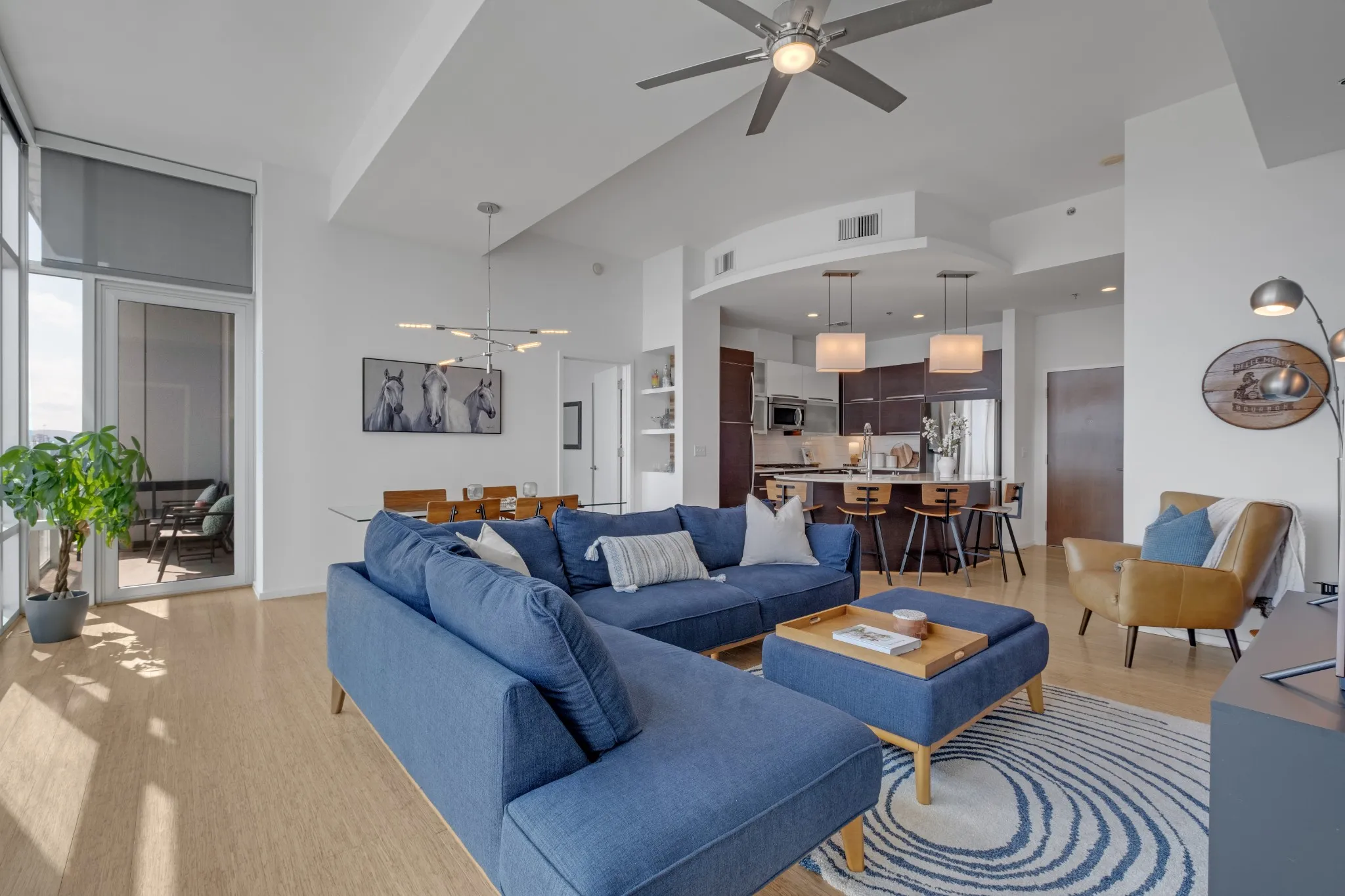 Luxurious living in The Gulch and Downtown Nashville! This high-rise condo has two spacious bedrooms with ensuite baths and walk-in closets. Amenities for Terrazzo include a fully equipped gym with views of the city, a large entertainment lounge, a self-serve coffee bar, and a terrace pool with an outdoor kitchen that has two grills and a pizza oven! Bamboo flooring and carpet throughout. Nashville’s newest nail salon is just an elevator ride down to the main lobby at Terrazzo and will be opening soon, or visit STK Steakhouse, which is also a Nashville favorite. This condo comes with 1 parking space and the potential to assume another rented space. 24/7 concierge service. Ample bicycle storage rooms in the garage. The stainless steel pool is currently having tile replaced and should be complete by late spring.